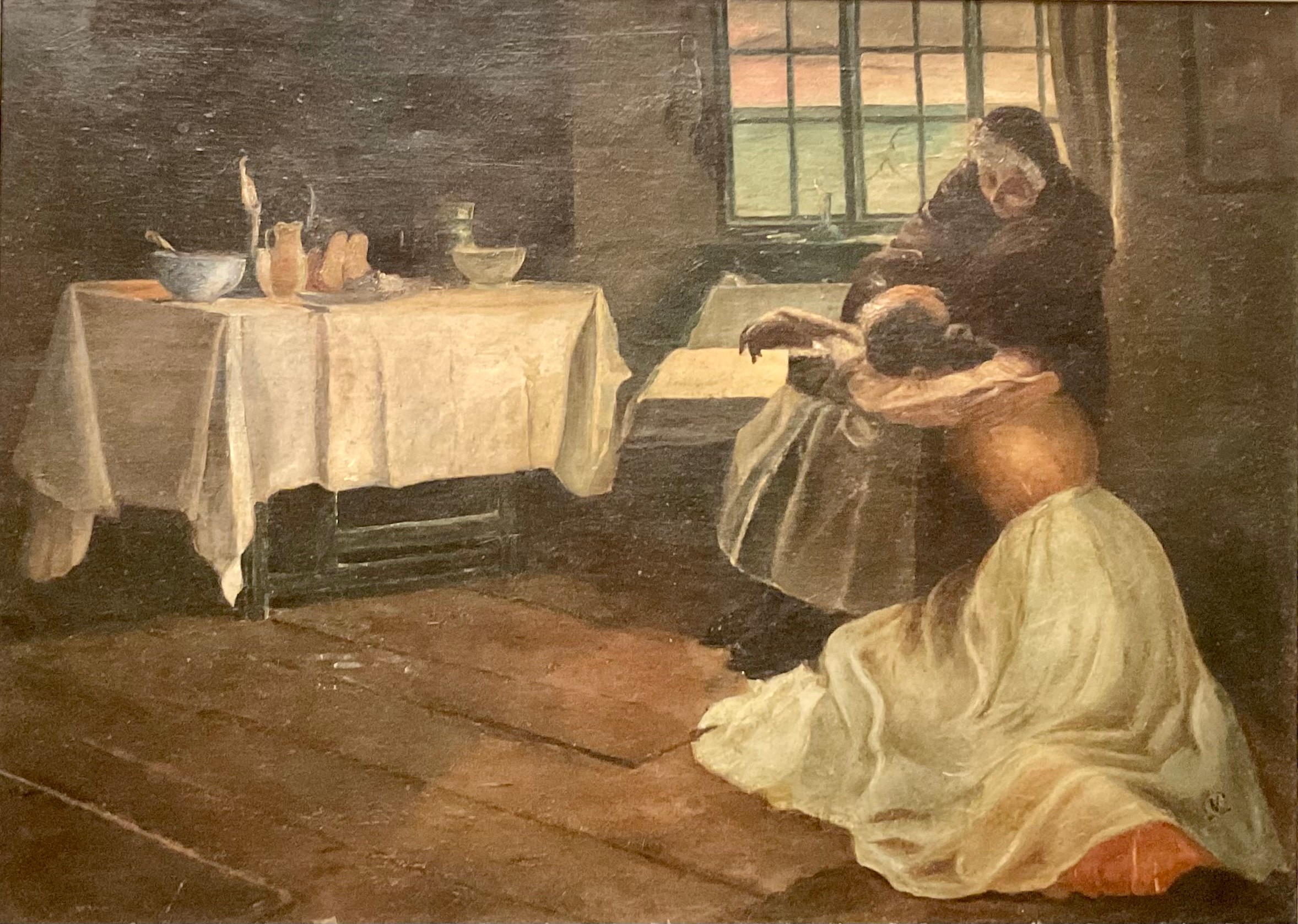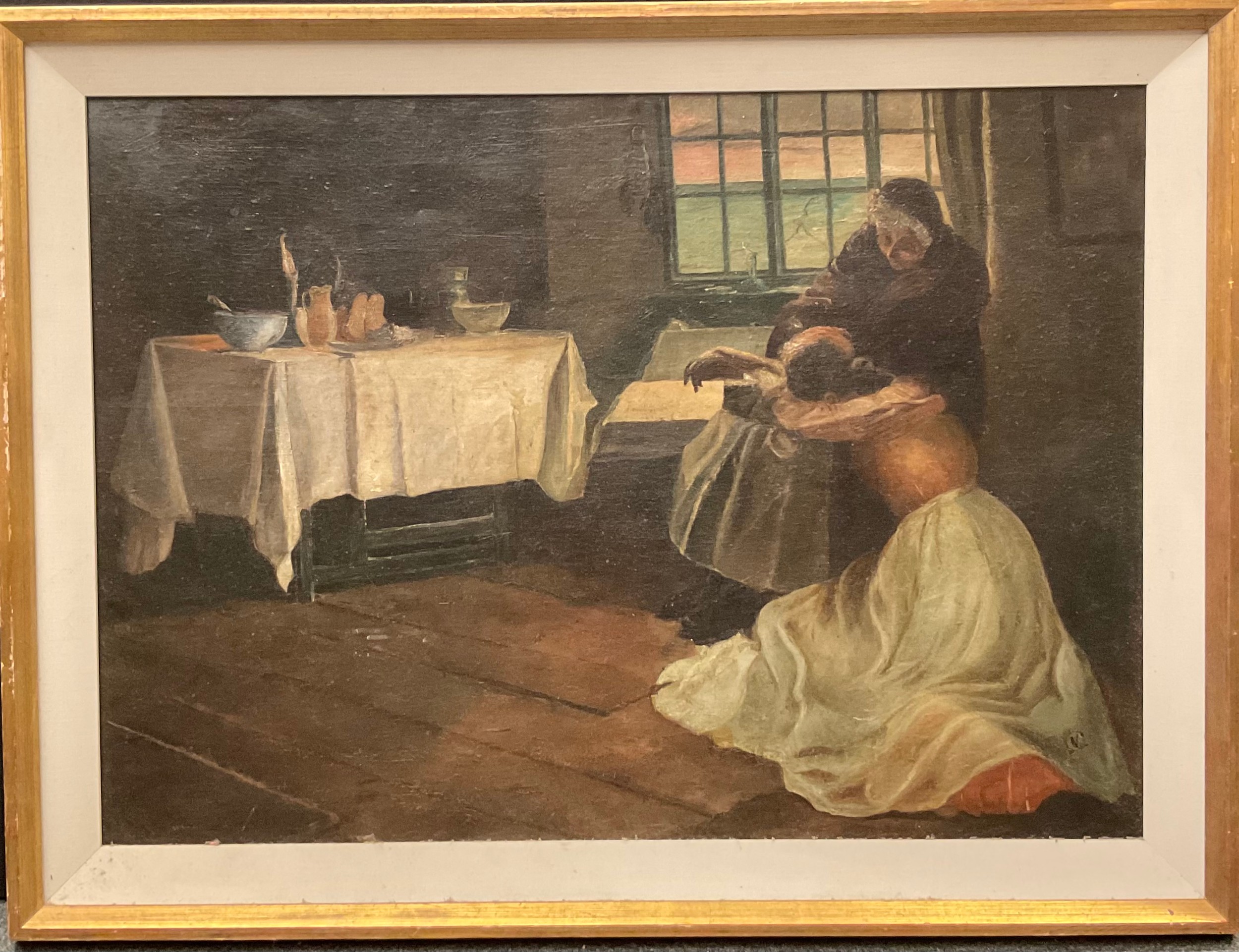 English SchoolConsolationmonogrammed CM, oil on canvas, 59cm x 82cm
