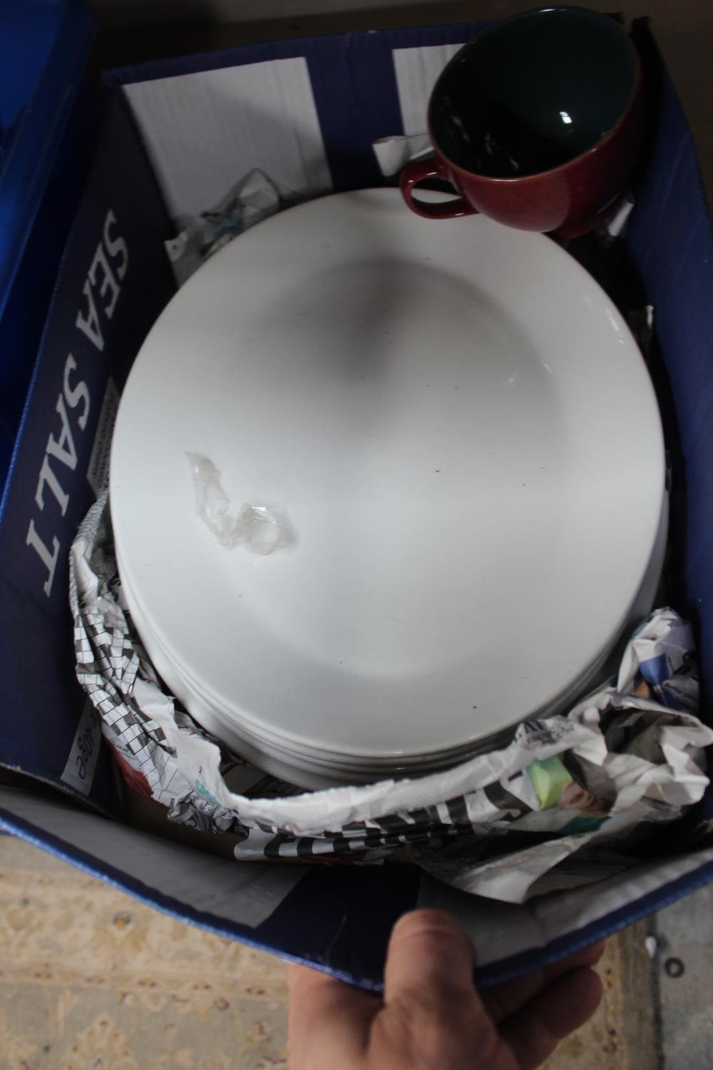 LARGE BOX OF WHITE PLATERS