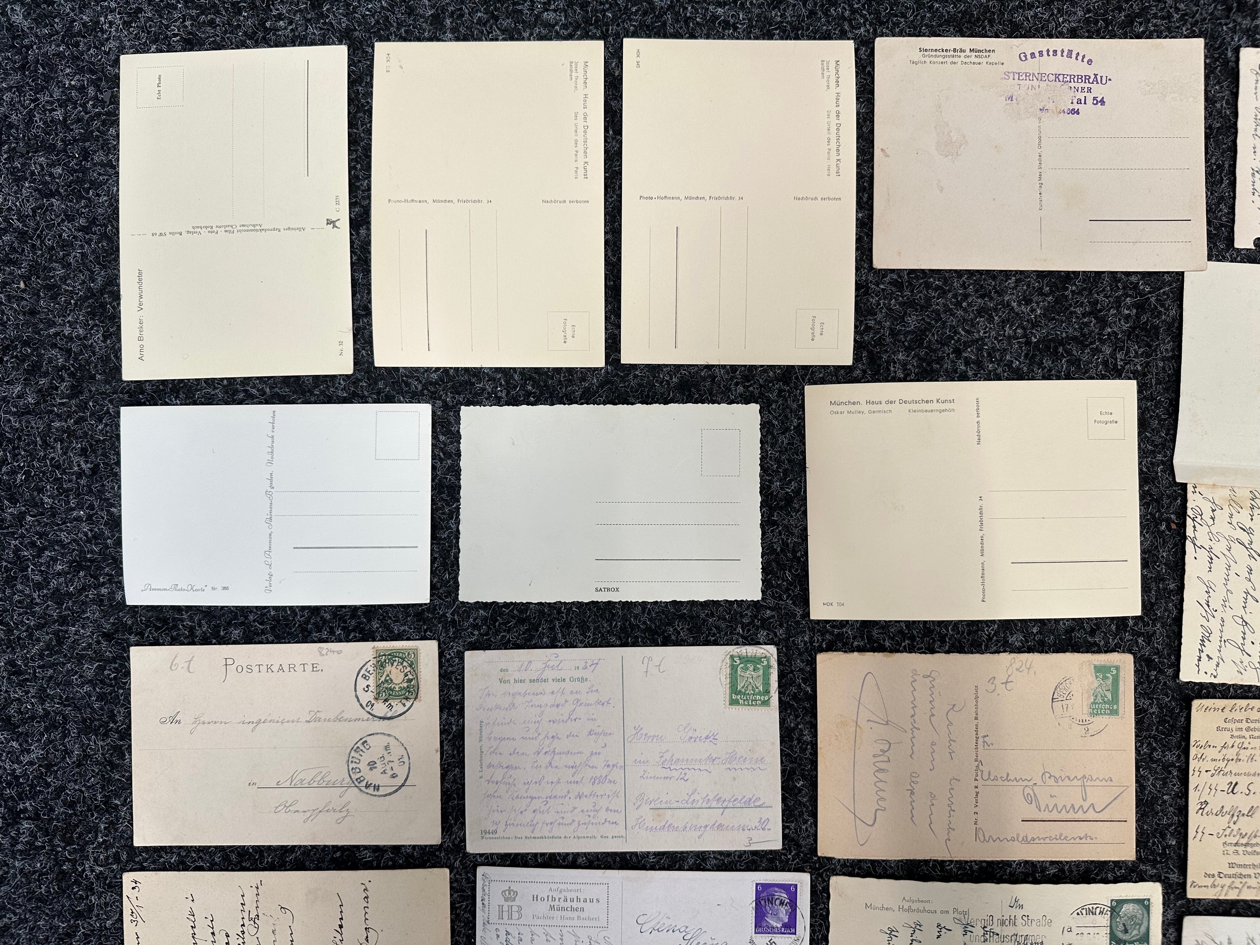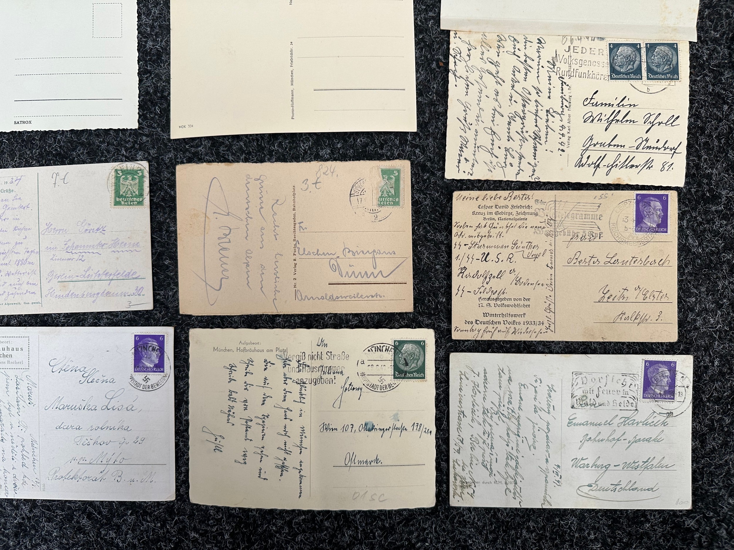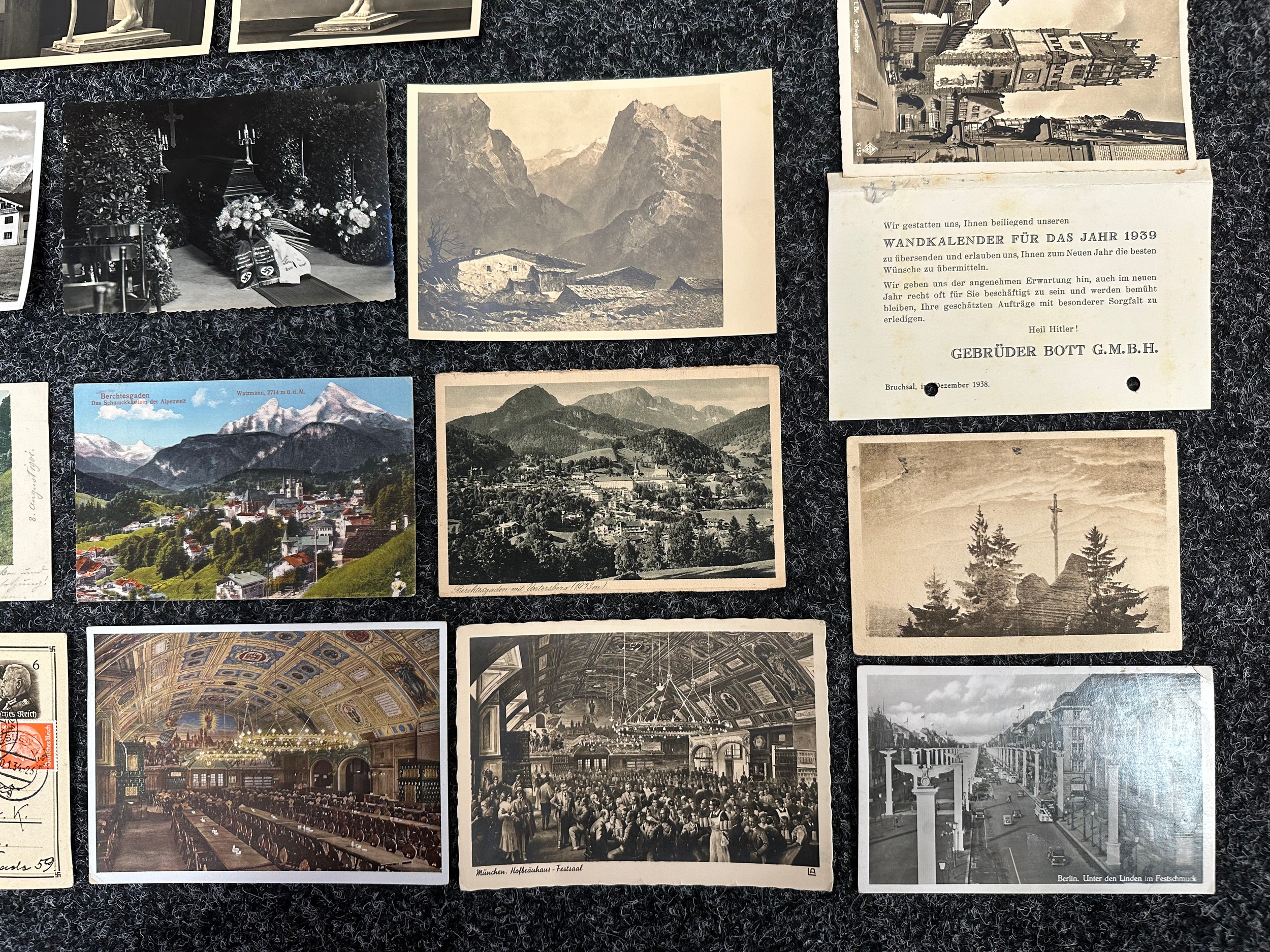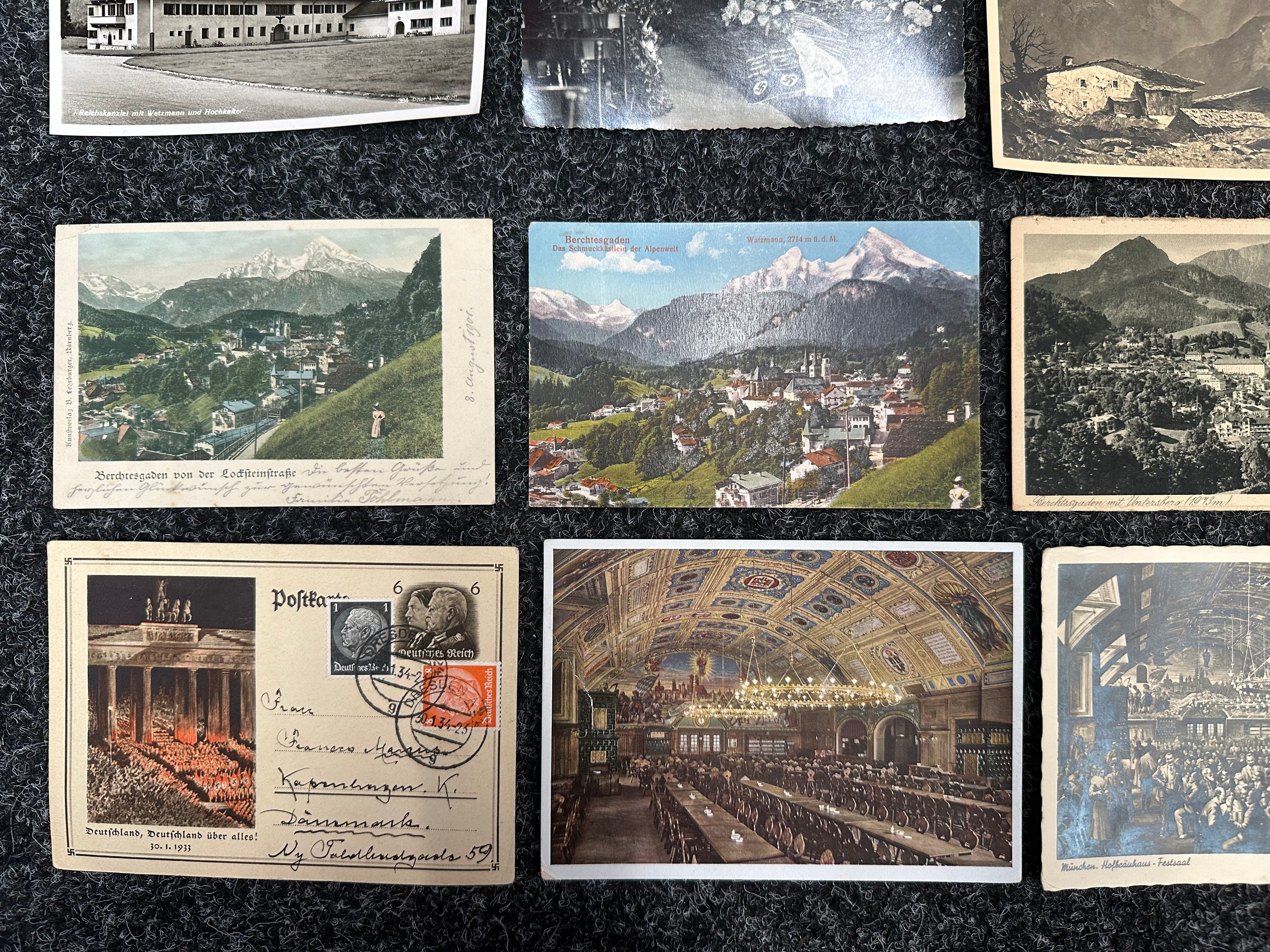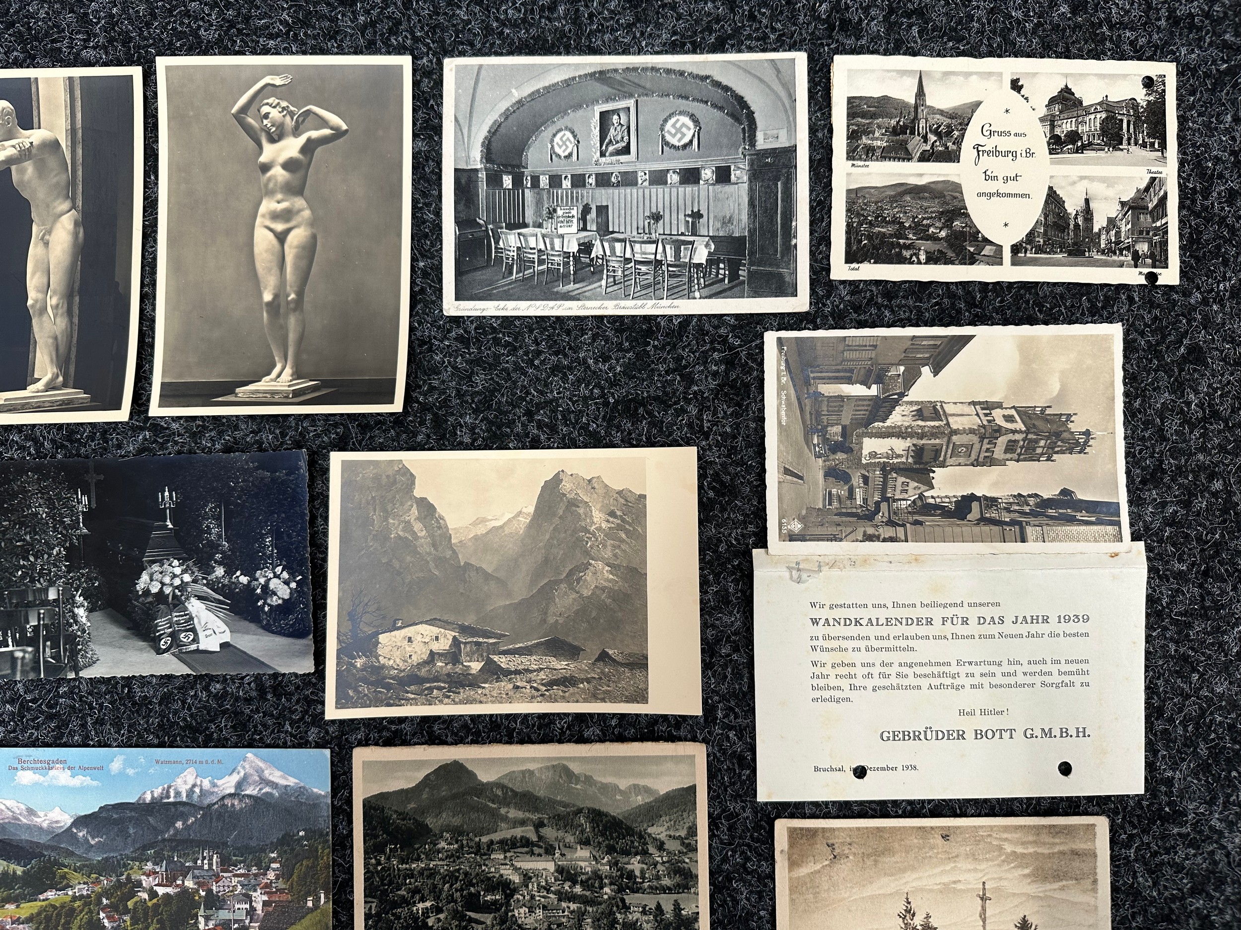 WW2 Third Reich Postcard collection. Seven cards have not been posted. The others have all been sent and are postmarked. Several showing Berchtesgaden, Hofbbrauhaus Munich, House of German Art, etc. One card is SS Feldpost marked. (17)