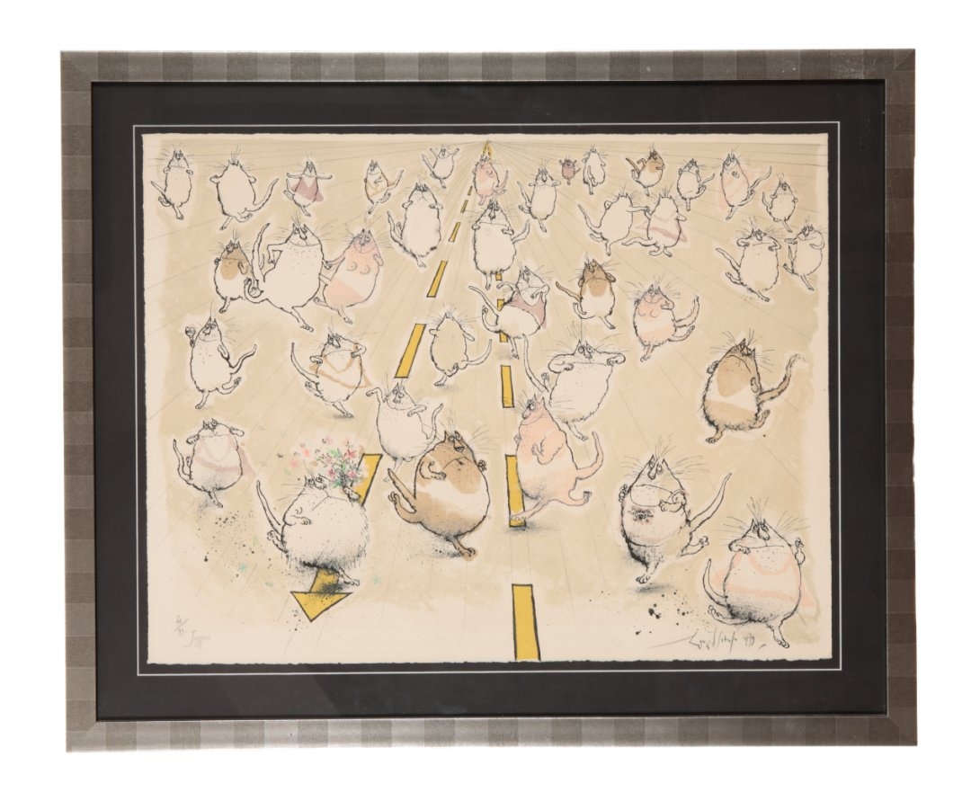RONALD SEARLE (1920-2011) 'Joggers'signed lower right, coloured lithograph numbered 63/99, 50cm x 65cm