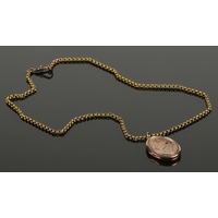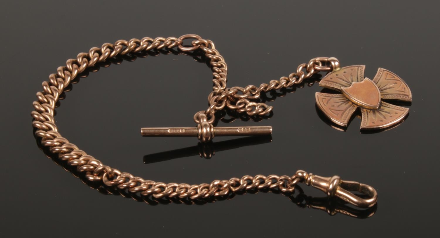 A 9ct gold albert chain with T-Bar and fob. 24.28g.