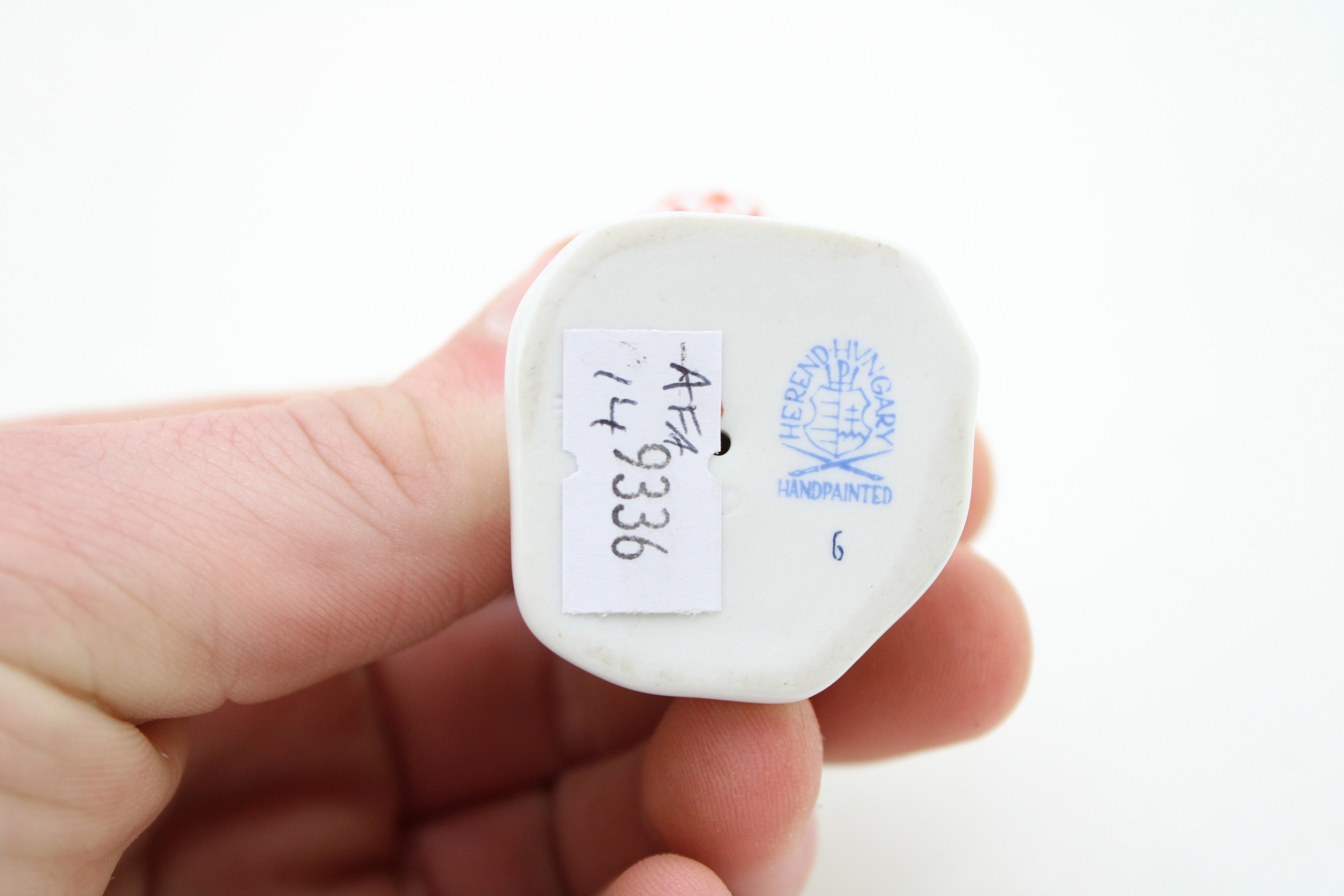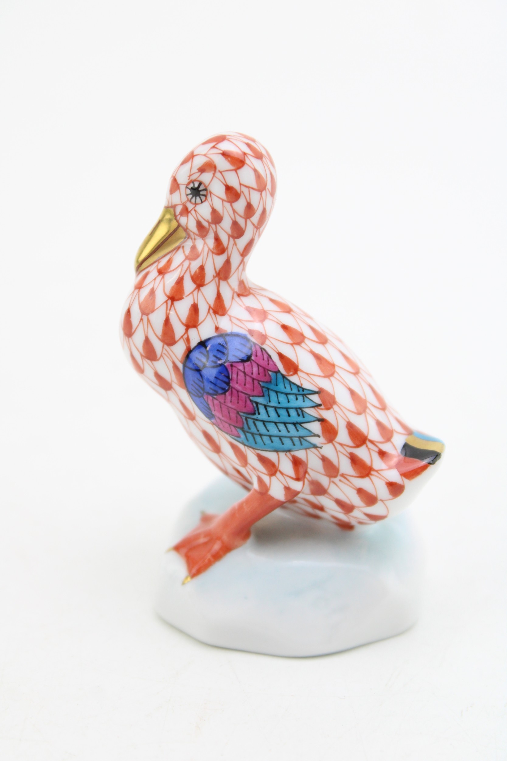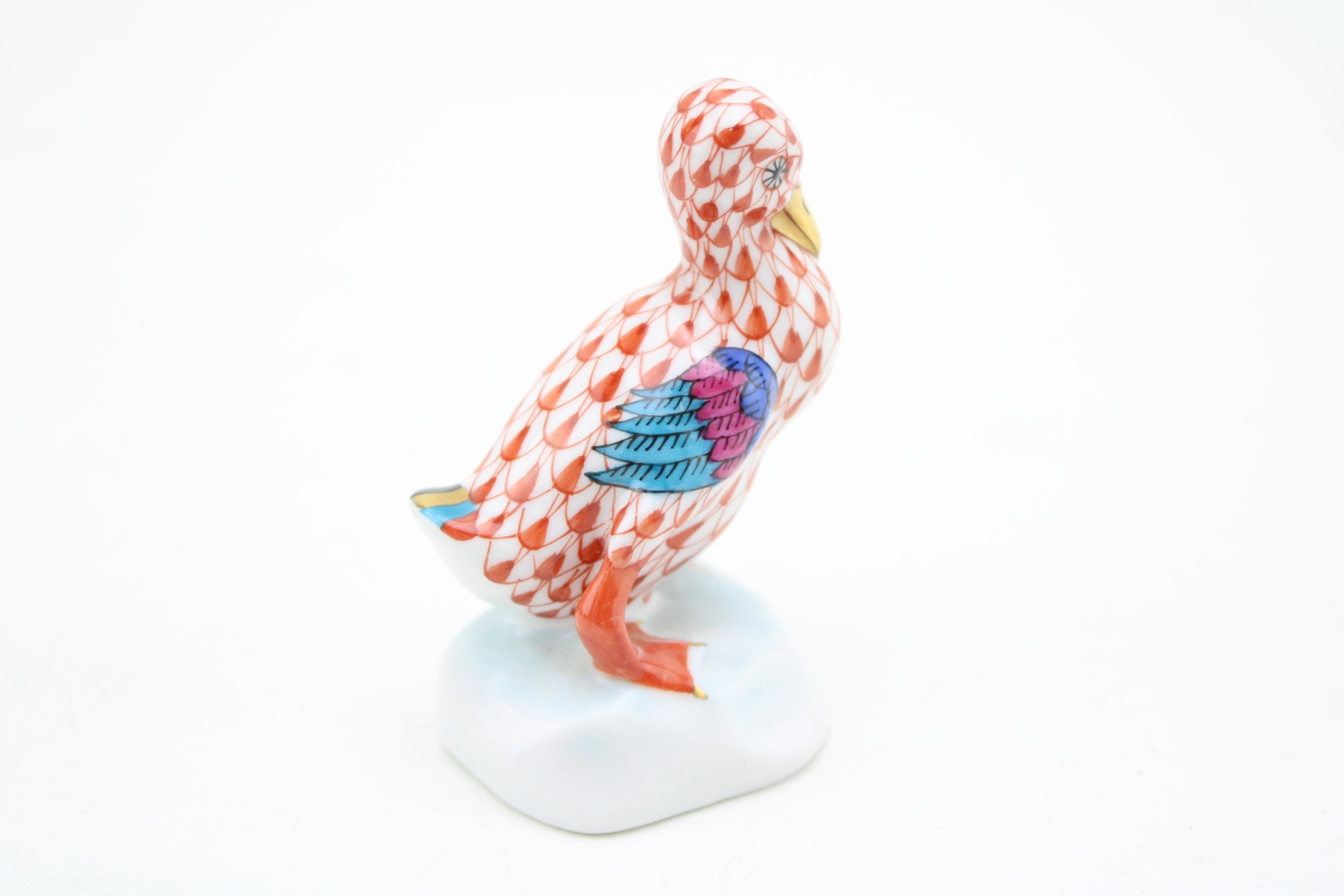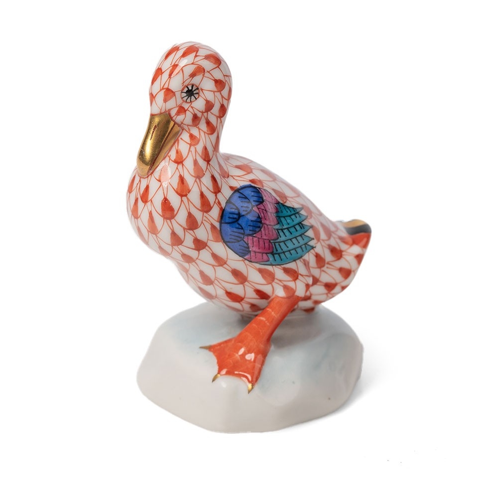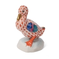 Herend Pottery (Hungary) model of a duck, red fishnet decoration, 6.5cm tall.