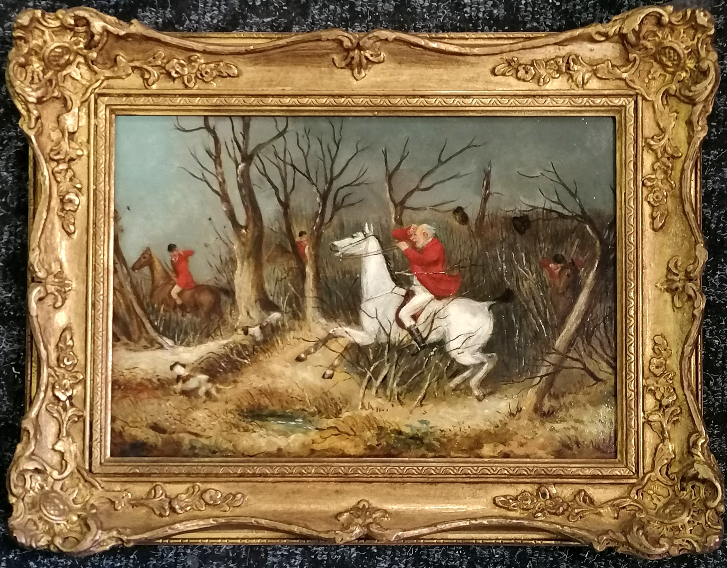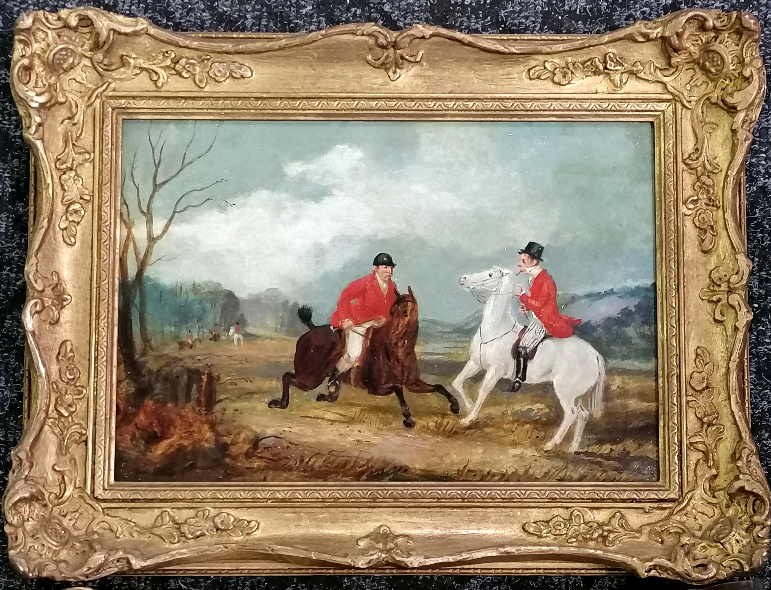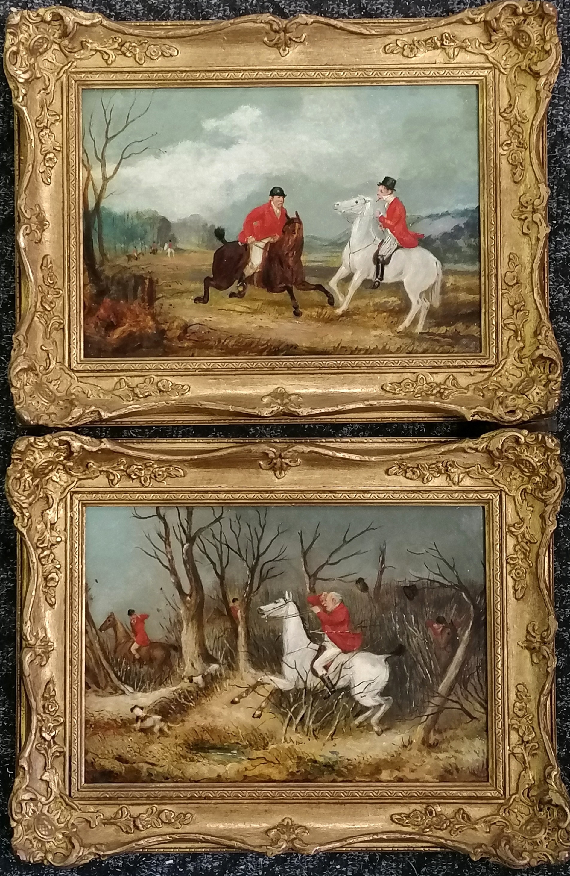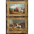 Attributed to S Alken junior 1821-1873 2 oil paintings on canvas of a hunt unsigned - frames 33cm x 43cm