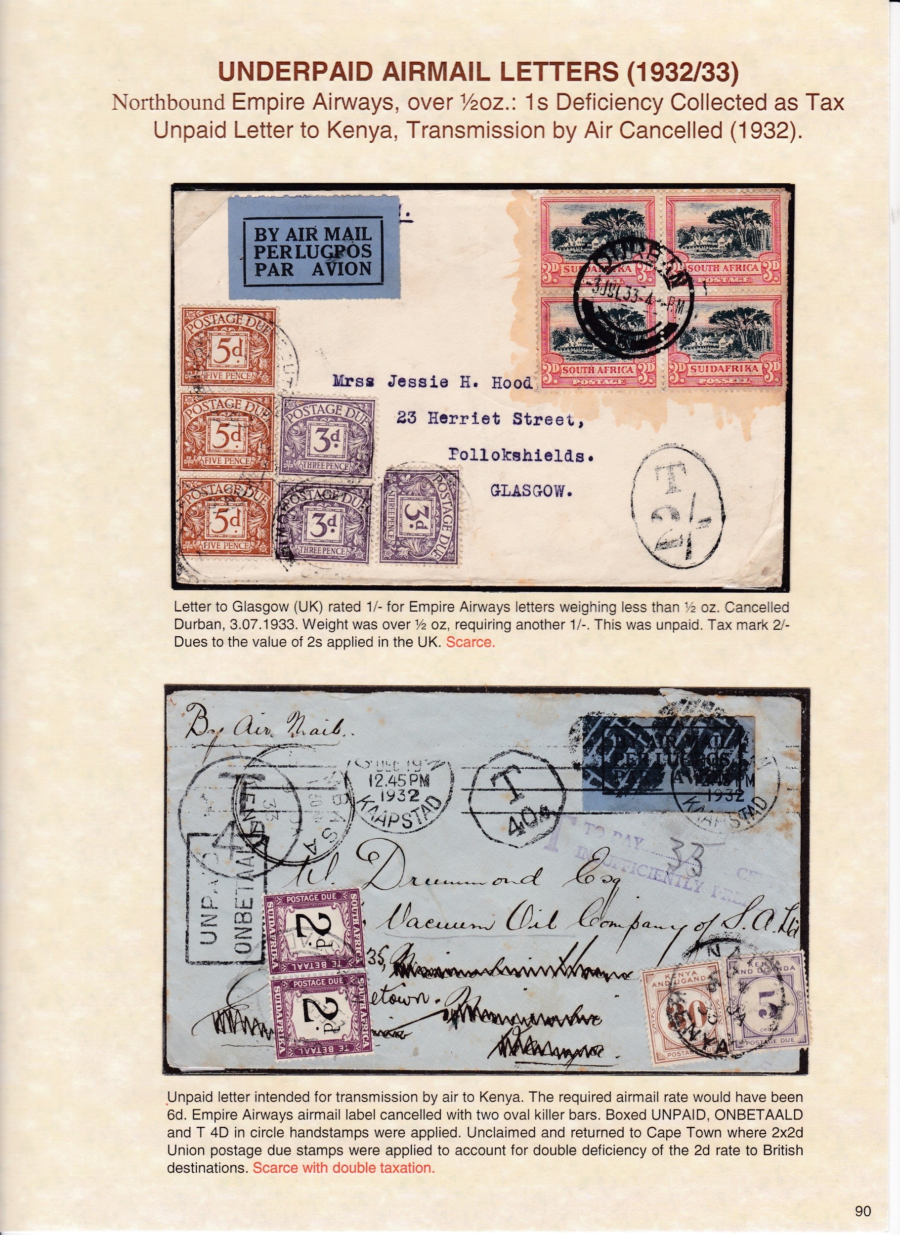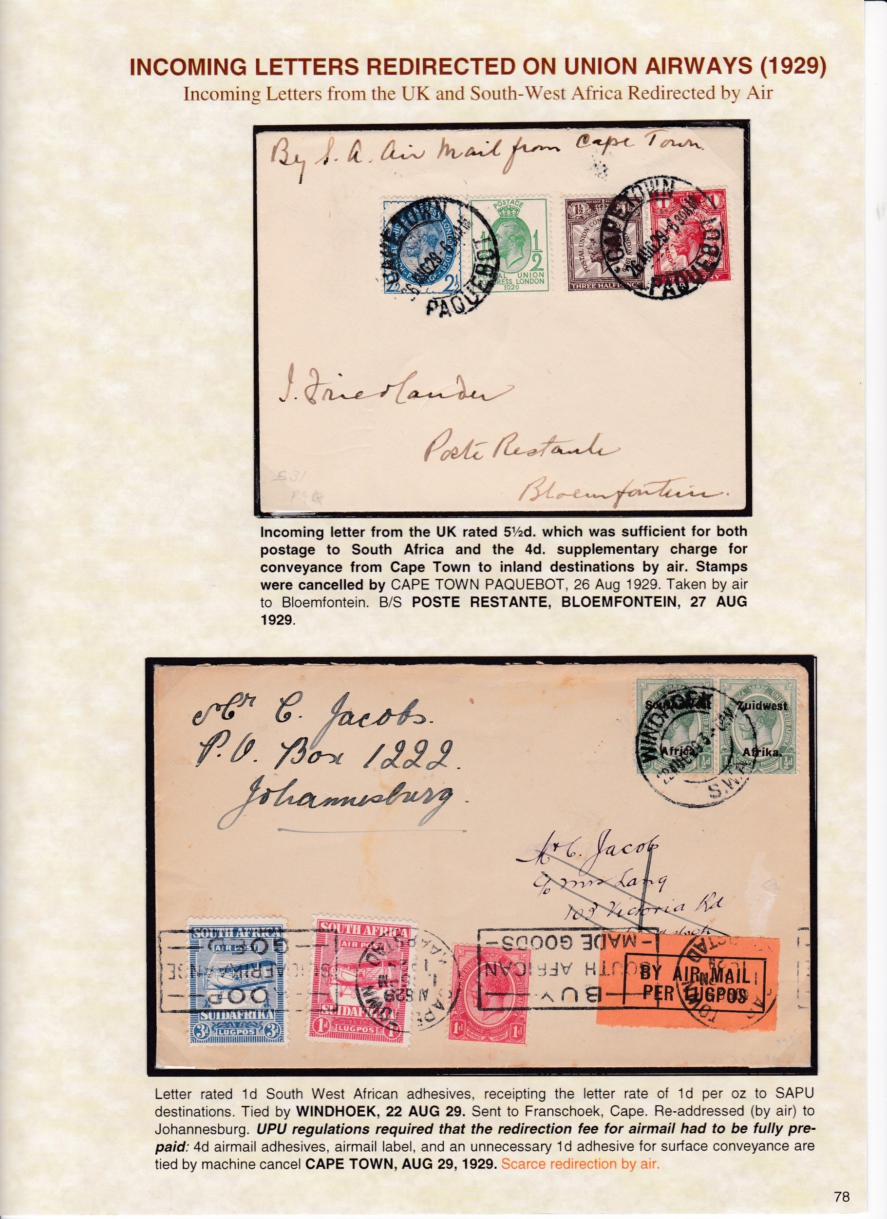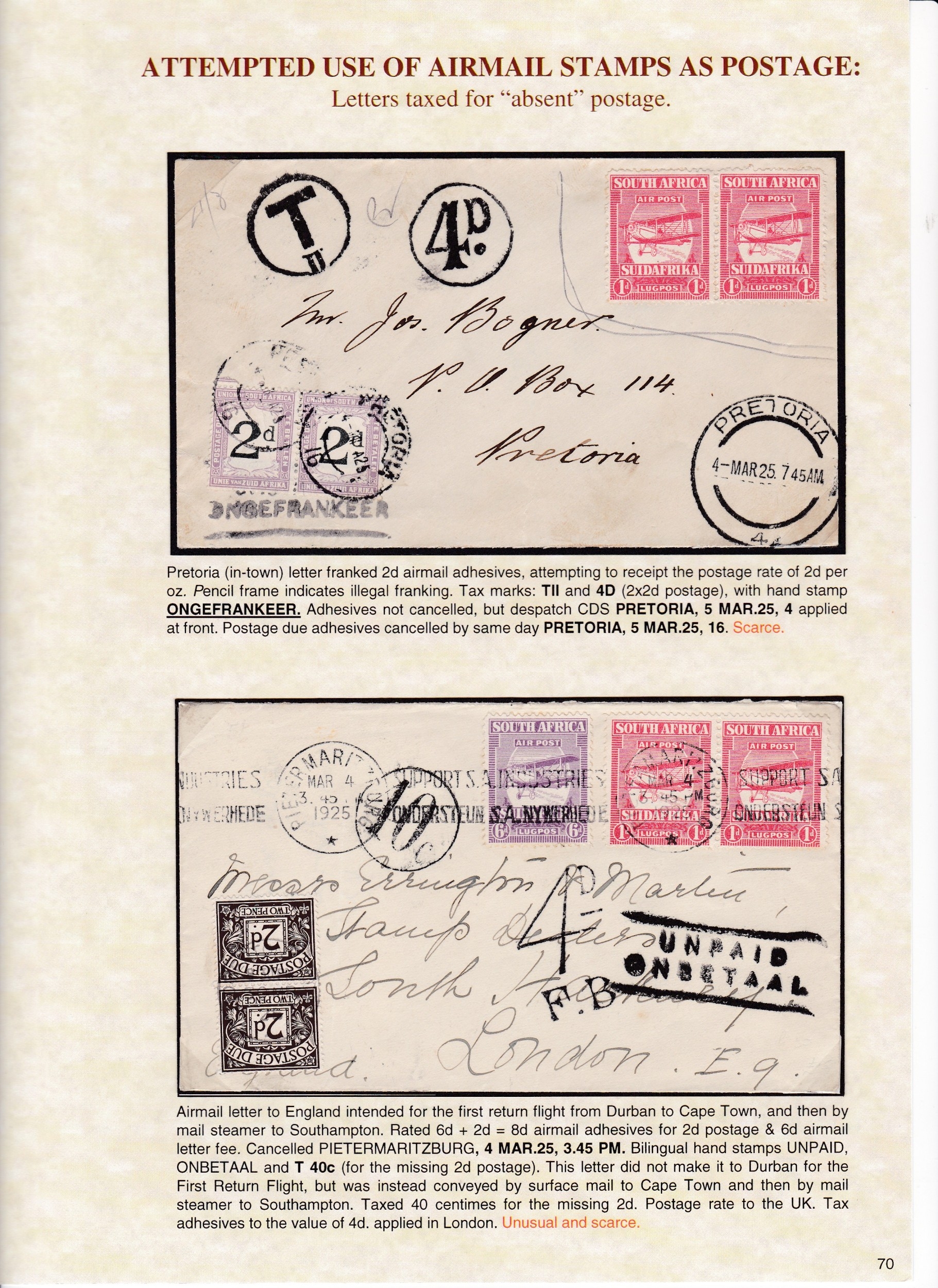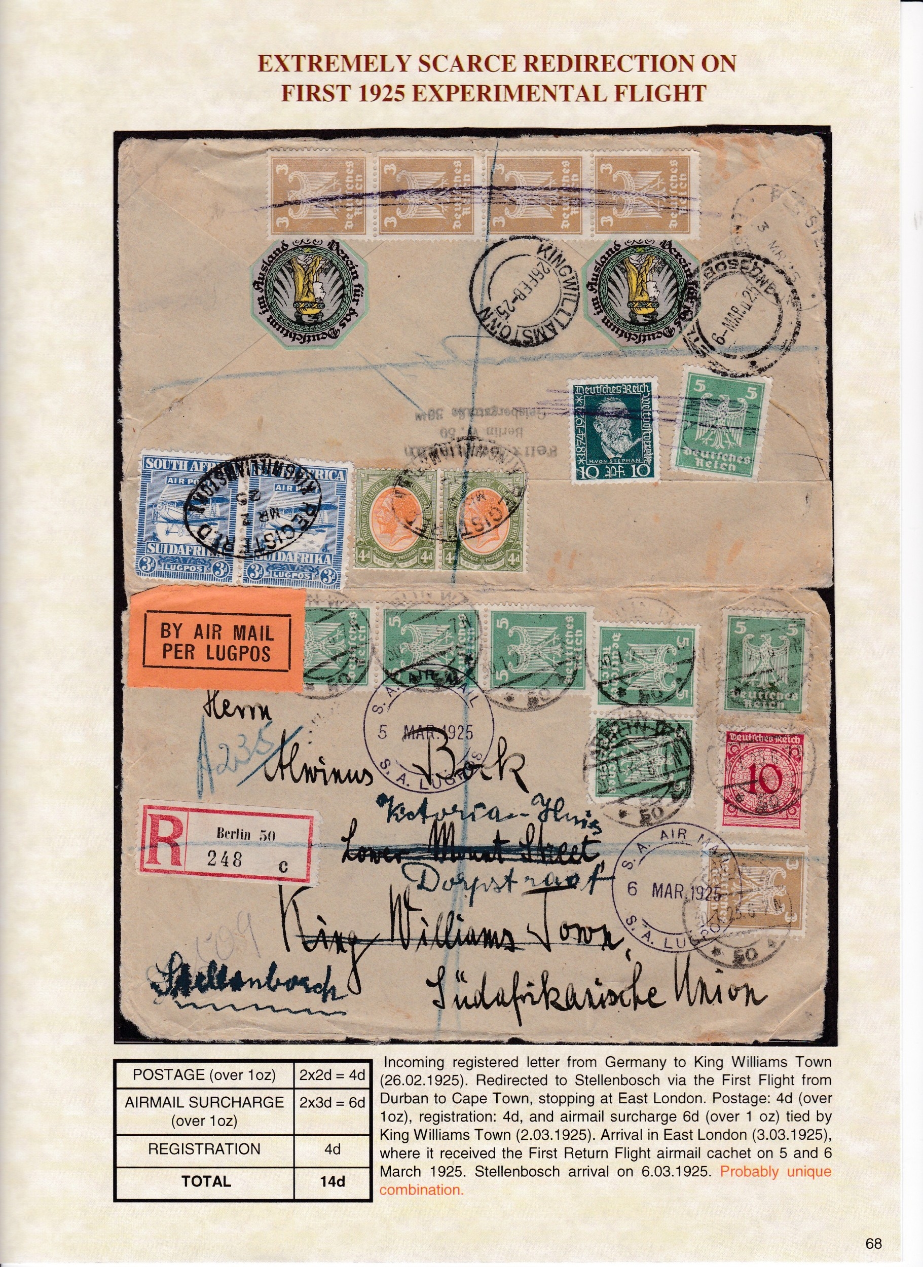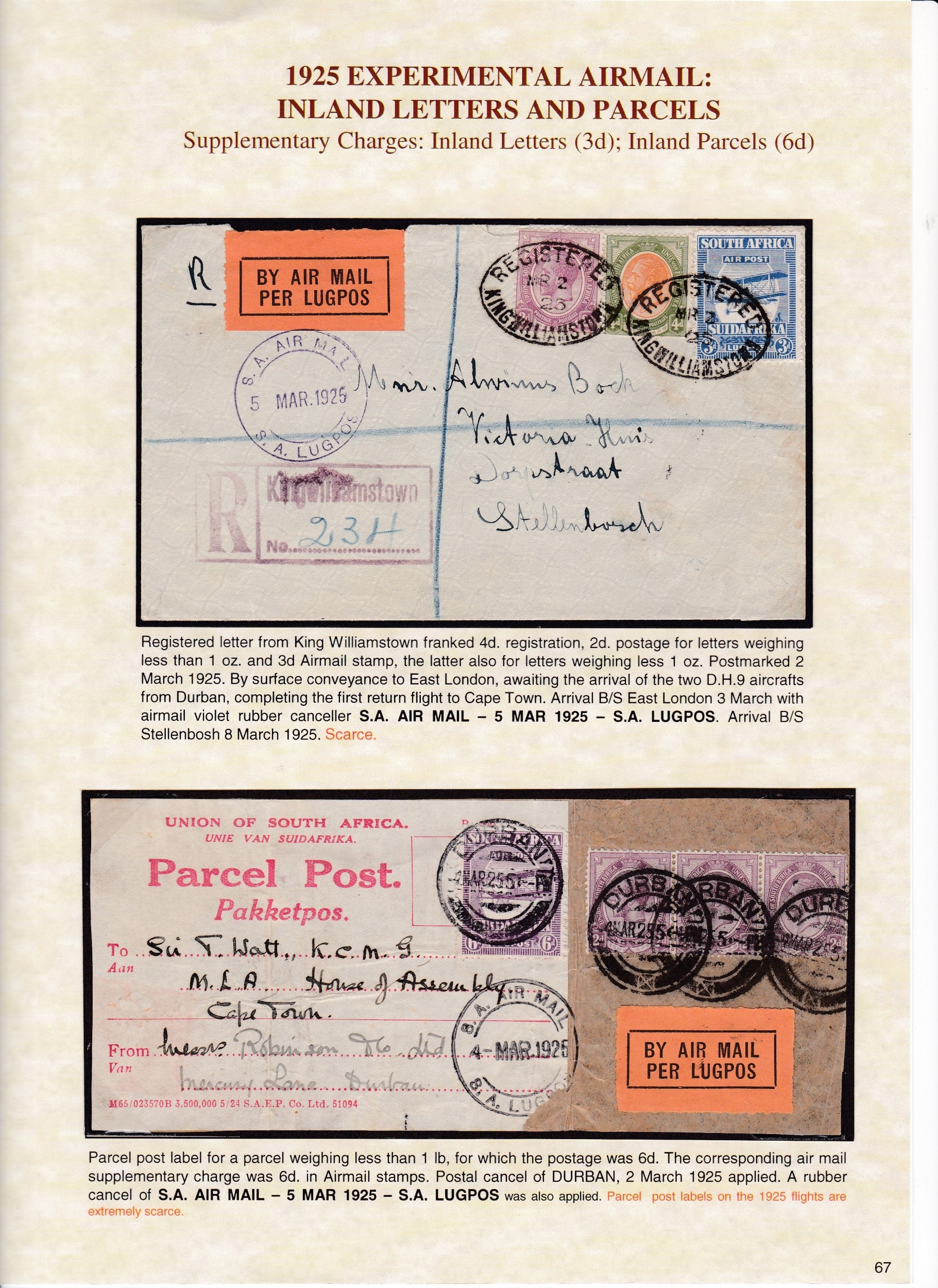Airmails 1925/38 a well displayed collection of 59 covers, fronts & cards including some exceptional items noting experimental flights, 1925 parcel post label used on piece, postage due usages, 1936 pair 10/- on piece etc.