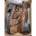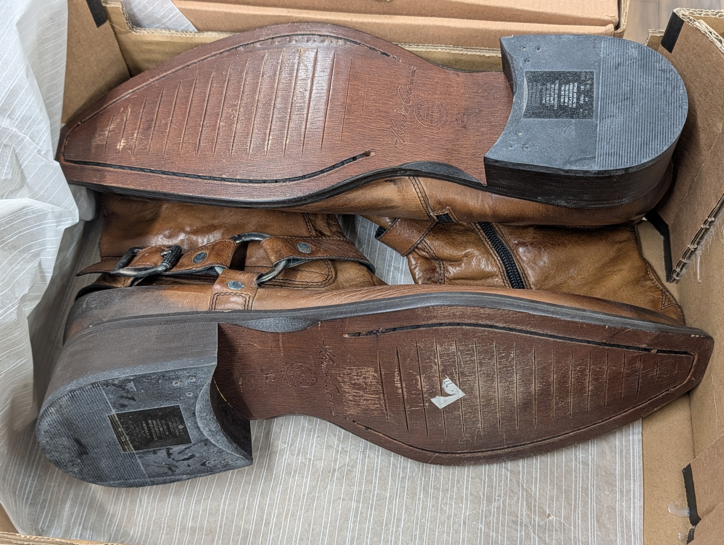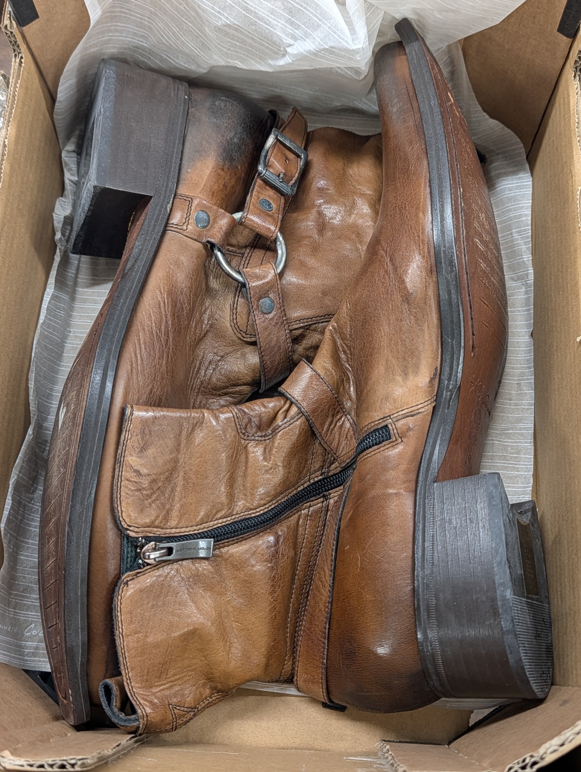 A Pair of Kenneth Cole Men's Brown Distressed Leather Harness Ankle Boots Size 12
