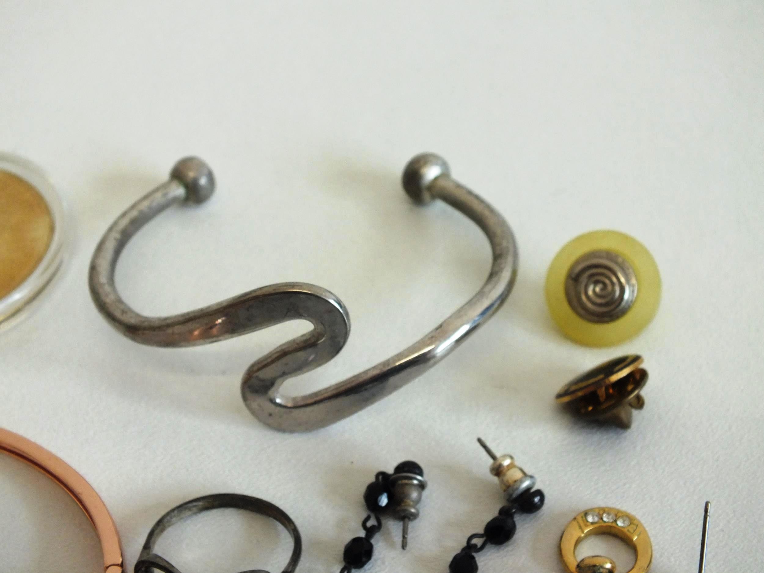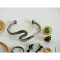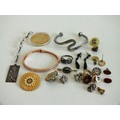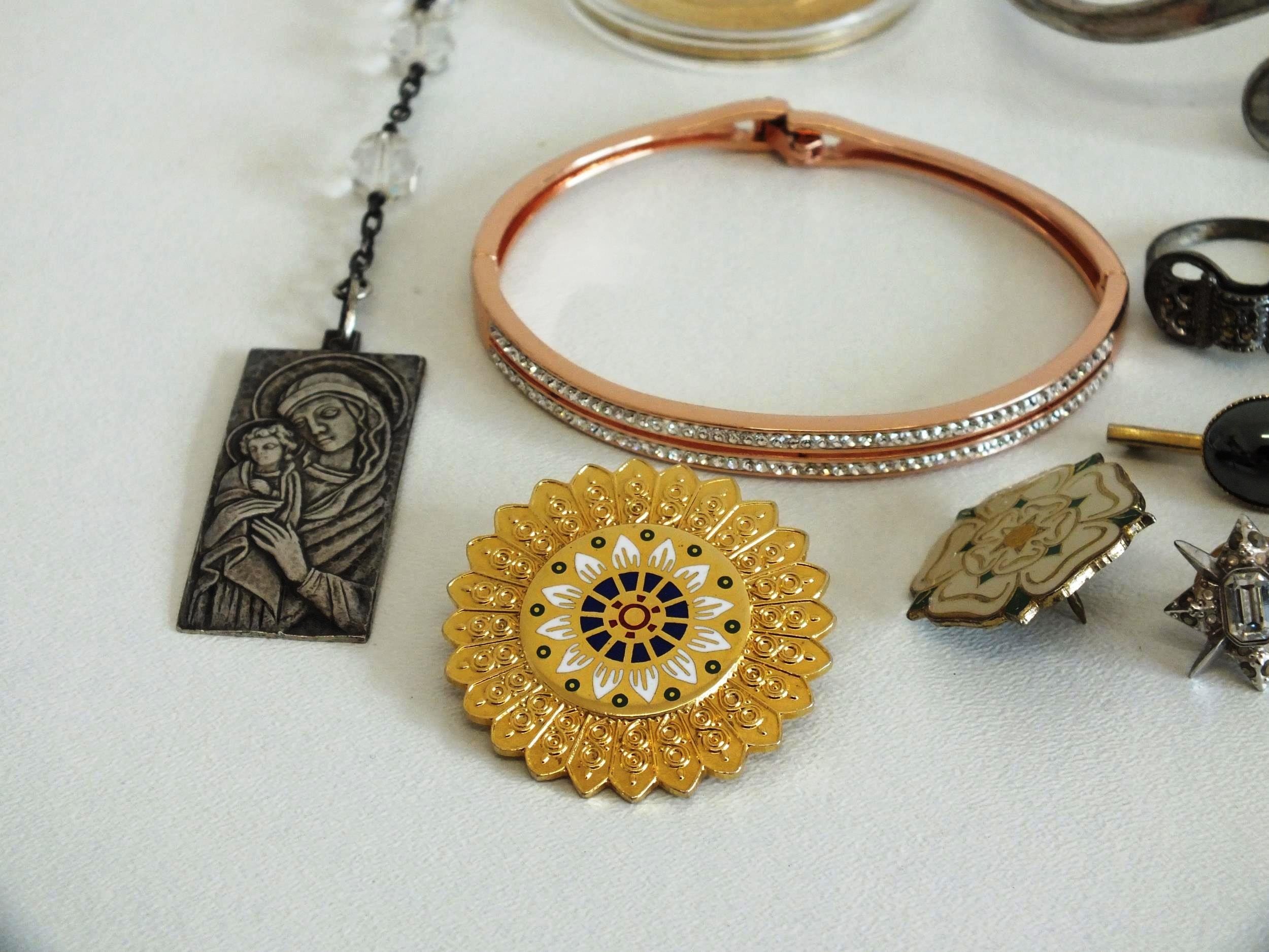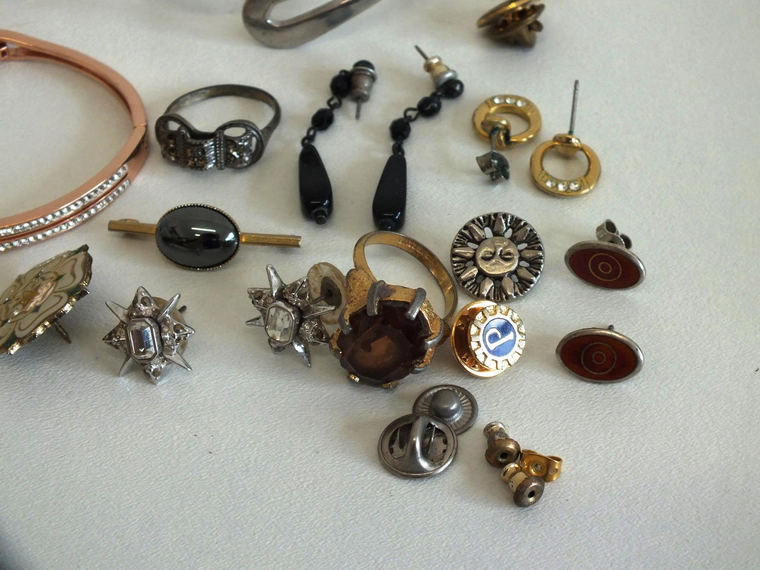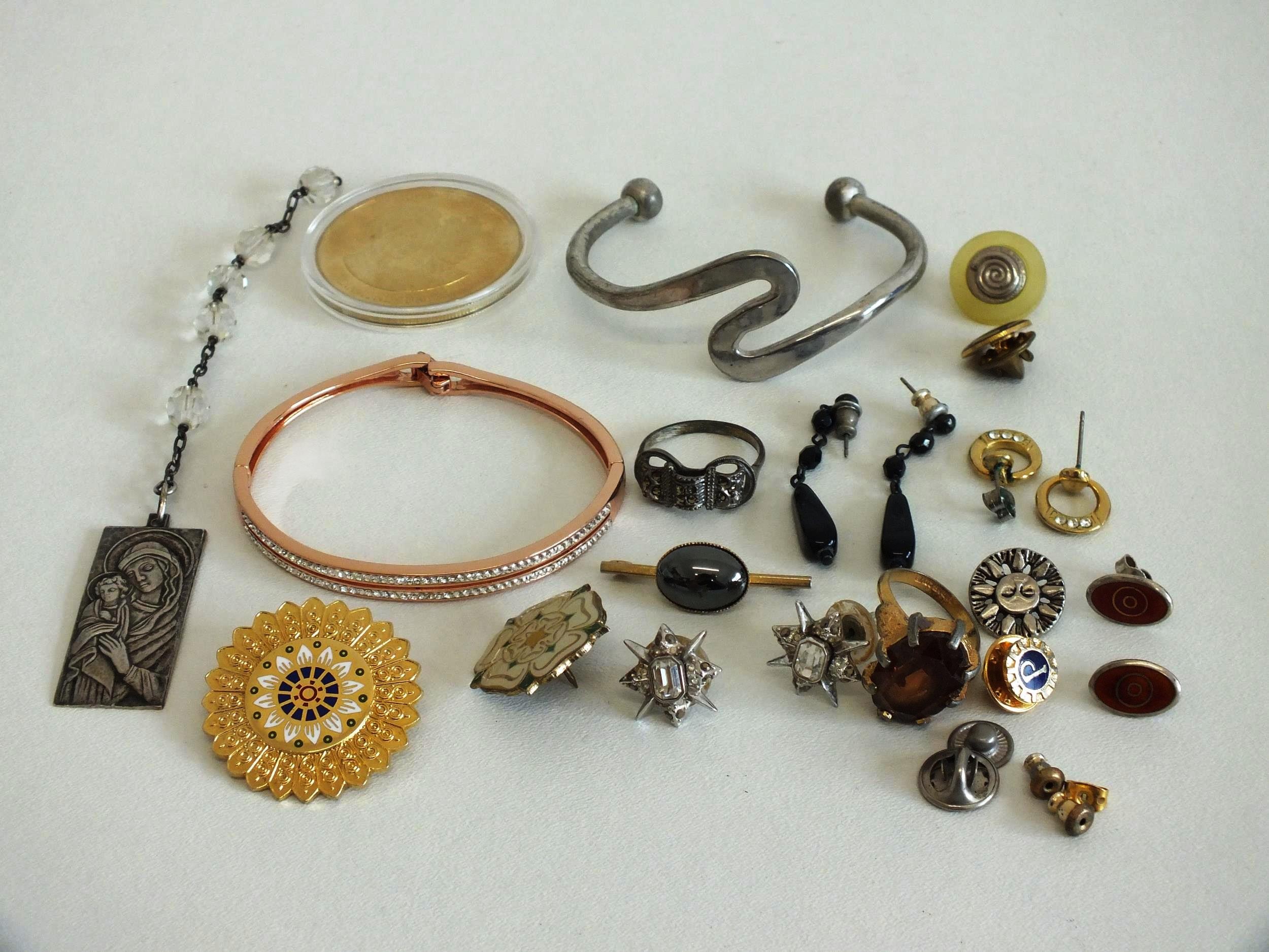 JEWELLERY, COIN & BADGES INCLUDES SILVER EARRINGS, MARCASITE RING etc