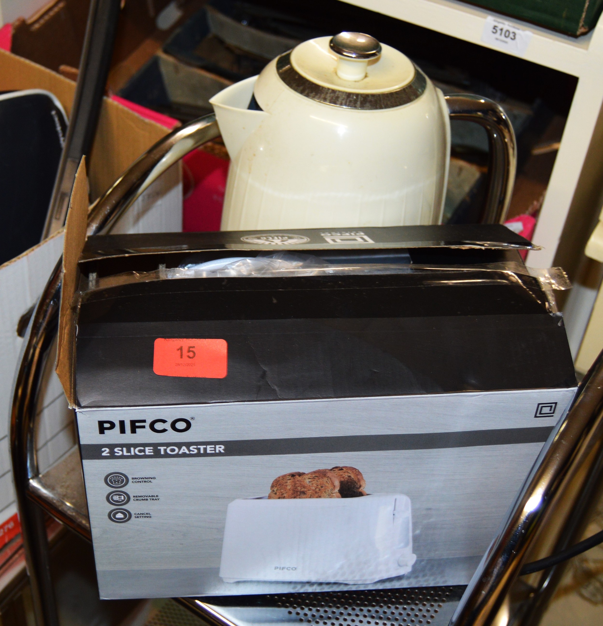 Brand New in Box Pifco Two Slice Toaster plus a Breville Kettle in an Ivory Colouring (Used)