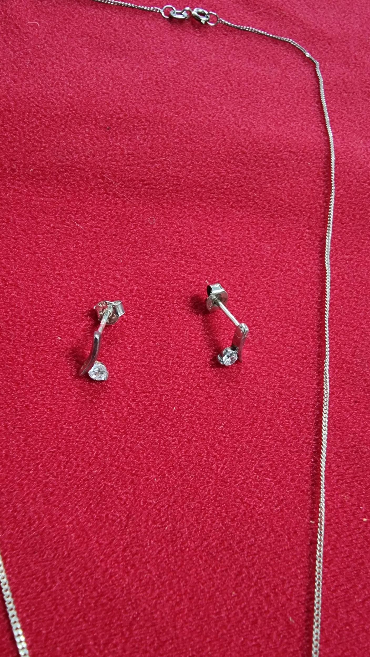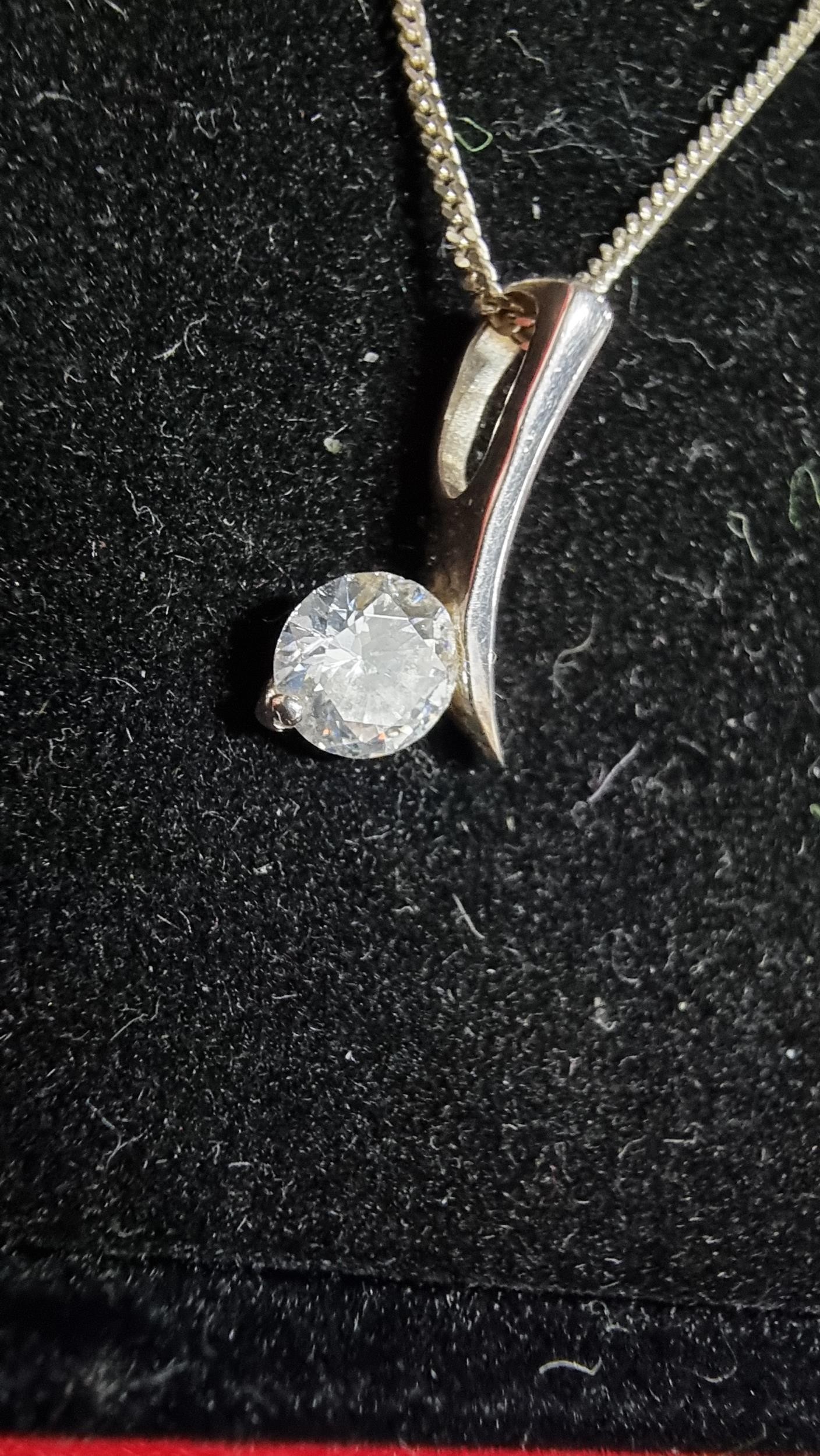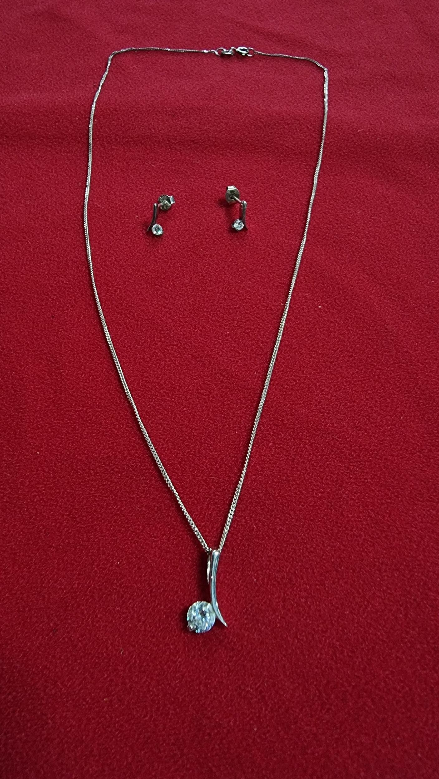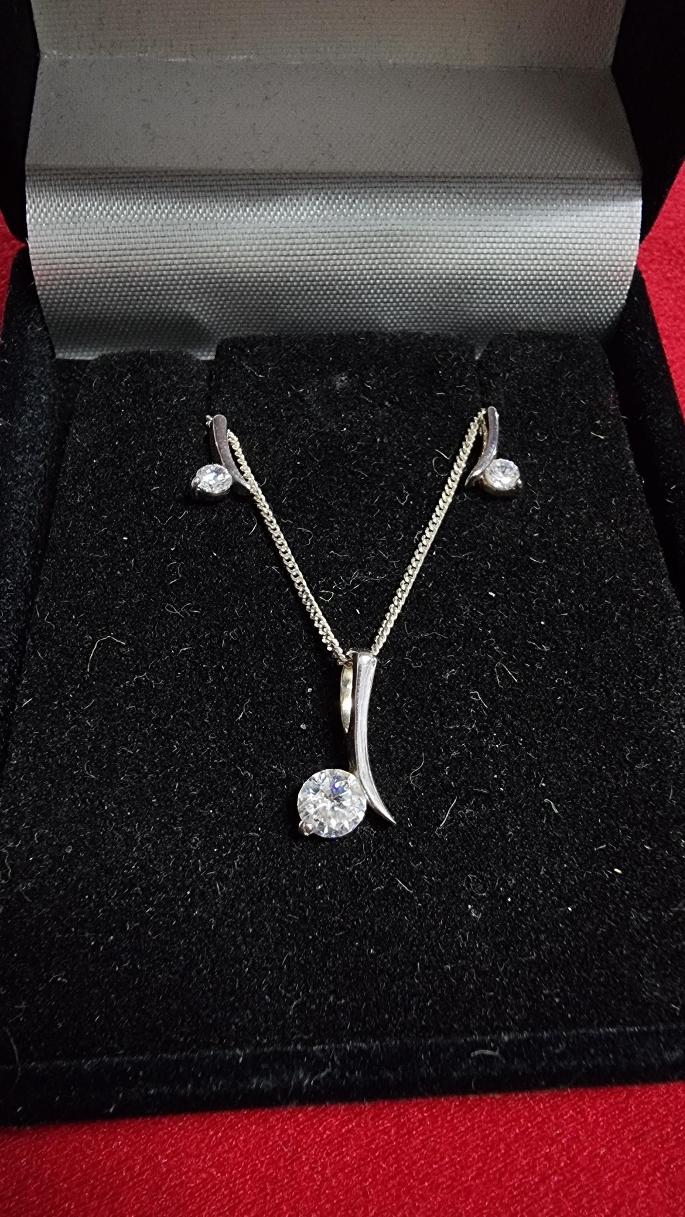 Matching 925 silver jewellery set inc a solitaire pendant with a CZ stone on a 18 inch 925 silver chain and a matching pair of 925 silver earrings