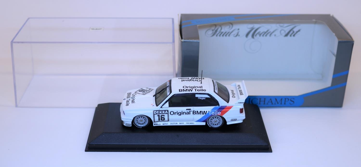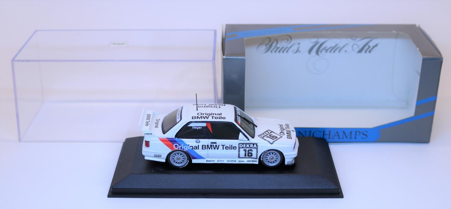 Minichamps 1:43 E30 M3 Racing Car. (12021). Linder/Original BMW Teile, racing number 16, driver Heger. Boxed, minor wear to card outer sleeve. Vehicle Mint. £40-60