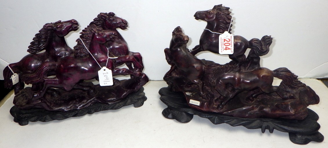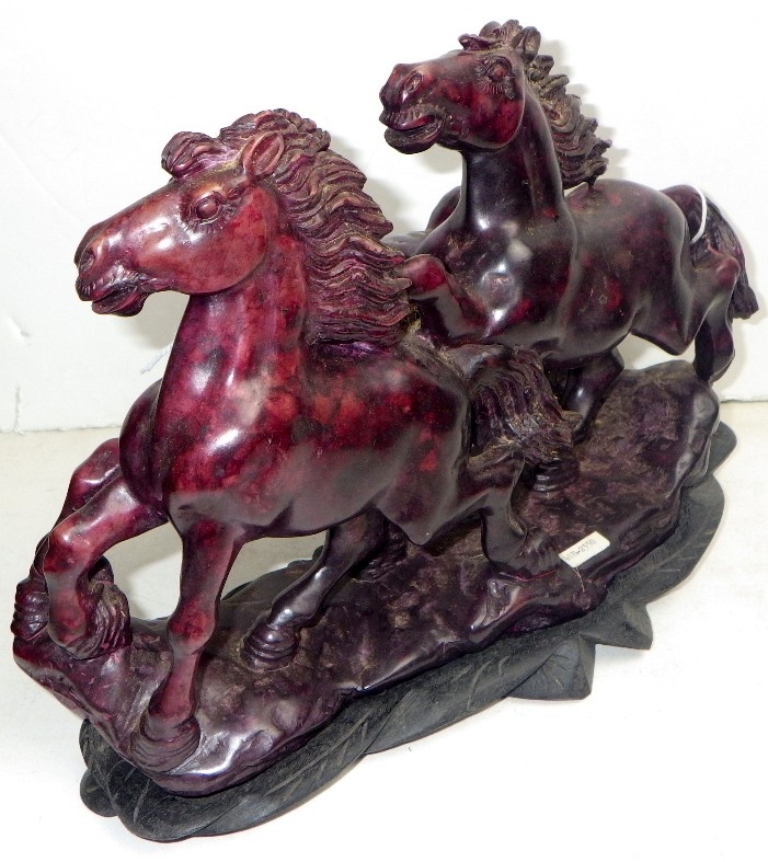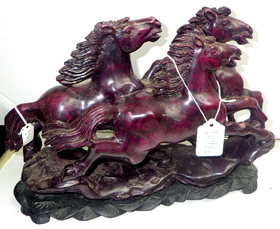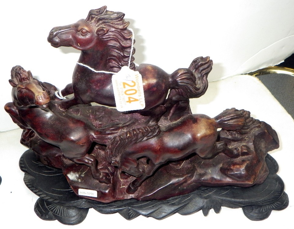 An Oriental carved and polished stone horse sculpture