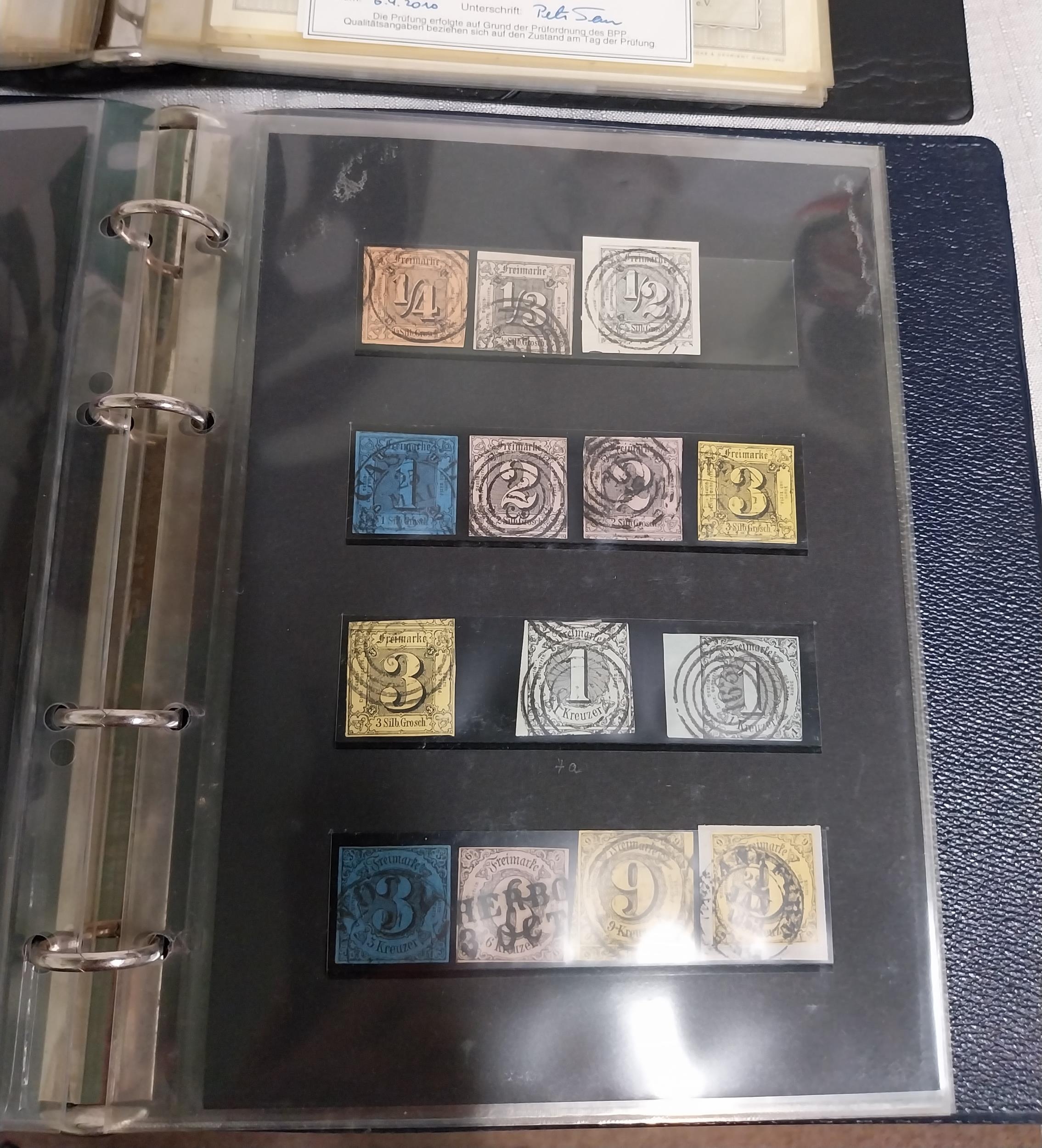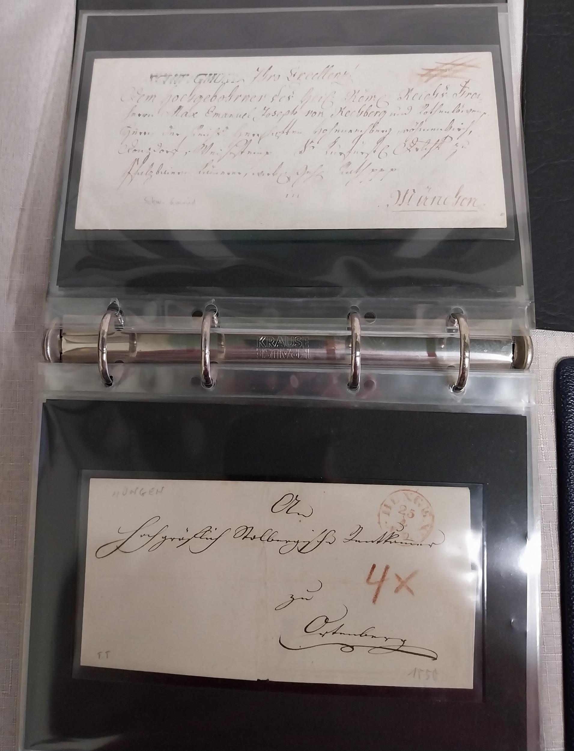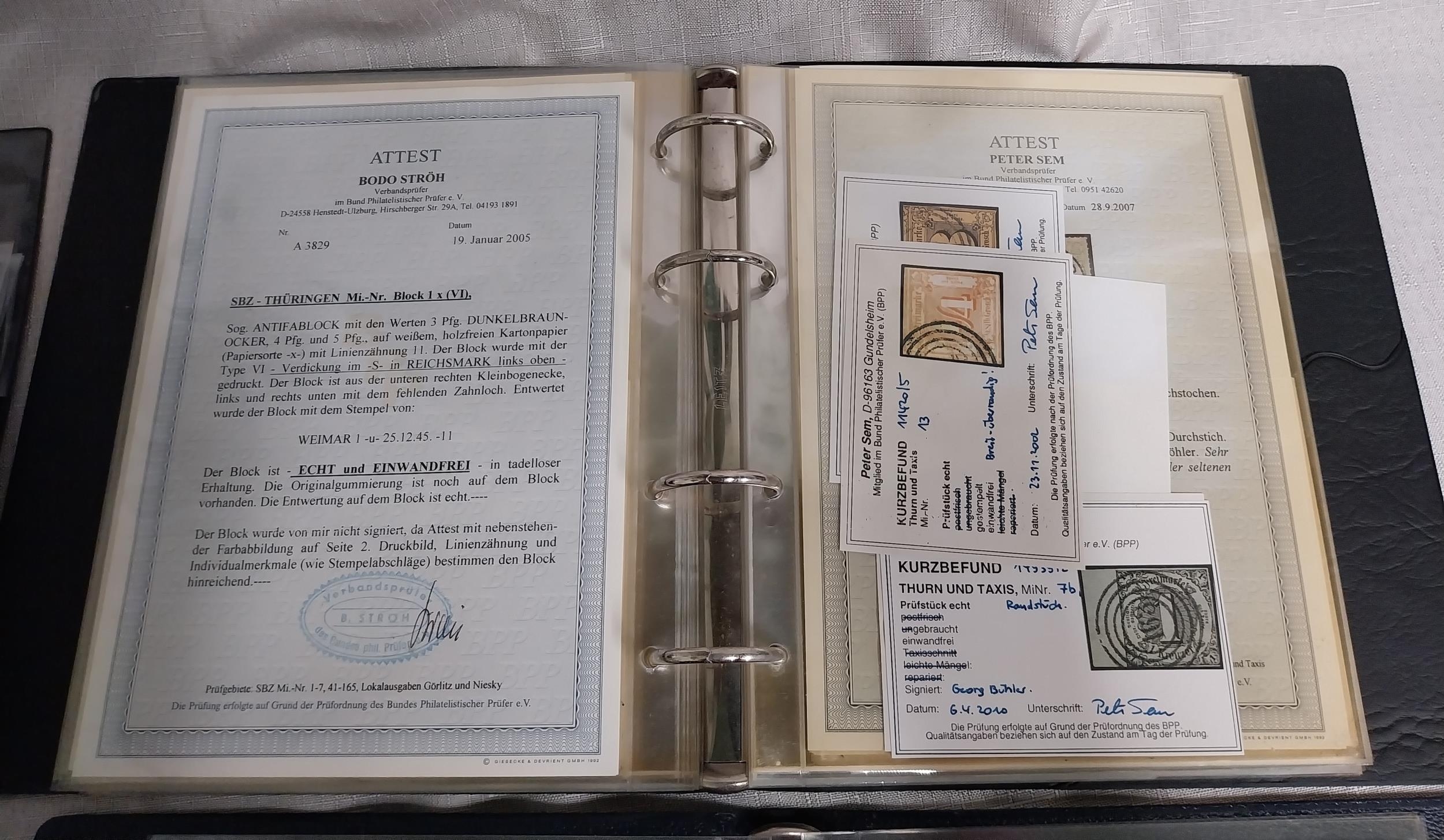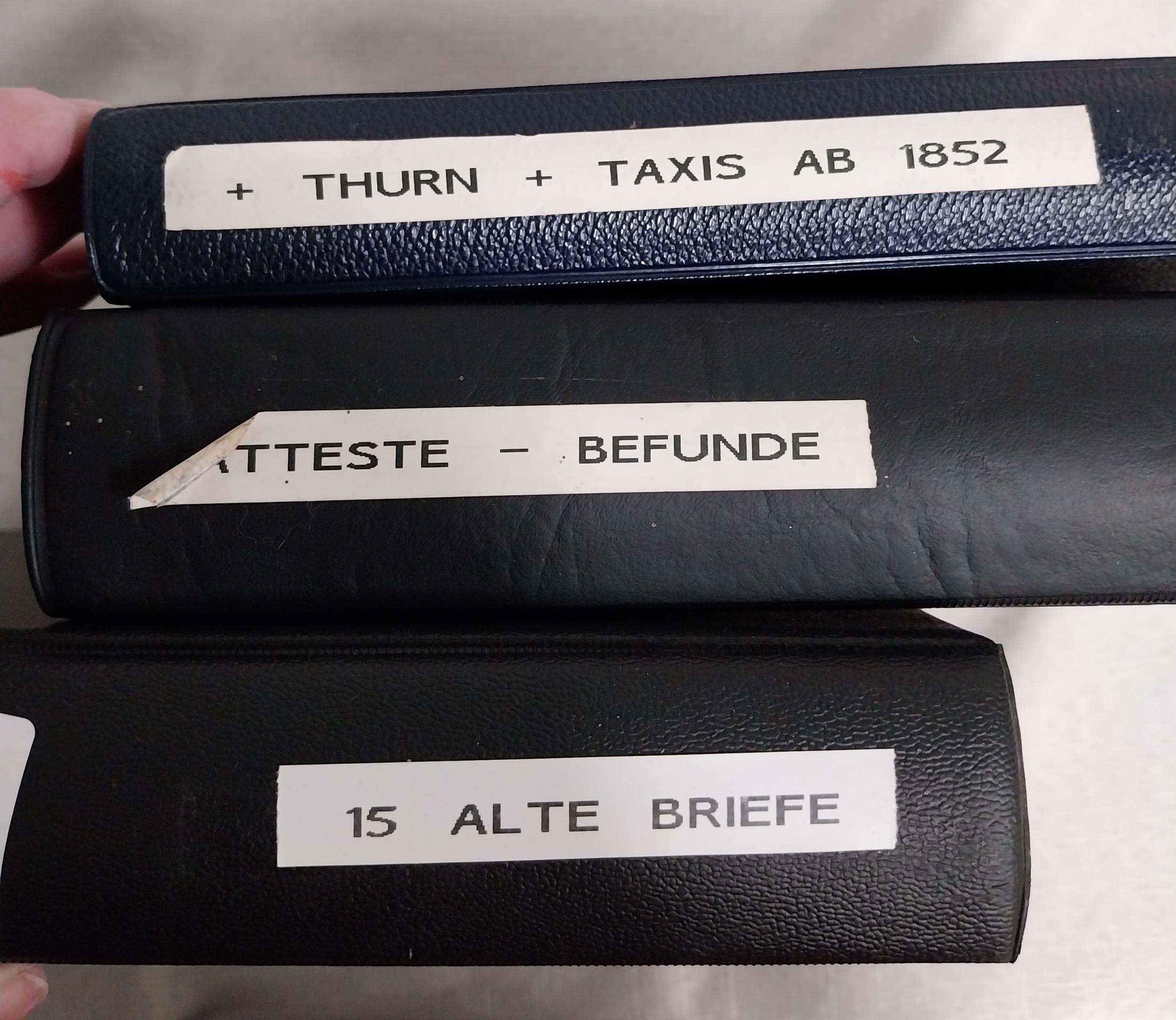 Three albums of German stamps & documents Album of Alte Briefe German documents 1870 onwards , album of certified German stamps - 1859 - 1945 & Thurn & Taxis stamps and 1st Day Cover.