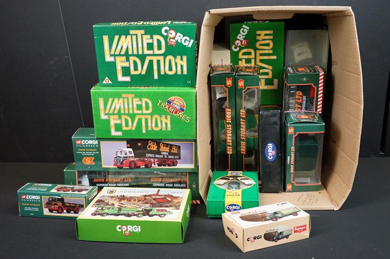 20 Boxed Corgi diecast models to include Eddie Stobart models, 75201 Corgi Modern Trucks Eddie Stobart, Corgi Classic Road Transport, Limited Edition models, Corgi Tramlines, etc, diecast ex, boxes vg overall