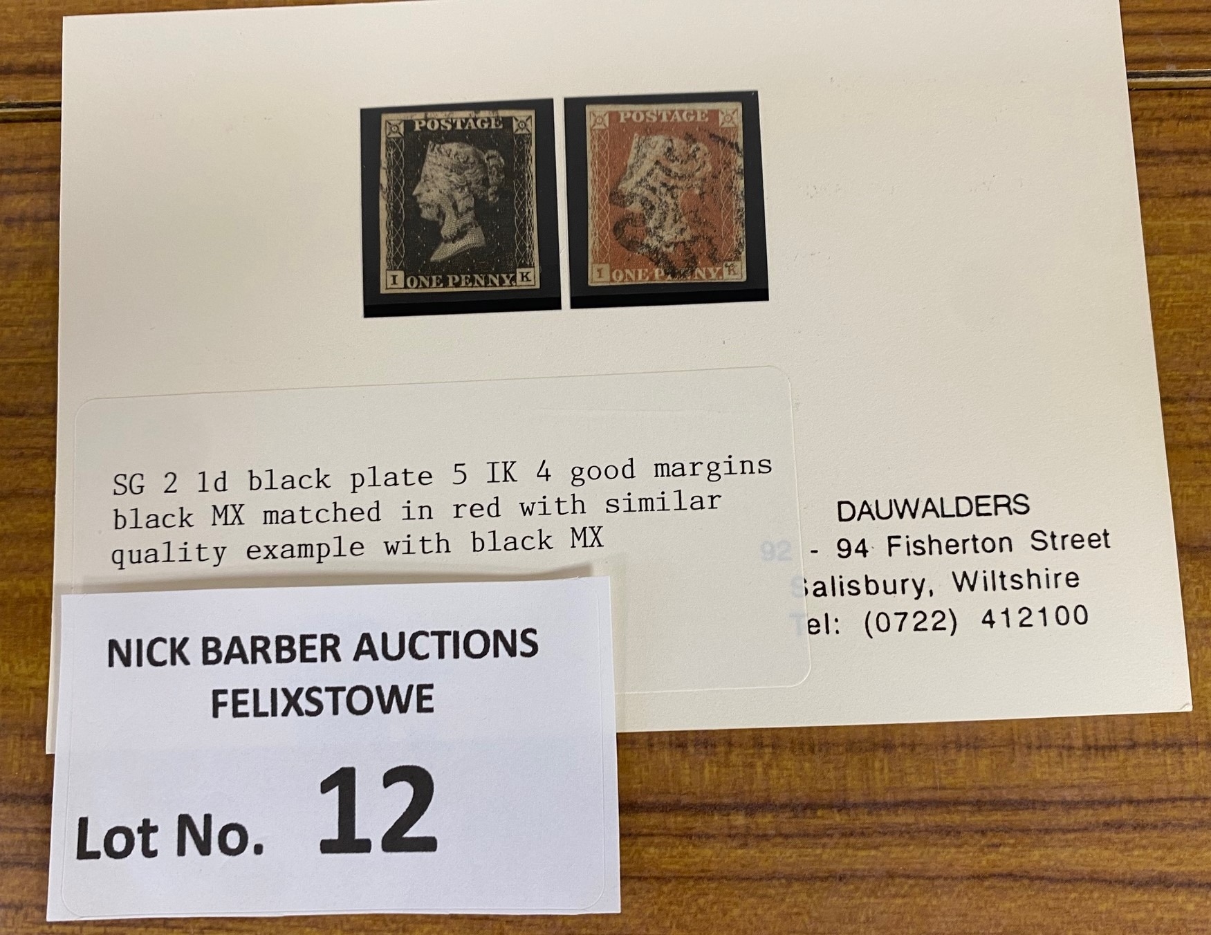 Stamps : Penny Black SG2 Plate 5 with 4 margins, very nice item with Penny Red.