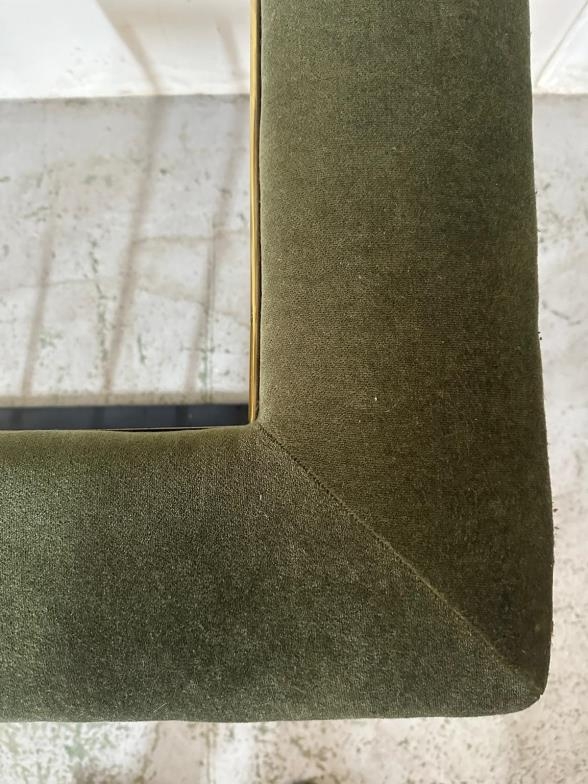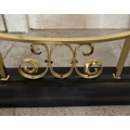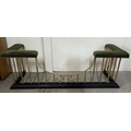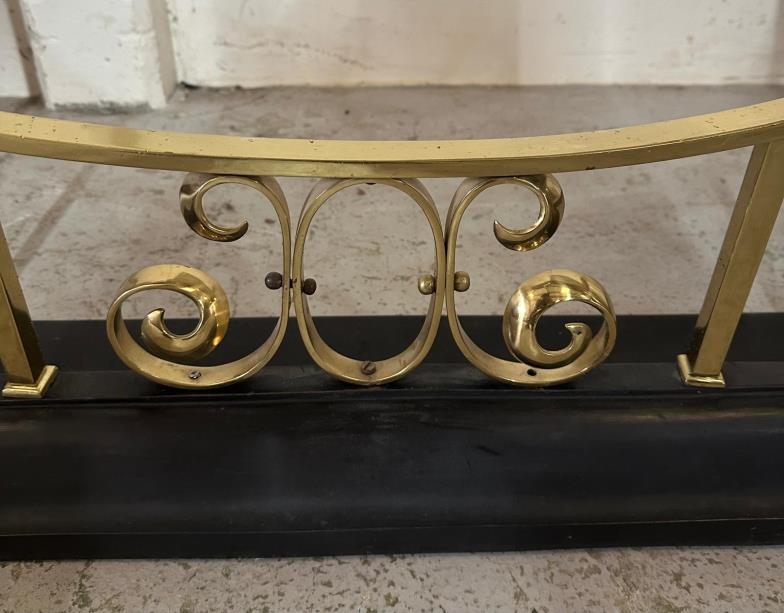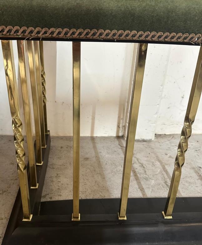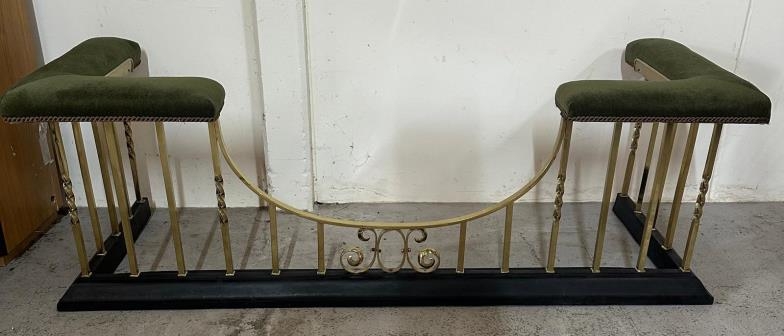 A substantial club fender with green upholstered seating to corners (H60cm W184cm D67cm)