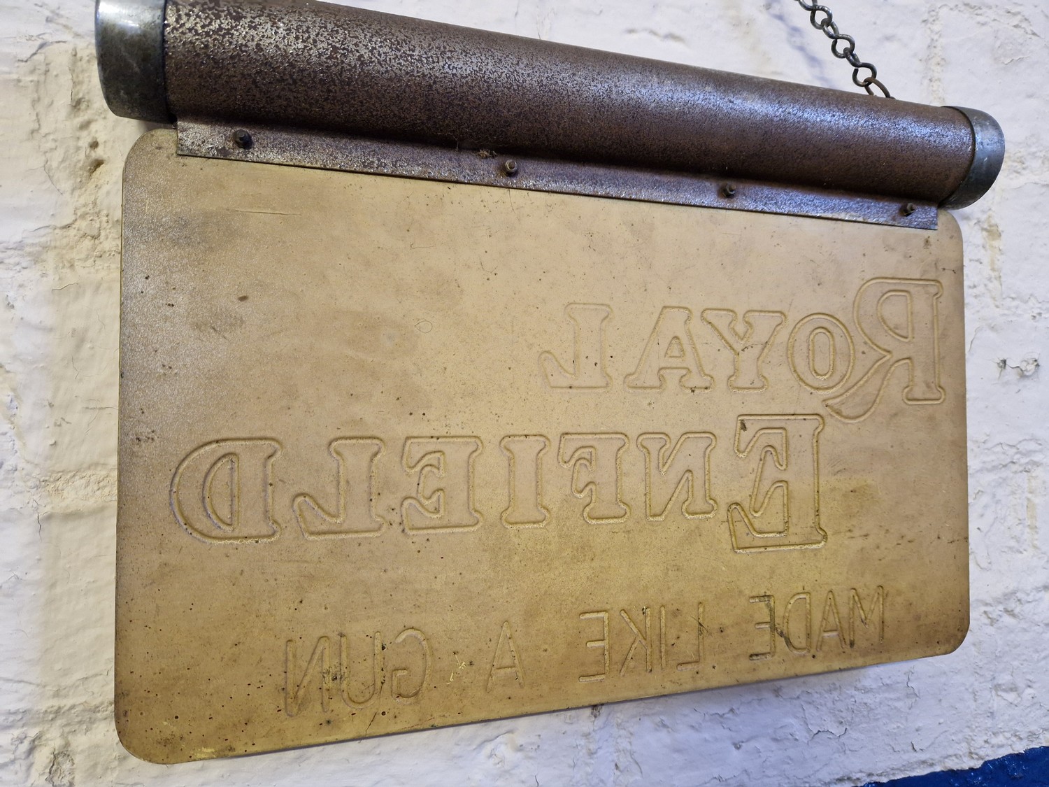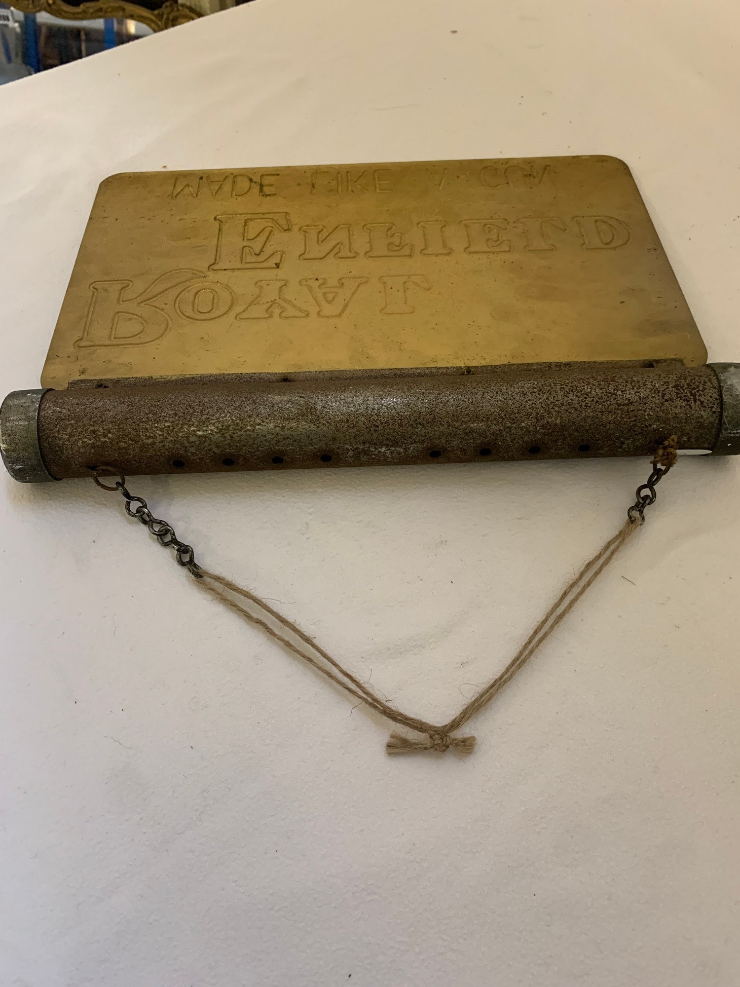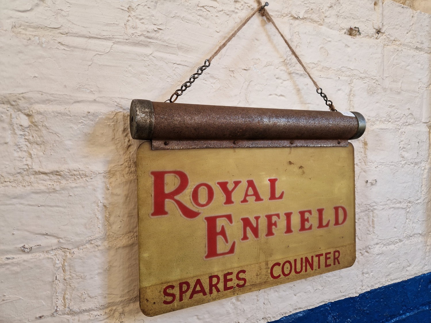 Vintage Royal Enfield spares counter, illuminated sign approx. 39cm x 28cm
