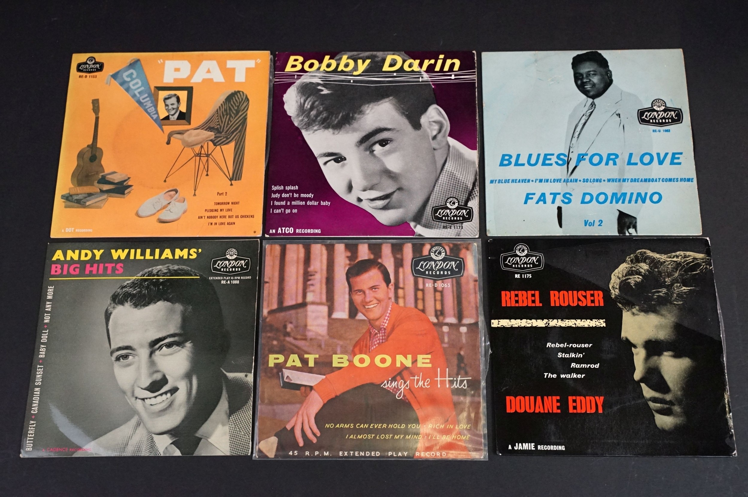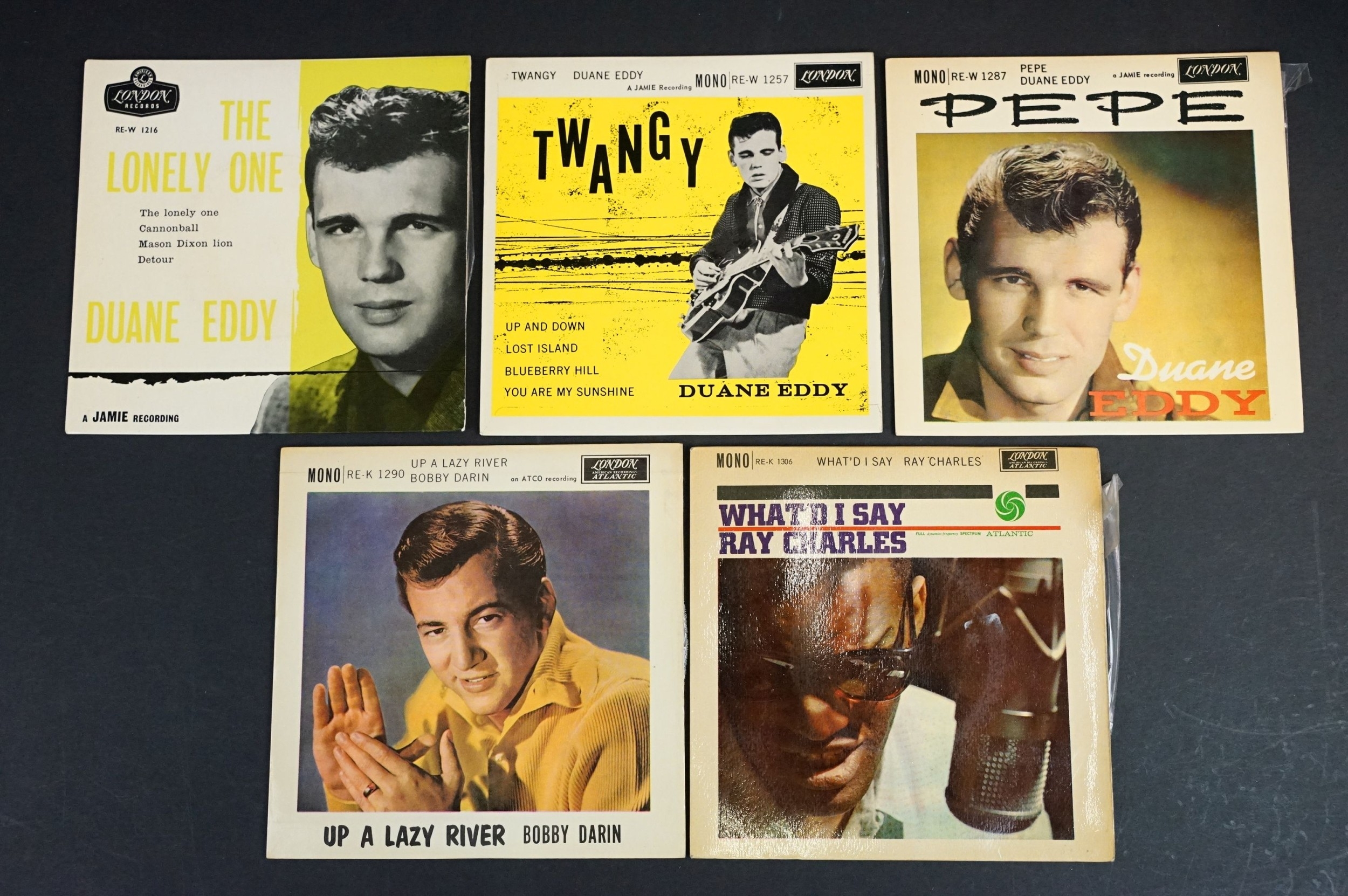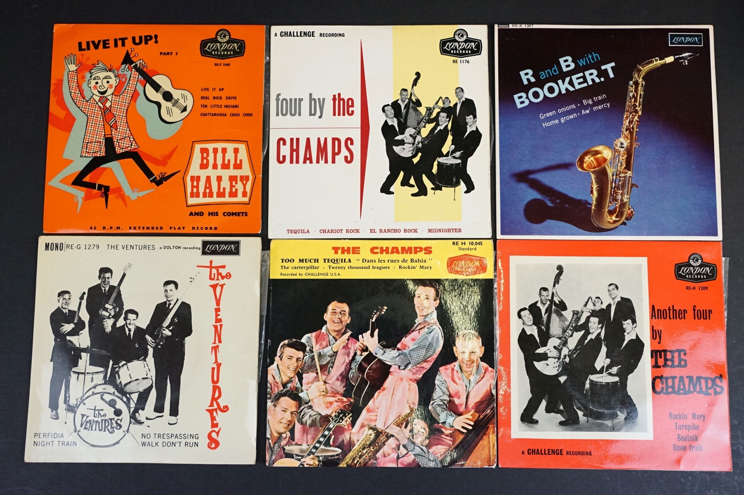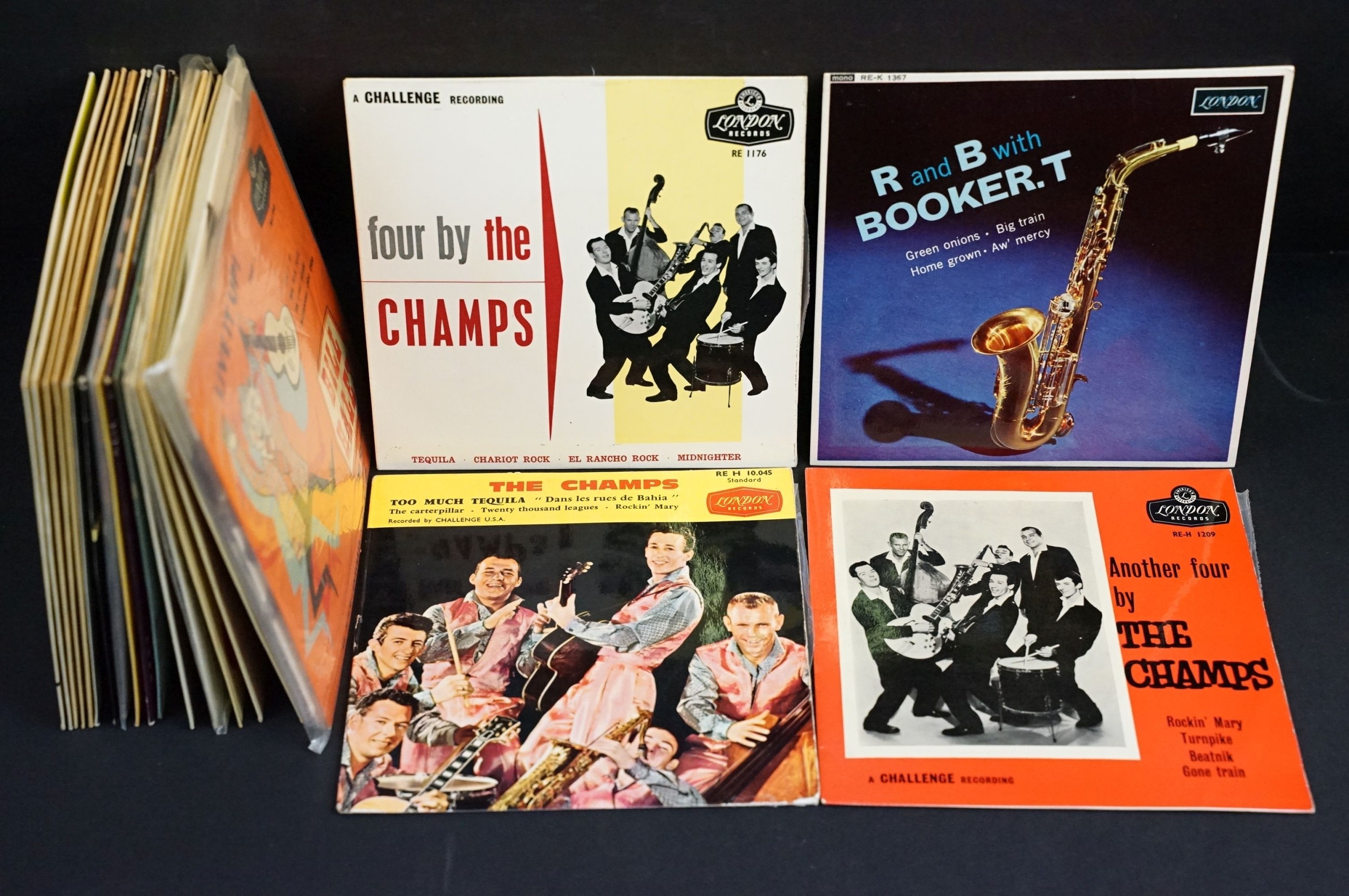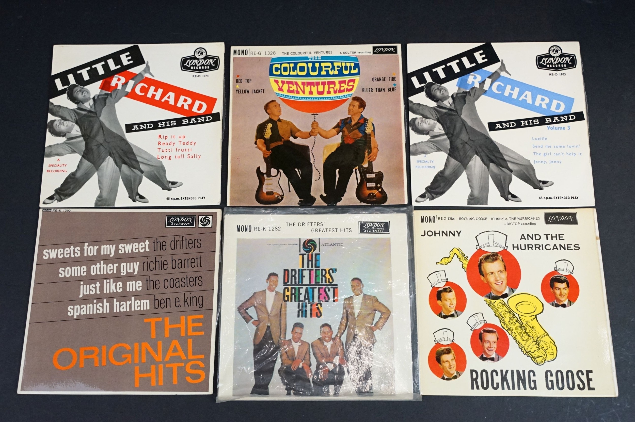 Vinyl - 23 UK pressing E.P.’s on London Records to include: Booker T. & The M.G.’s, The Champs x 3, Bill Haley And His Comets, Little Richard x 2, Johnny And The Hurricanes, The Drifters, The Original Hits (Richie Barrett, The Coasters, Ben E. King, The Drifters), Fats Domino, Bobby Darin and others. Condition VG+ overall