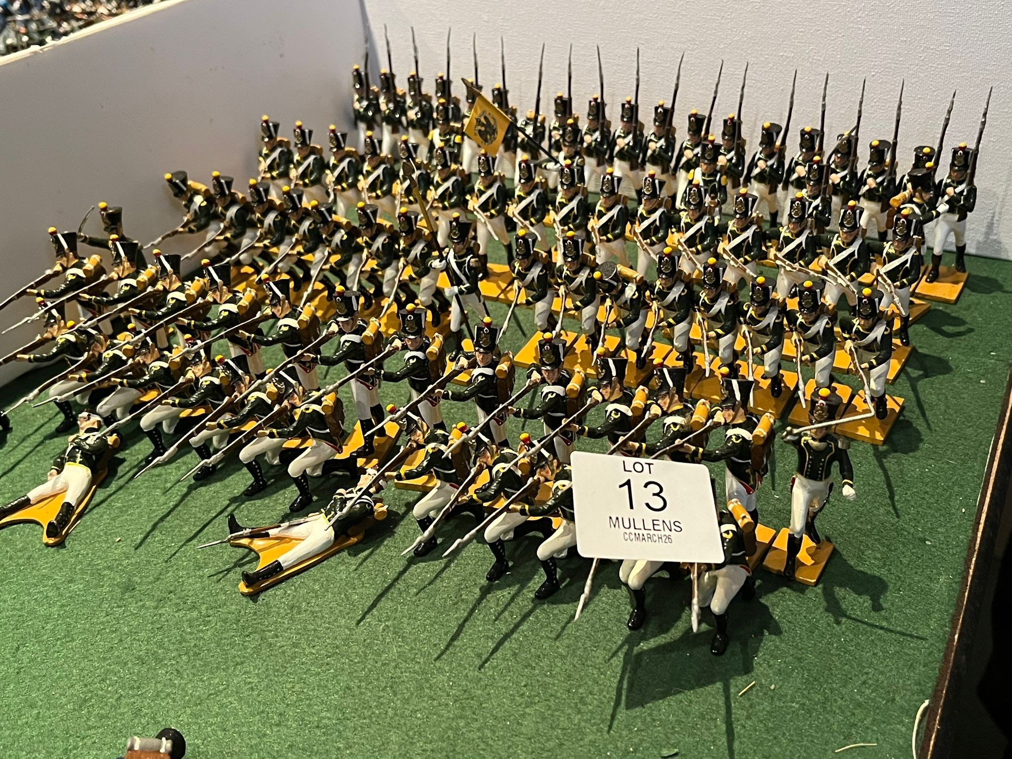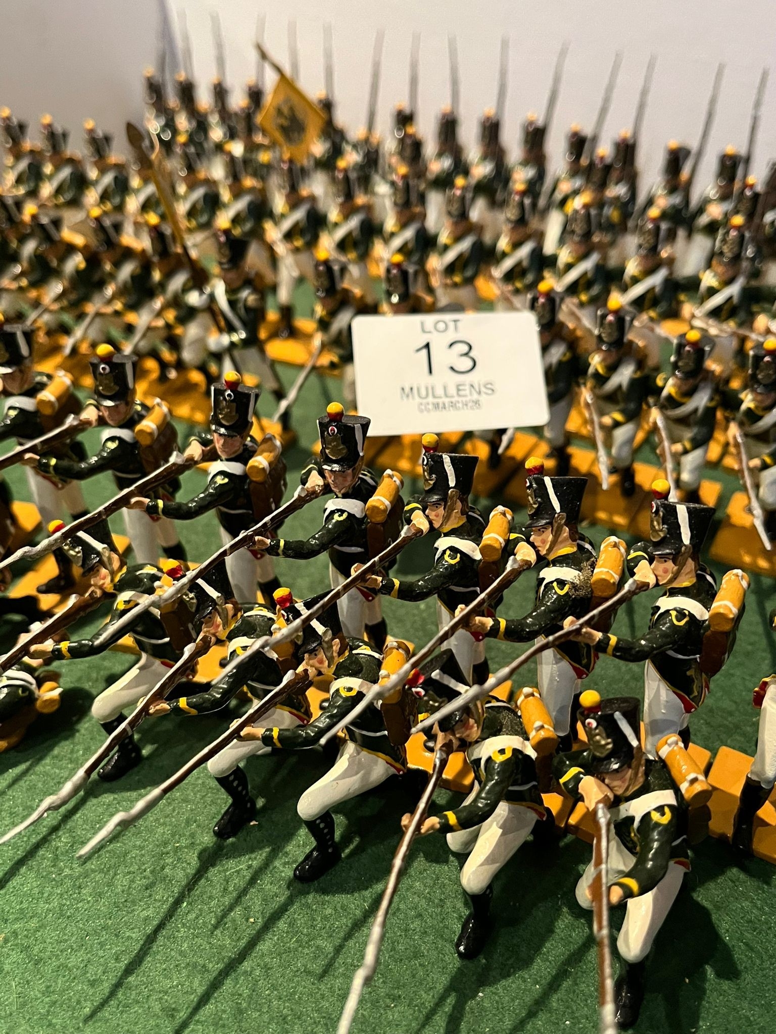 + Calendar 2026-04-17 12:00:00 2026-04-27 18:00:00 Europe/London The Collector's Cabinet Timed Online Auction Mullens Laurel Park April Collector’s Cabinet Auction showcases a variety of accessible collectibles for all budgets. The catalogue features a wonderful single owner collection of model soldiers and militaria with a strong focus on the Napoleonic wars, with some high quality, hand painted figures from niche and specialist makers from across Europe, and further afield, such as Niena in St Petersburg. The sale spans Edged weapons, through Dinky toys to some interesting and rare modern music and entertainment lots. Irish coinage along with gold and silver bullion complement a collection of Irish and international silver with some stand out pieces, including a three handled, silver banded and lined loving cup bearing the Fitzgerald family crest, part of the contents of Turlough Park House in County Mayo, some of which are included in this sale. *Please Note: toy lots may have wear, paint chips or some damage unless stated otherwise.  Unfortunately, it may not be possible to provide condition reports for lots with an estimate below €100. Lots 1-50 and Lots 66-148 will be sold as per photographs and unfortunately cannot be viewed in person, due to logistical purposes are boxed and ready for collection Mullen's Auctioneers