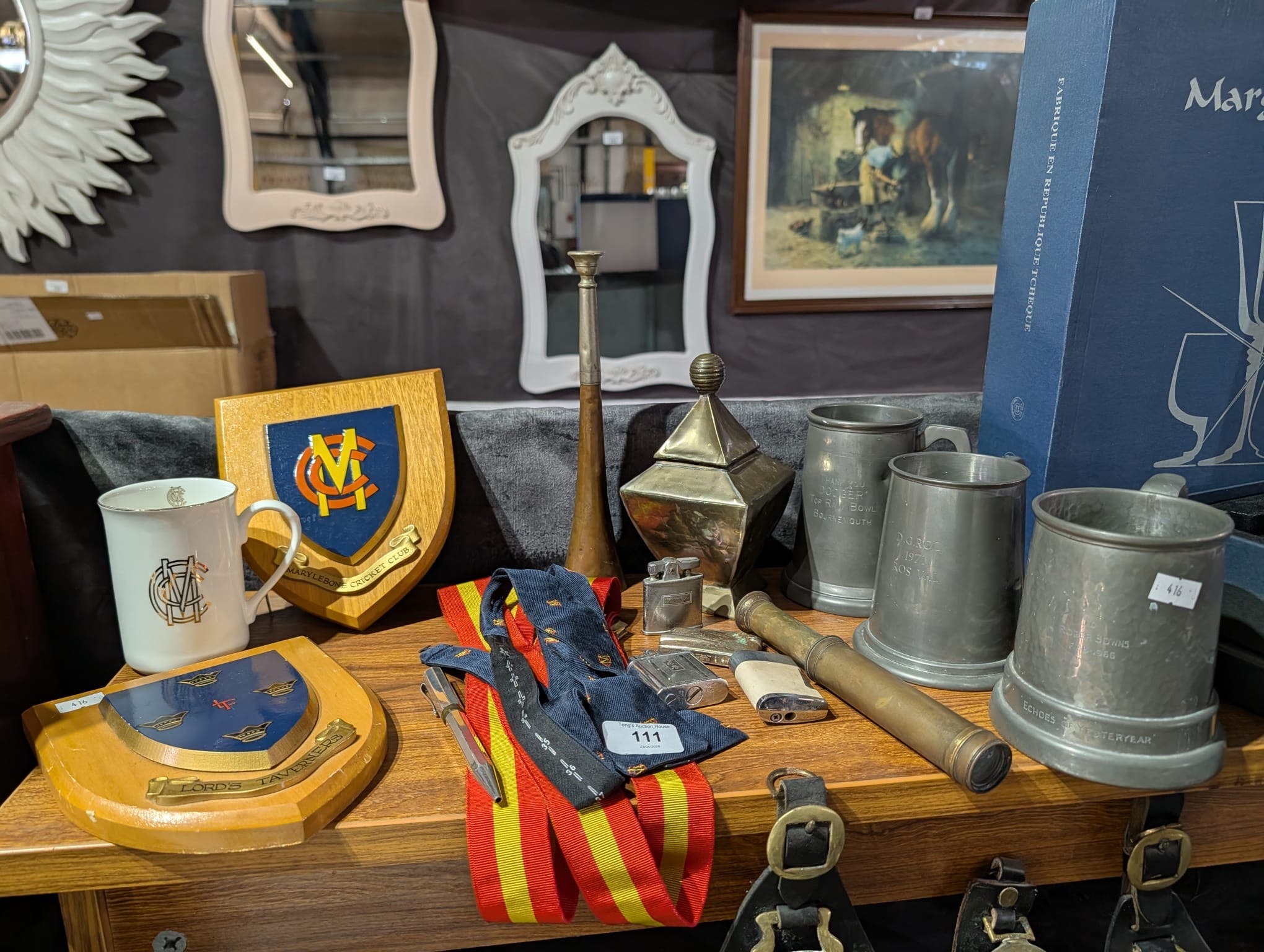 Mixed lot to include Pewter Tankards heraldic shields for Marylebone and Lord Taveners Cricket club etc