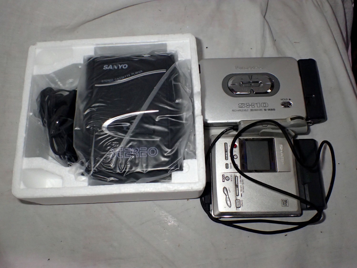 A Sharp minidisc walkman and two portable cassette players, a Panasonic and a boxed Sanyo. UK P&P Group 2 (£24+VAT for the first lot and £5+VAT for subsequent lots)