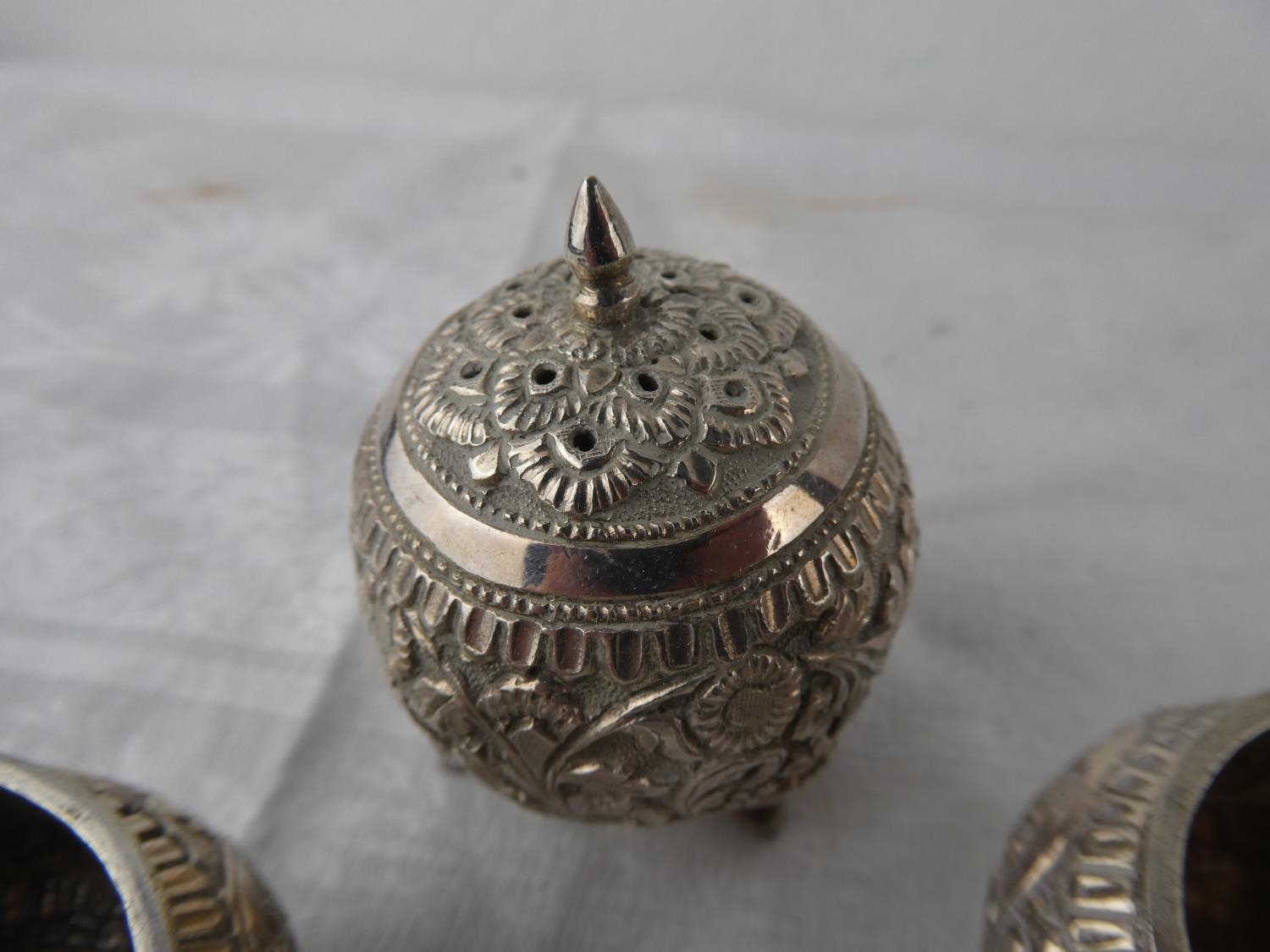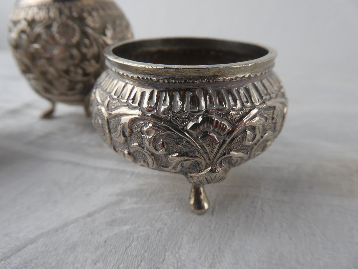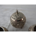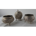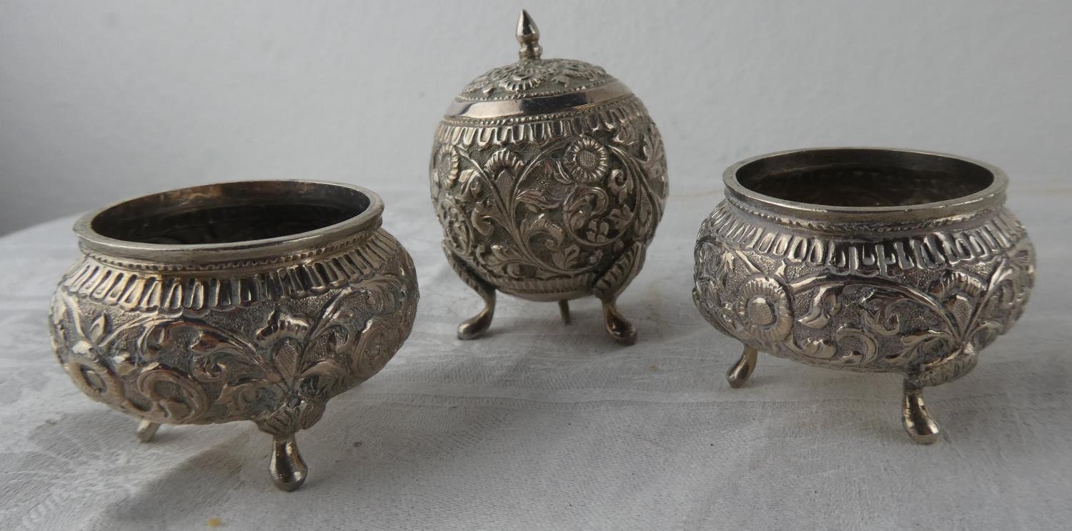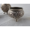A stunning antique three piece Indian Silver condiment set.