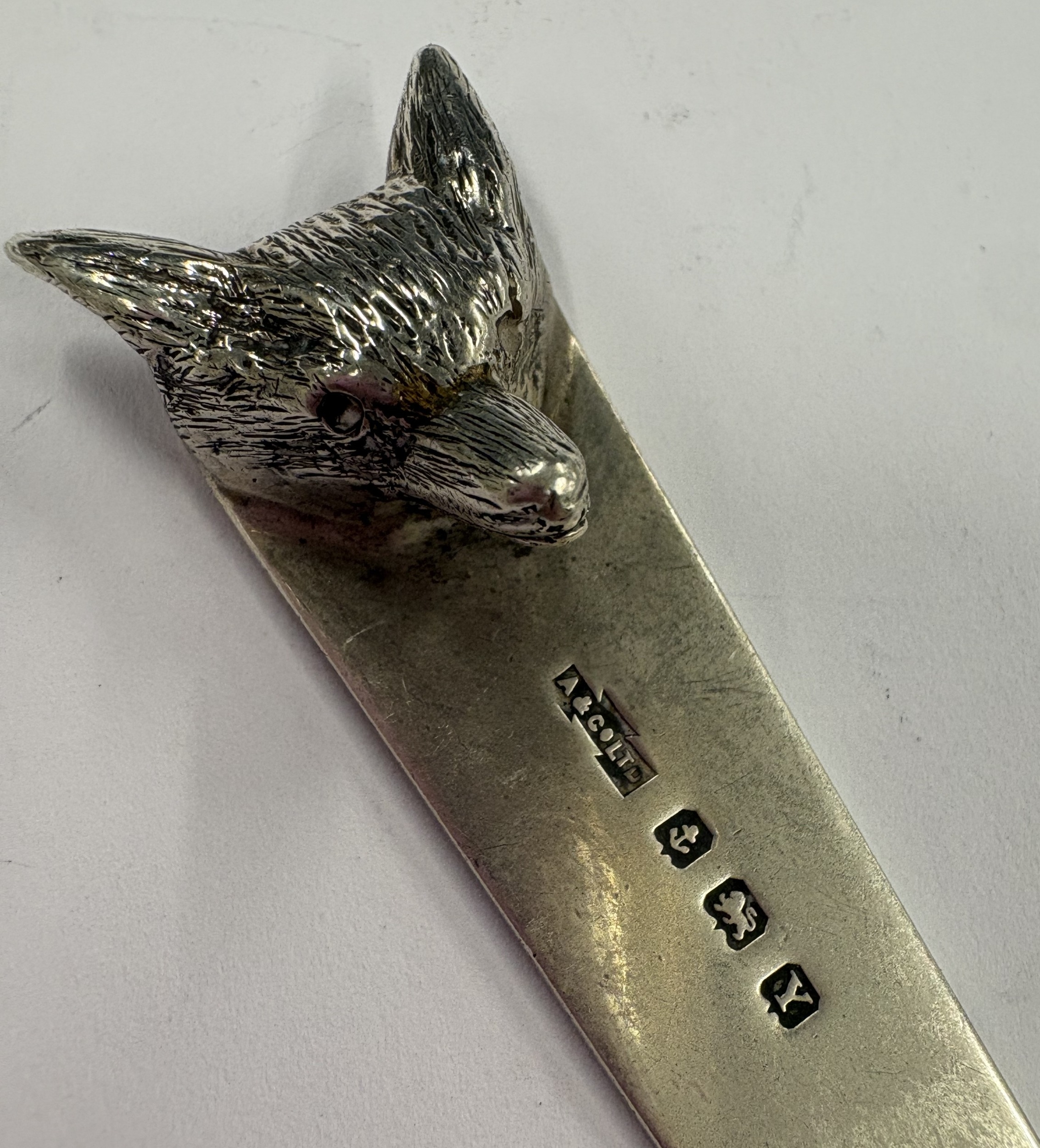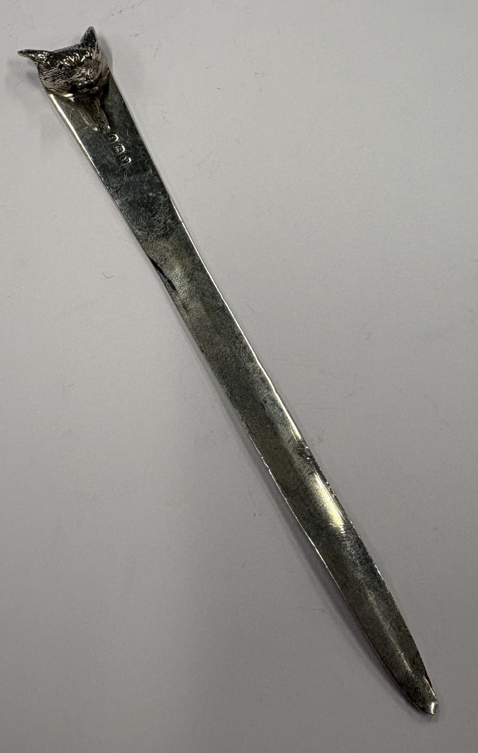 ASPREY & CO: A silver letter opener cast with a fox. Birmingham 1948. Approx. 30 grams. Est. £130 - £150.