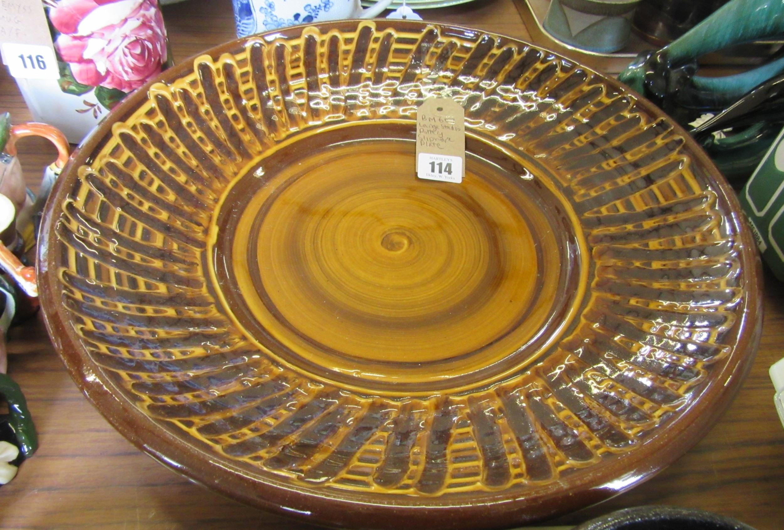 LARGE STUDIO POTTERY SLIPWARE PLATE