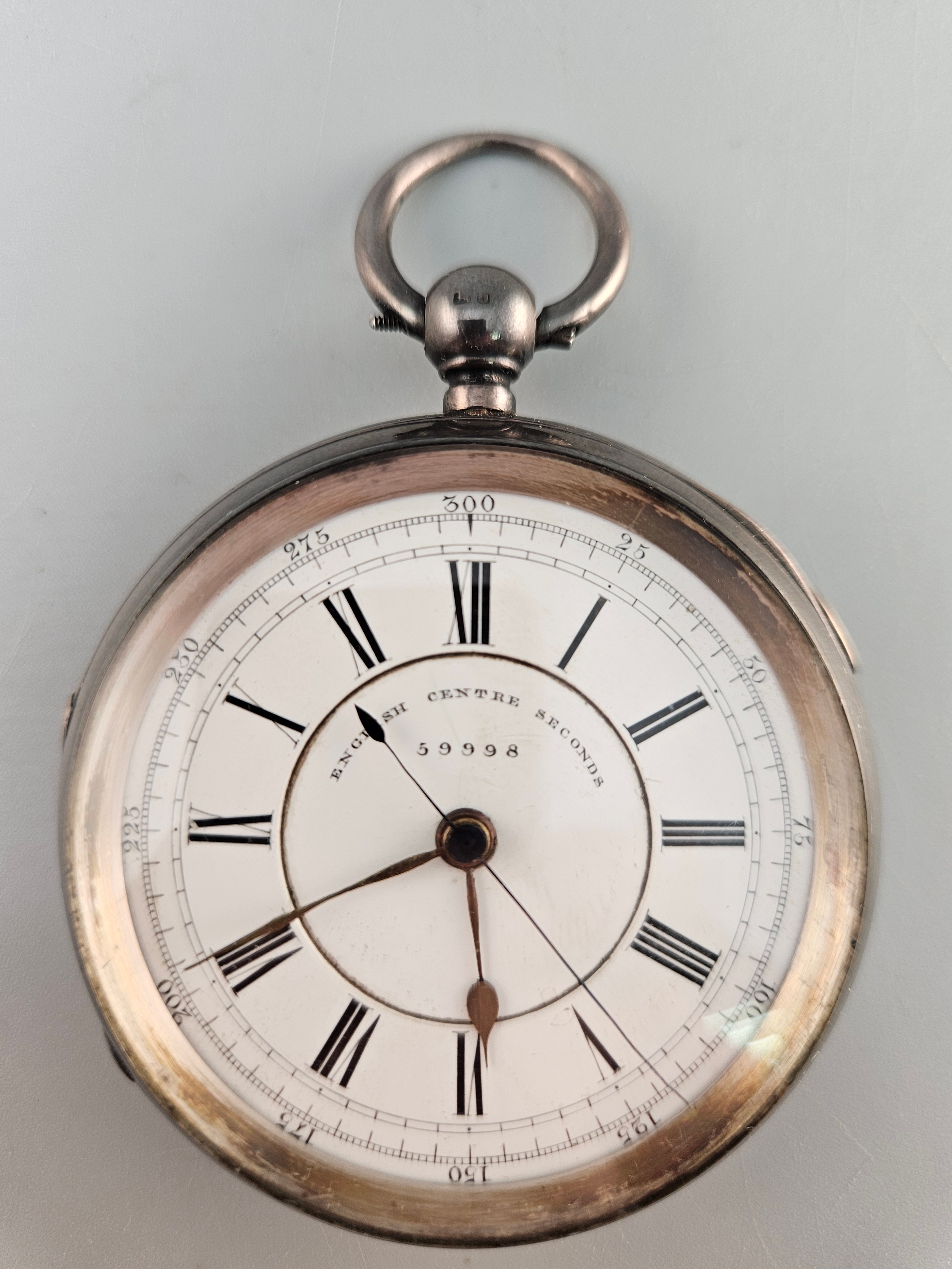 Victorian 1880s Centre Seconds Silver Pocket Watch