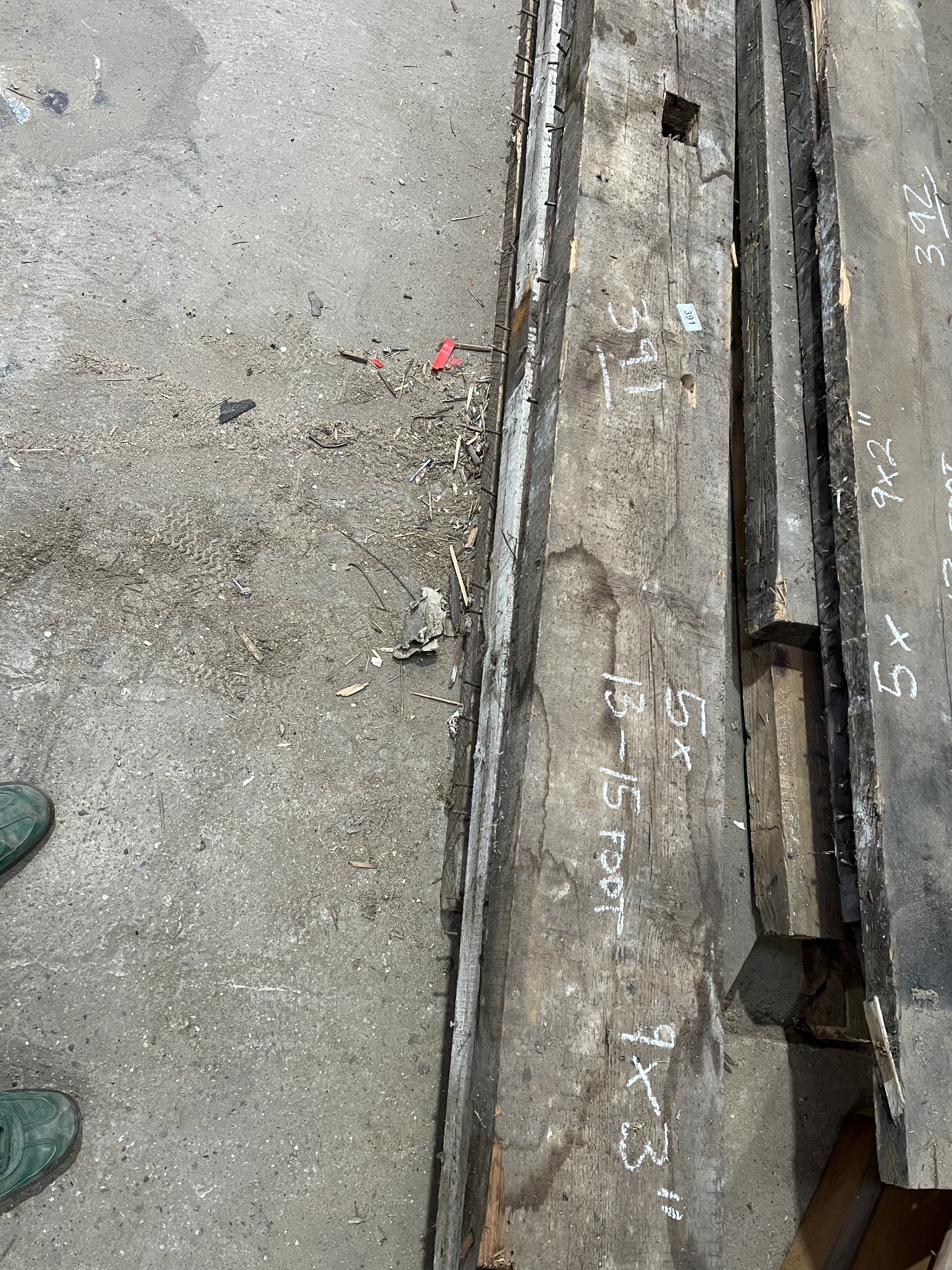 PLEASE SEE PICTURES BUNDLE OF 5 RECLAIMED ROOF BEAMS MEASURING 13-15FT LONG 9X3"