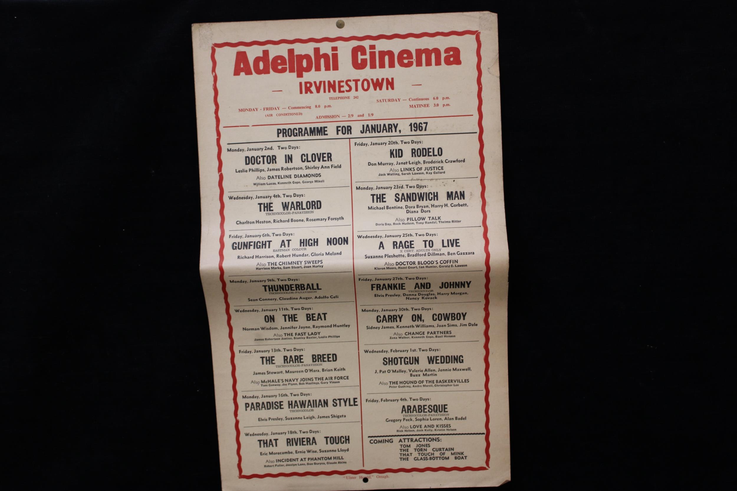 An Adelphi Cinema, Irvinestown poster - January 1967
