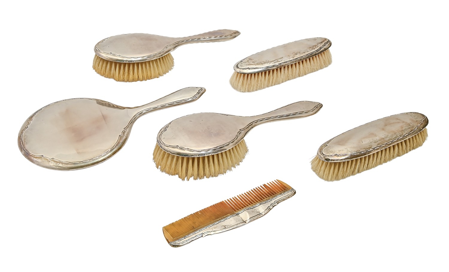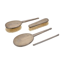 A George V silver brush set, marks rubbed, Chester 1926, cased