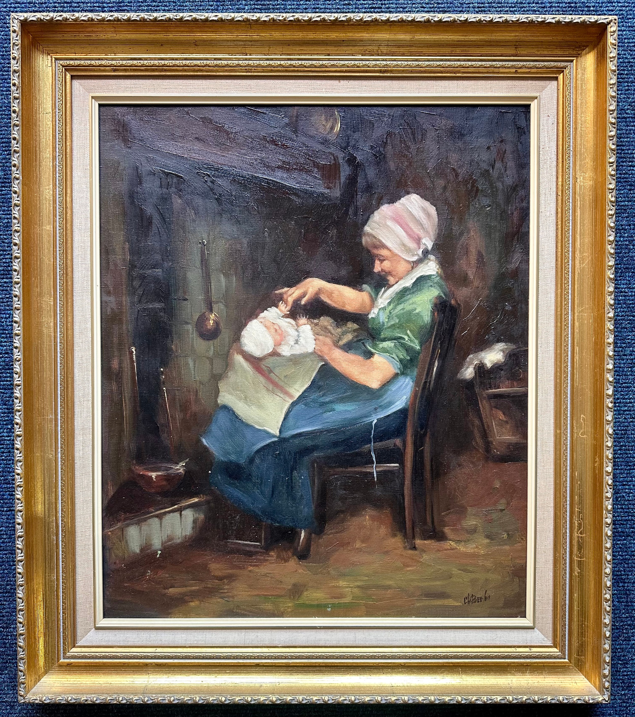 LOUIS VAN DER BEESEN OIL ON CANVAS ENTITLED THE NURSE, approx. 52 x 62 cm