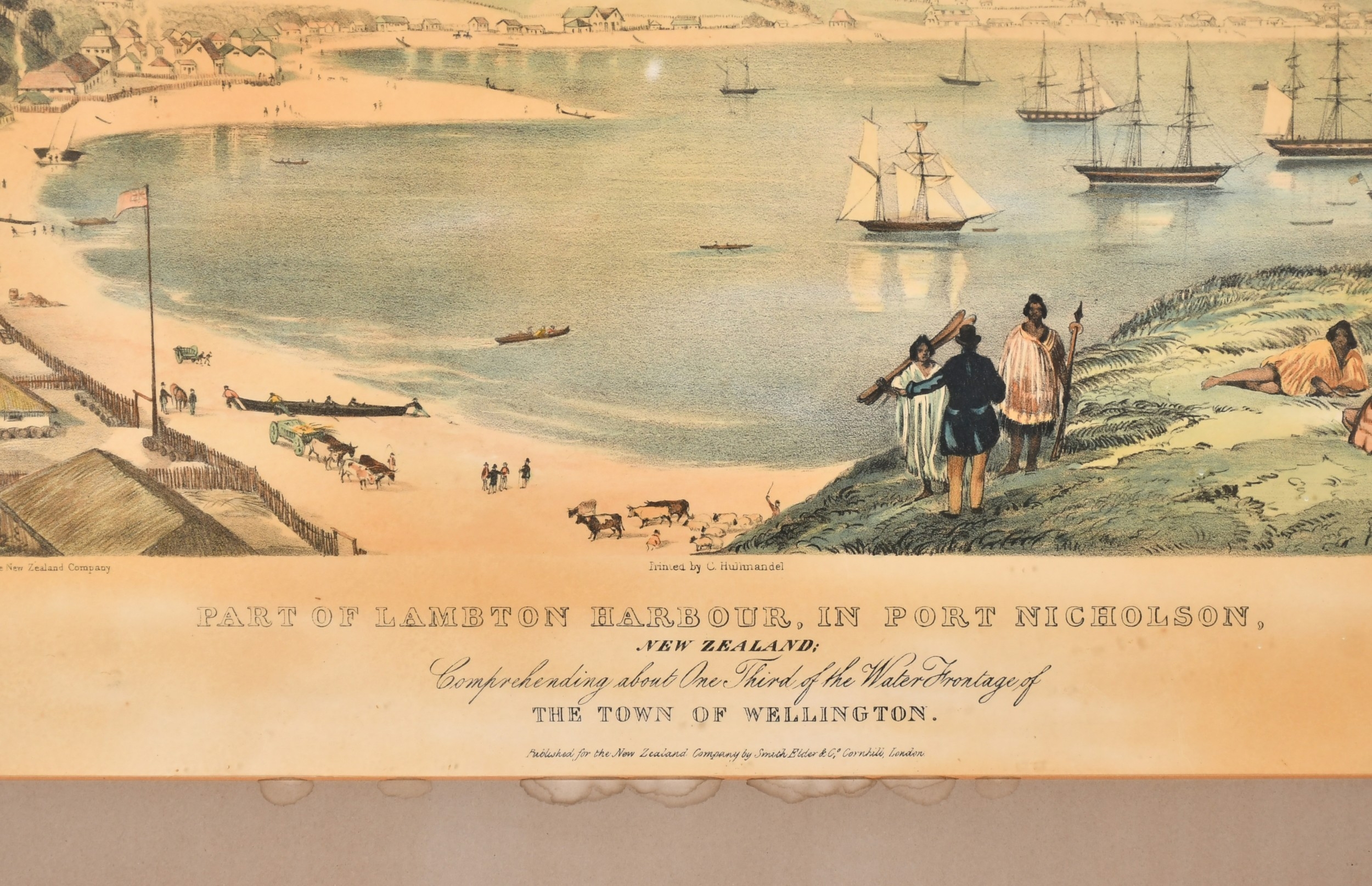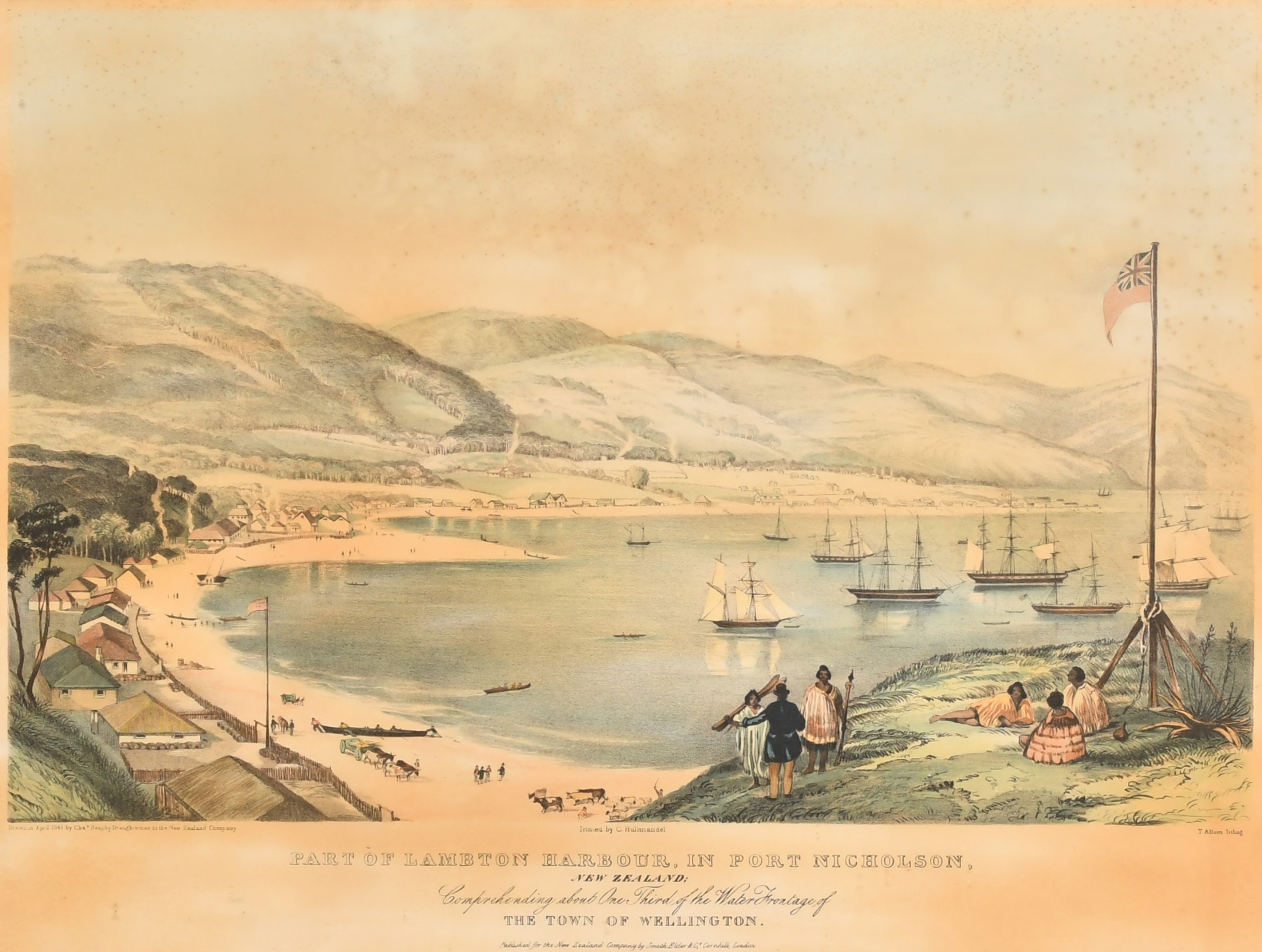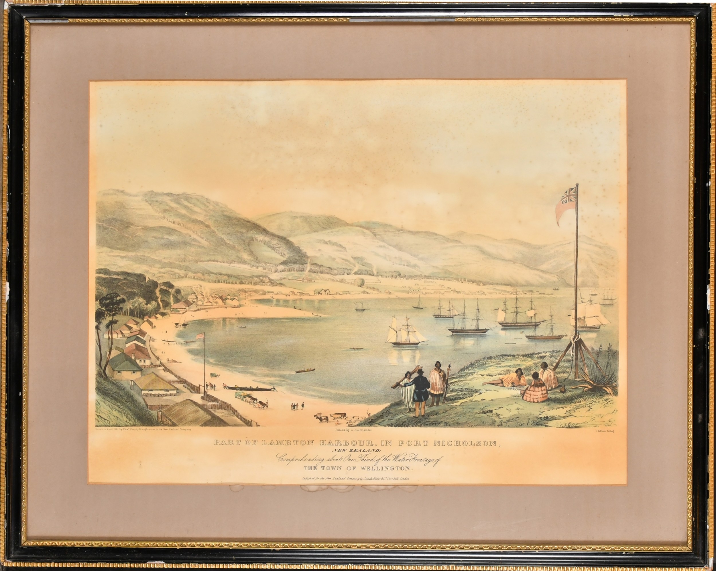 After Charles Heaphy (1820-1881) British/New Zealander. "Part of Lambton Harbour, In Port Nicholson, New Zealand", Lithograph after T Allom, Overall 17" x 21" (43.2 x 53.3cm). Note: An explorer, Heaphy was the first soldier of the New Zealand armed forces to be awarded a Victoria Cross for gallantry