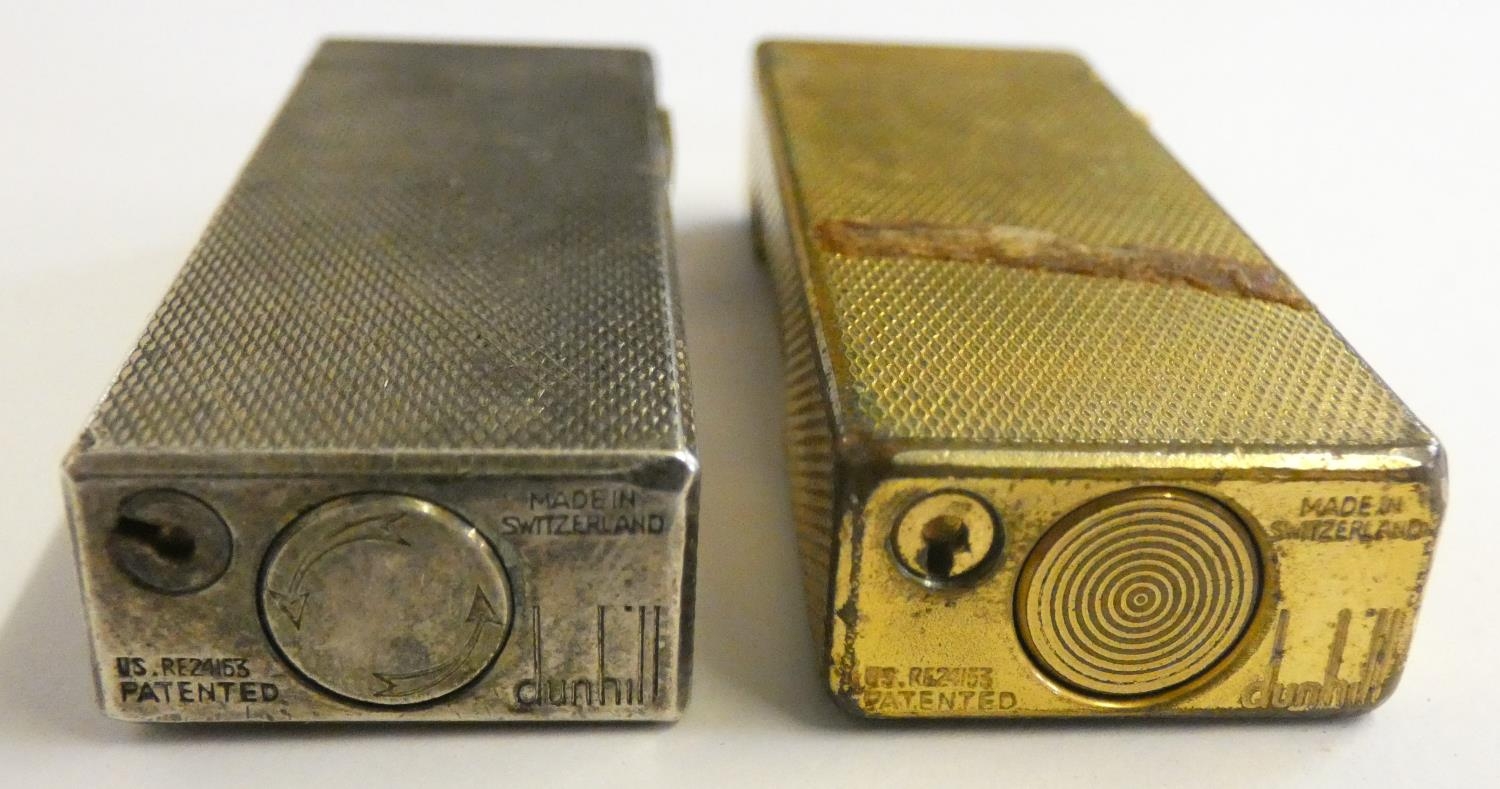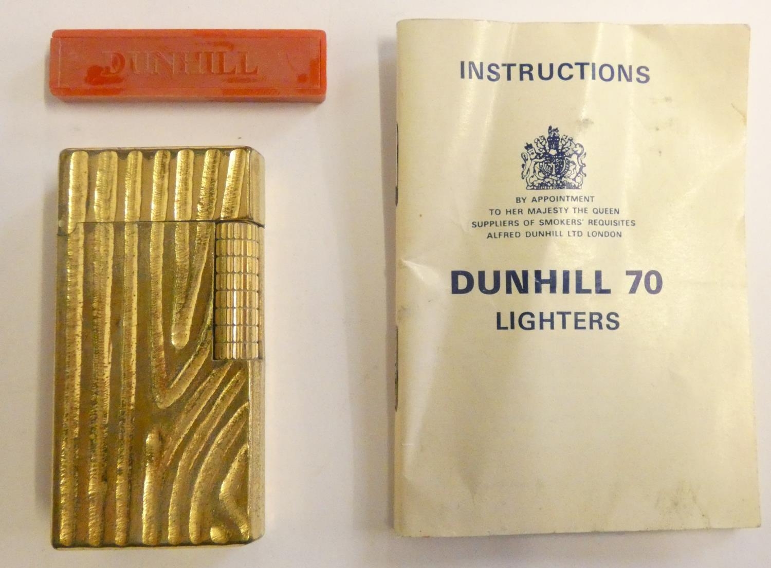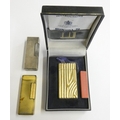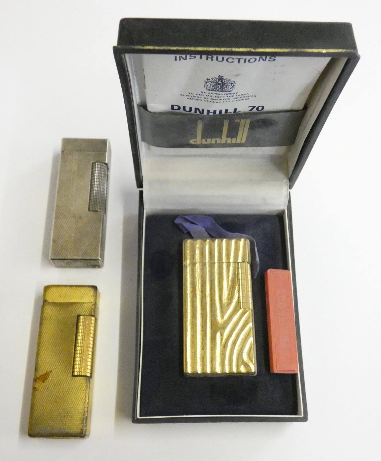 A Dunhill 70 cigarette lighter, case, paperwork, another cased Dunhill lighter and a third, uncased.