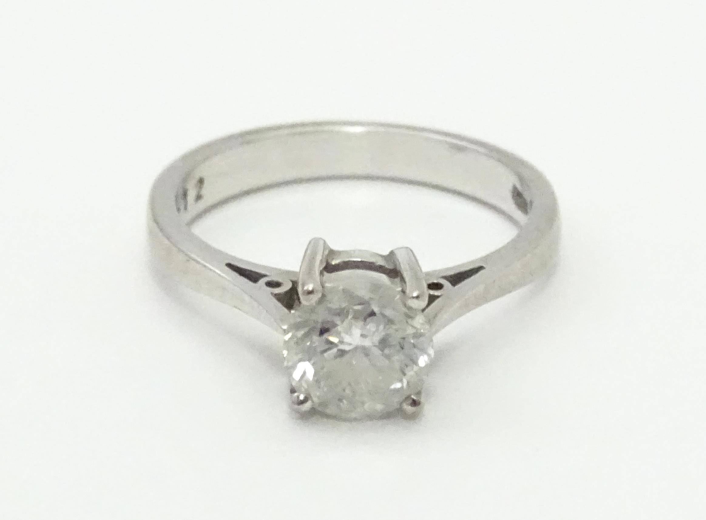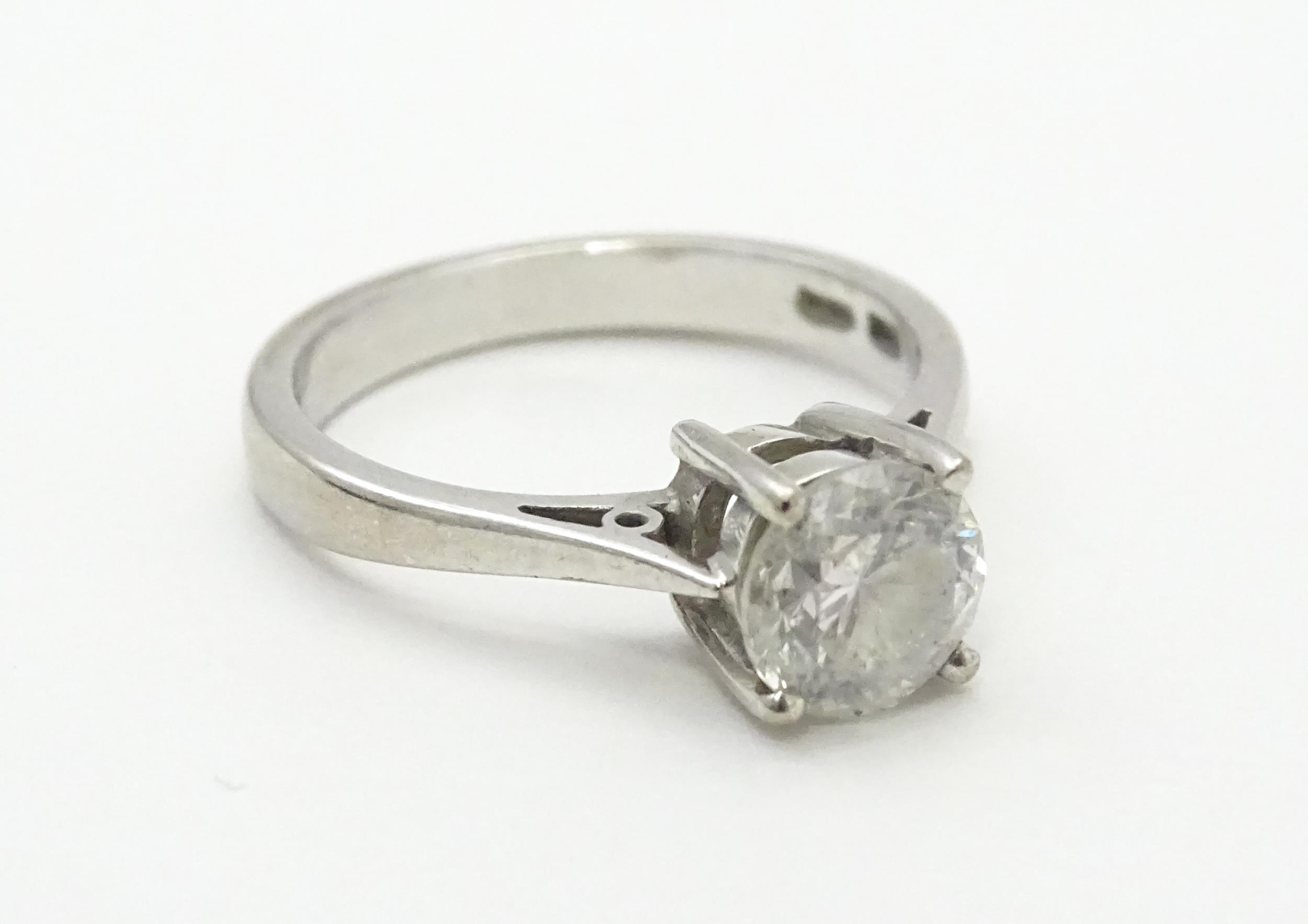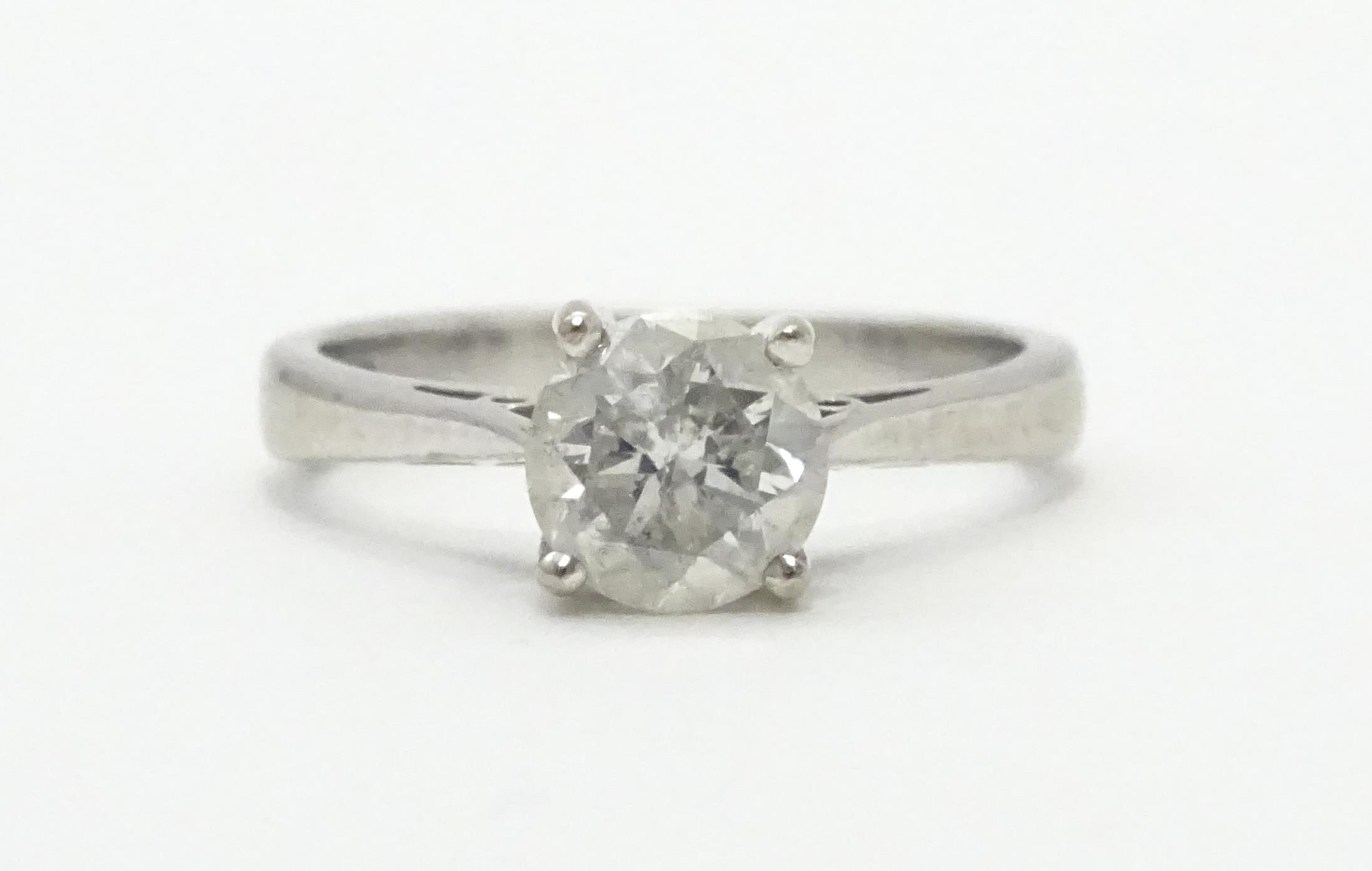 An 18ct white gold diamond solitaire ring . Ring size approx. J. Diamond approx. 1.12ct