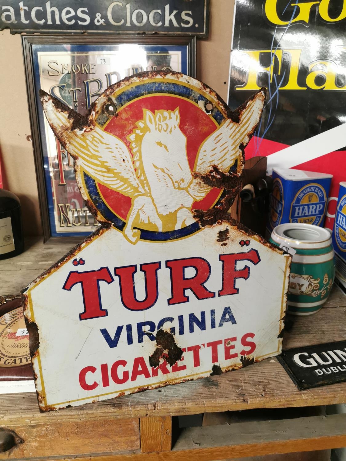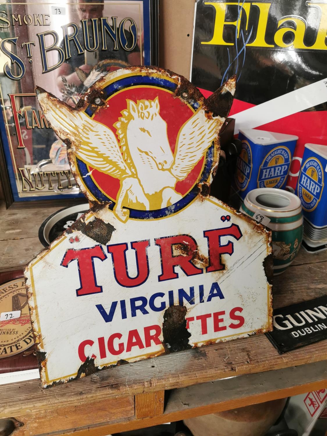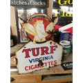 Turf Virginia Cigarettes double sided enamel advertising sign {52 cm H x 45 cm W}.