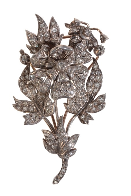 AN ANTIQUE DIAMOND FLOWER BROOCH