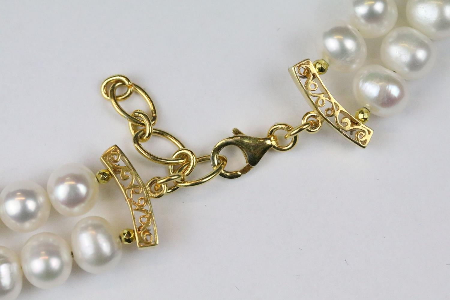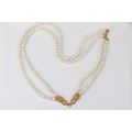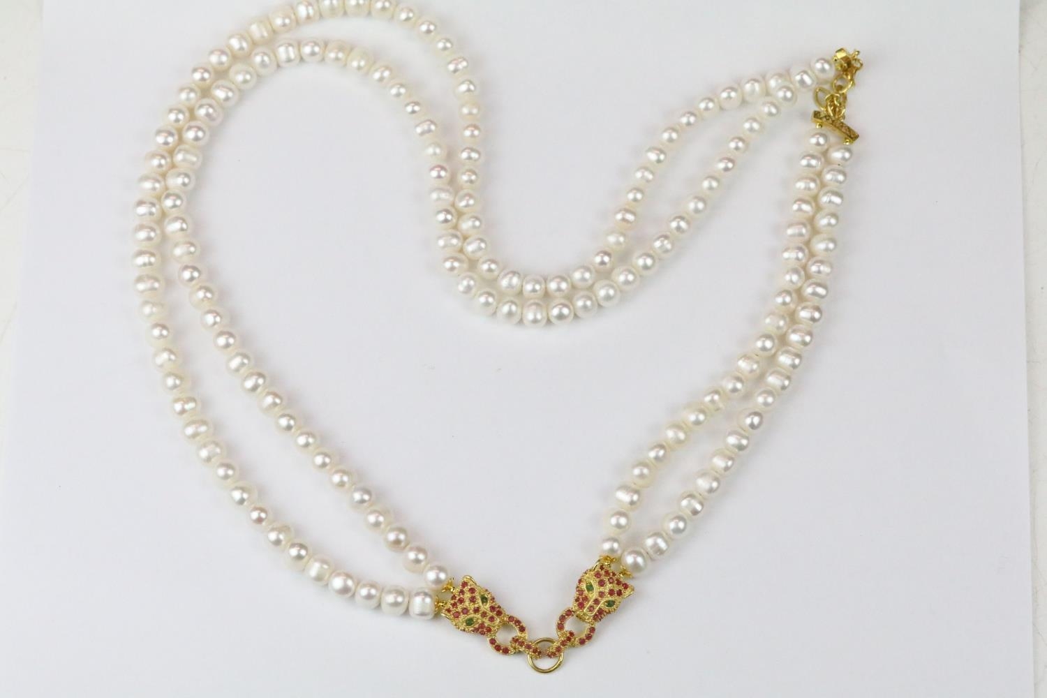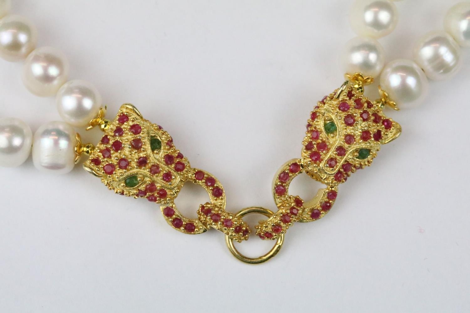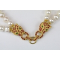 Double row of fresh water pearls with panther head clasp set with rubies