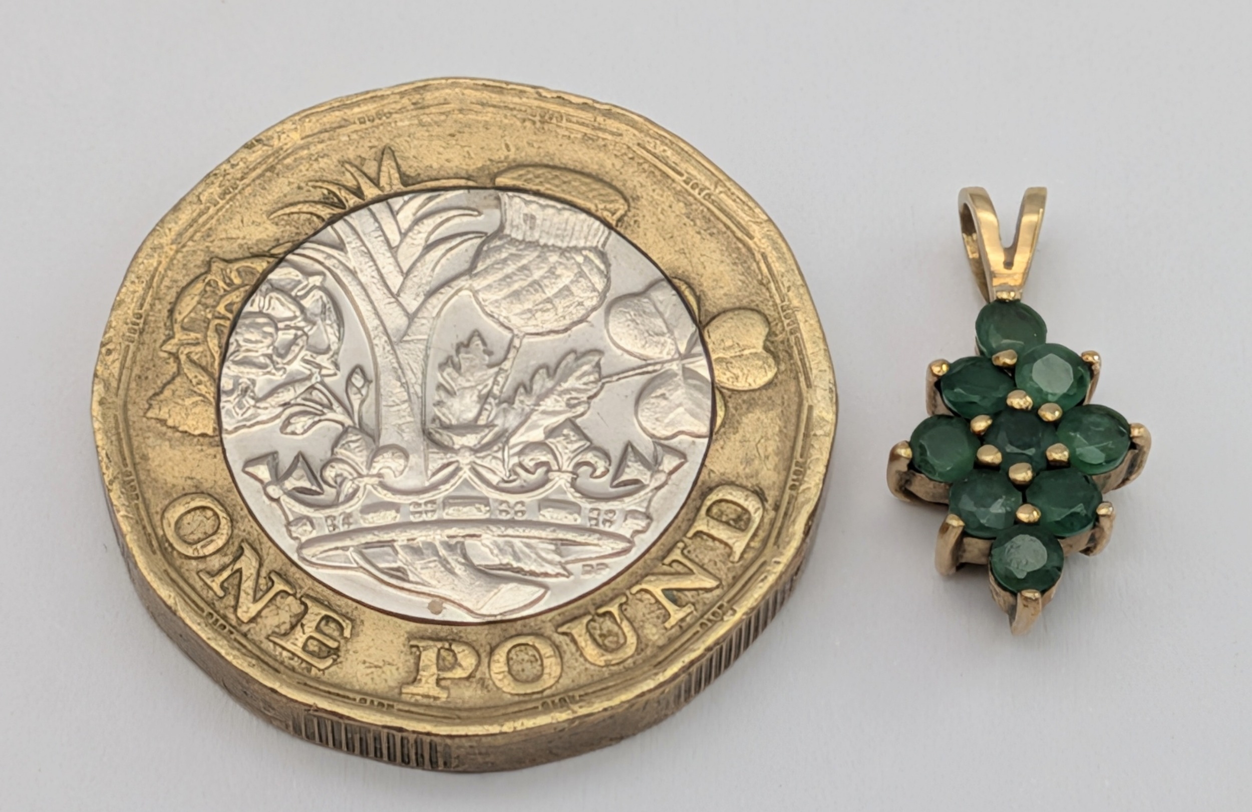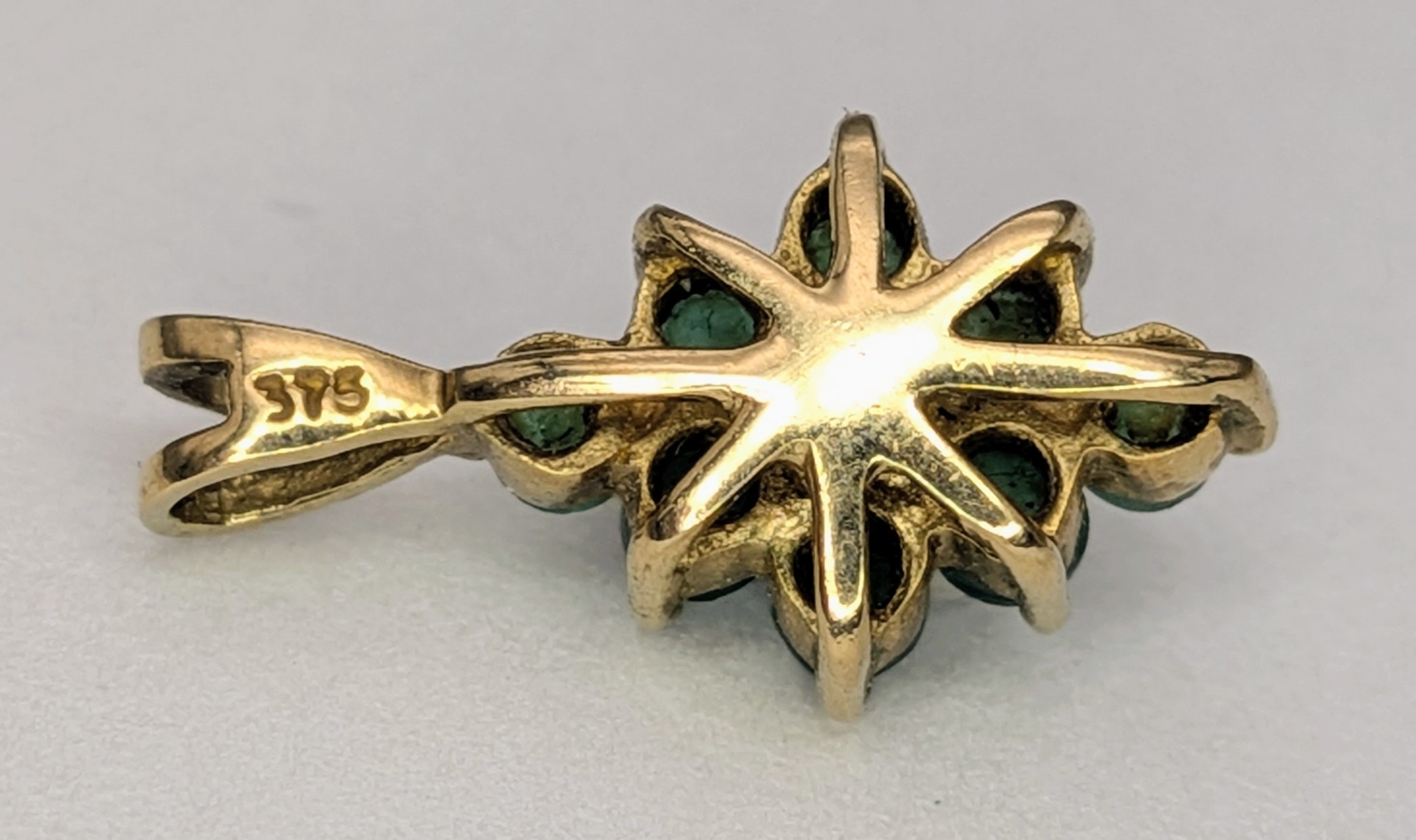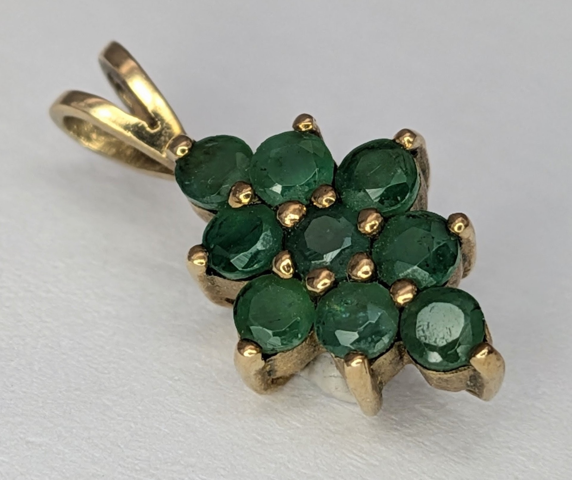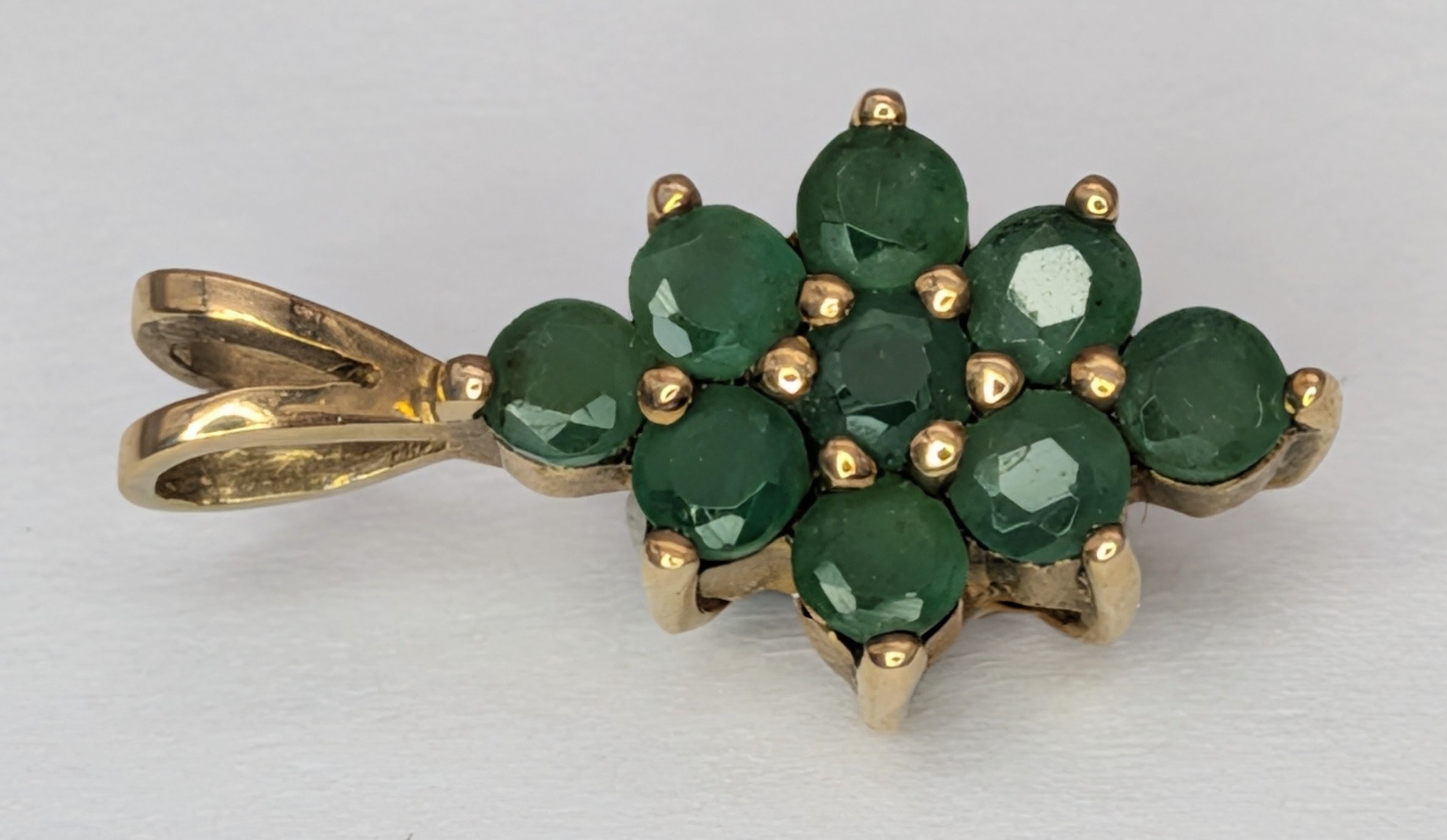 An Elegant 9K Yellow Gold and Emerald Cluster Pendant. 1.5cm...