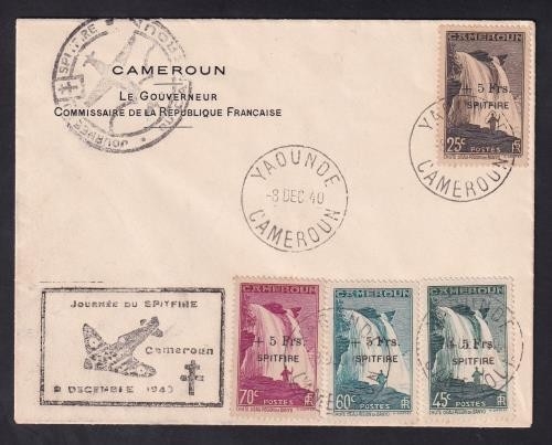 Spitfire fund ovpt set of four SG187/190 fu on Govt envelope cancelled at Yaoune, special Spitfire cachet. Fine & scarce.