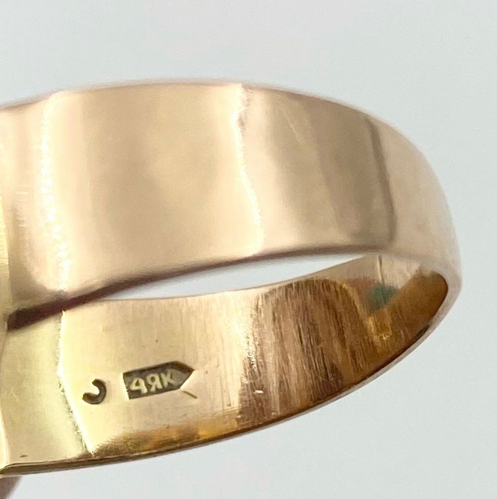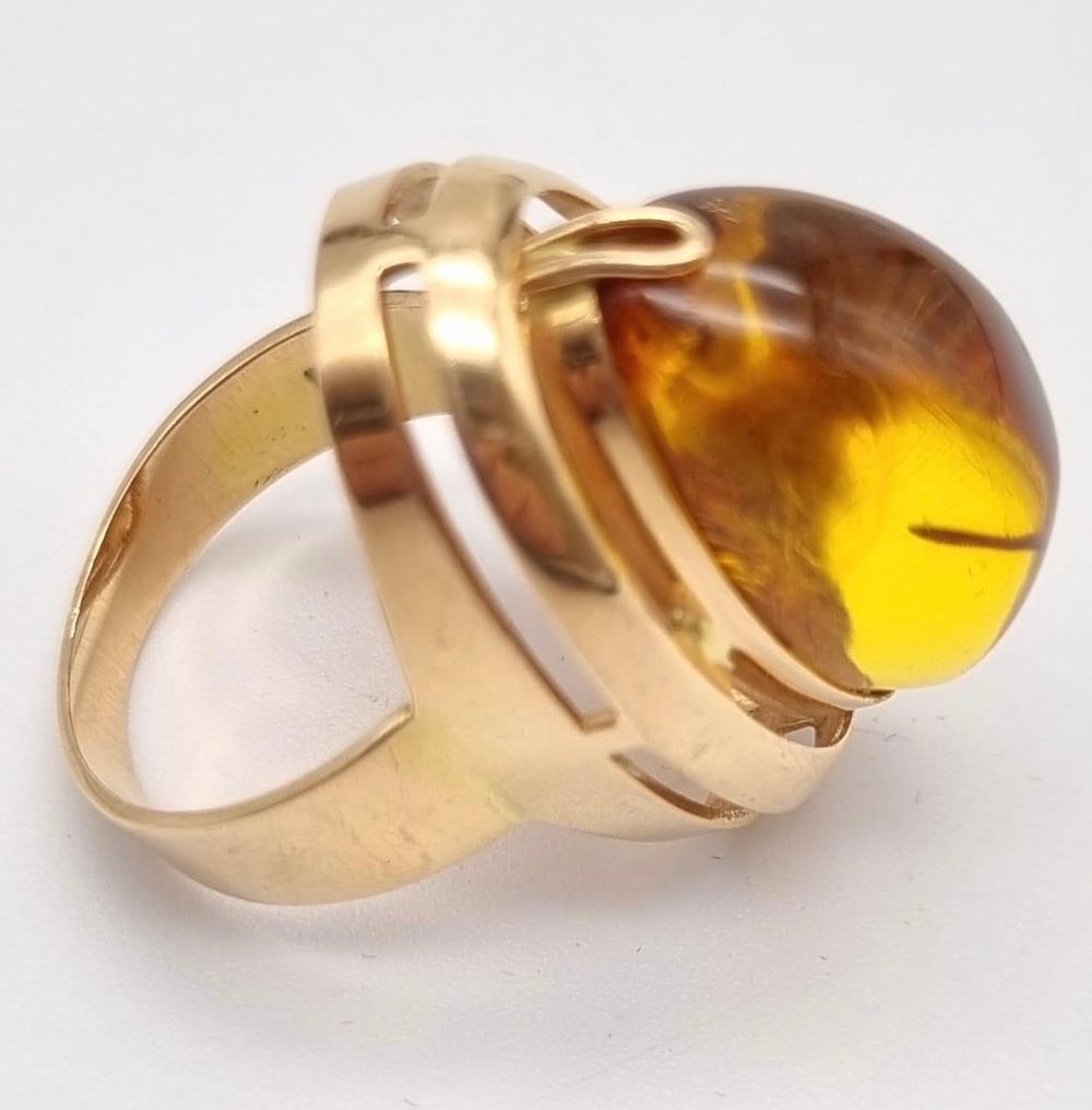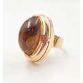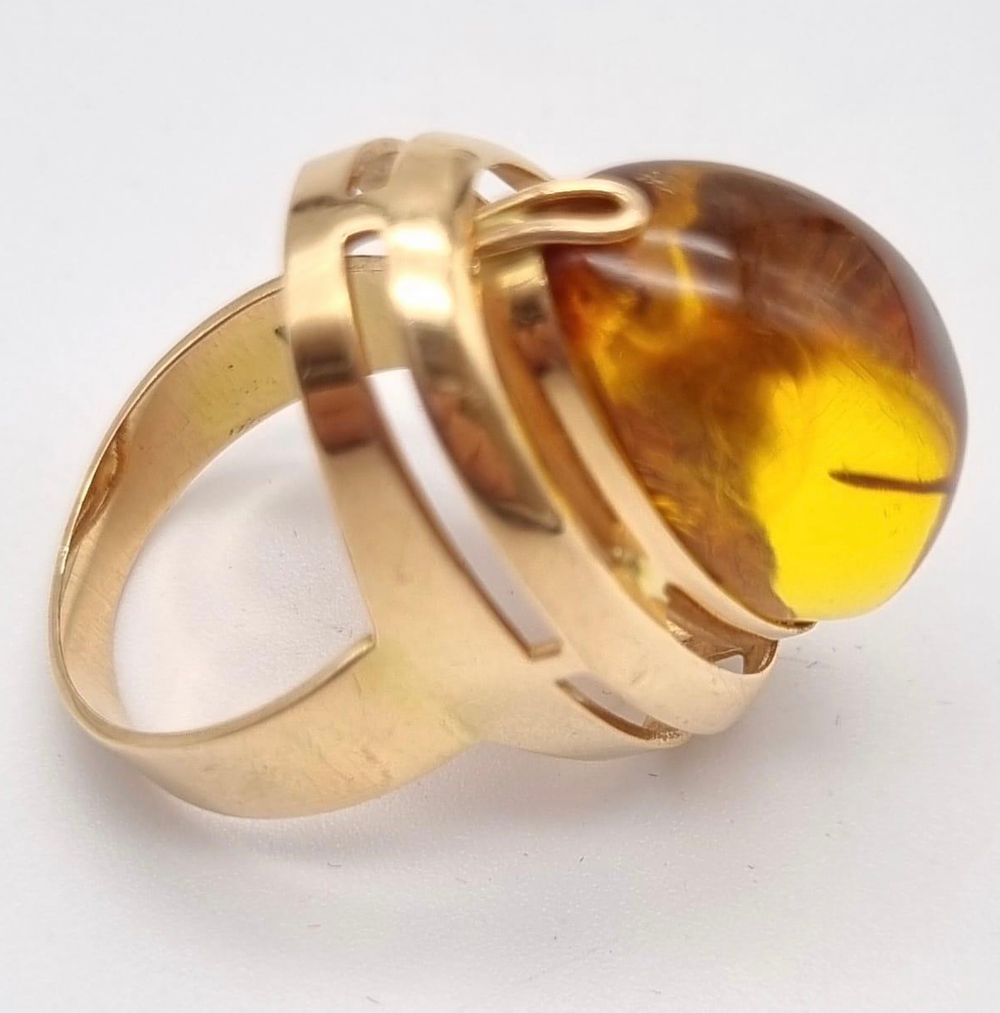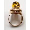 A LARGE AMBER STONE SET IN RING HAND CRAFTED IN 14K ROSE GOLD. 7.2gms size M