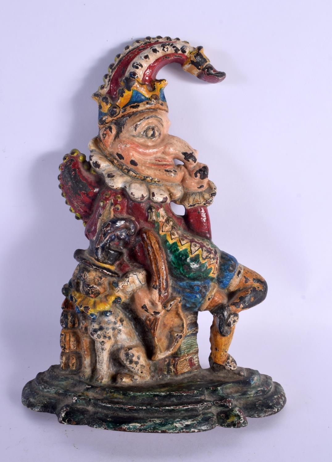 A VICTORIAN COLD PAINTED CAST IRON PUNCH DOOR STOP. 31 cm x 19 cm.