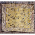 An early Chinese textile panels, fine needle point dragons and clouds in golden silk.
