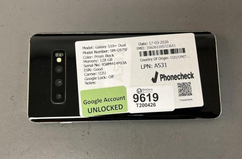 X1SAMSUNG GALAXY S10+ DUAL/ SM-G975F/ PRISM BLACK/ 128GB/ GOOGLE LOCKED/ IMEI: 356261105723611