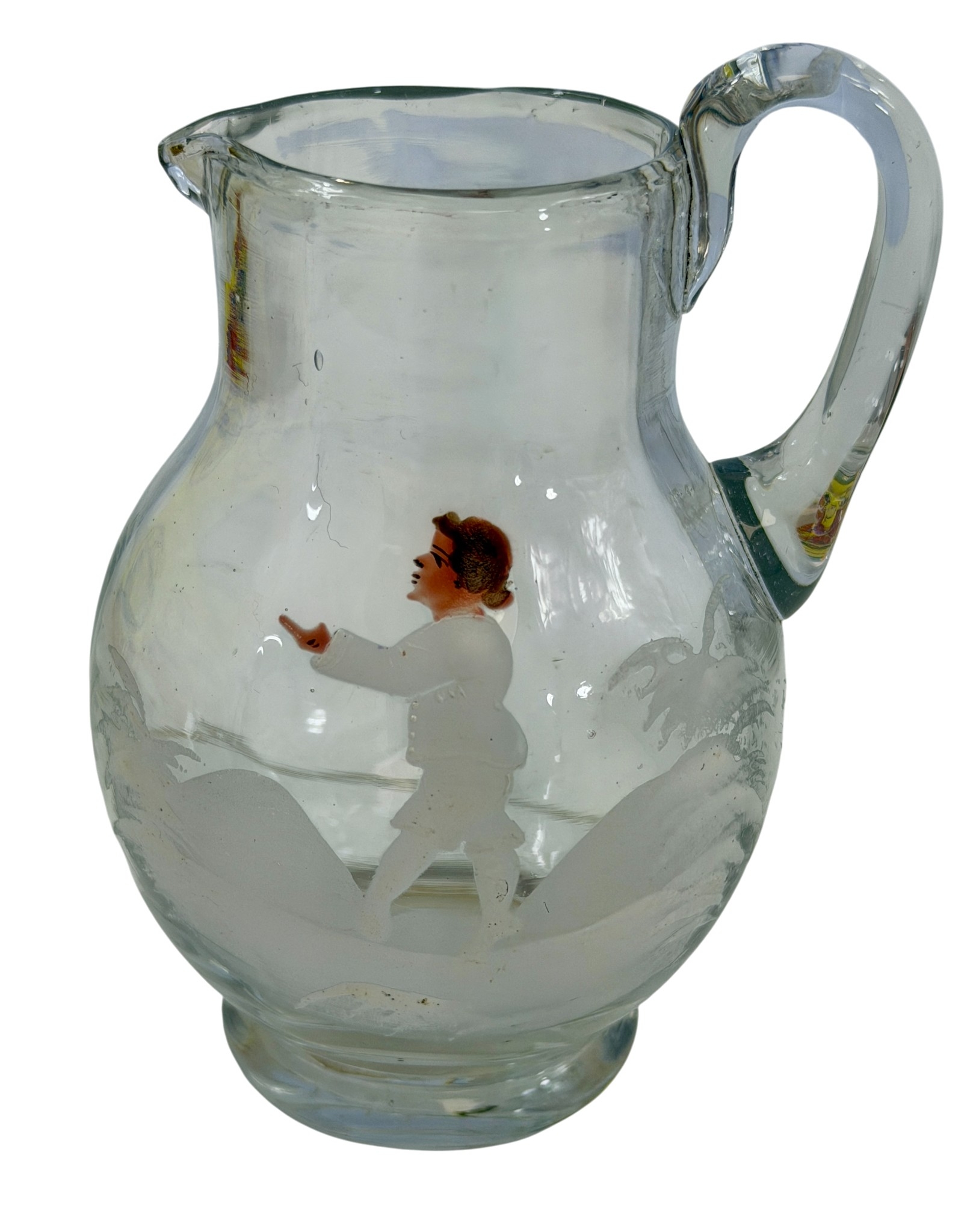Mary Gregory Jug with a hand painted figure. Beautiful decorative piece, good overall condition consistent with age. No chips or cracks, pontil mark to the base circa 1900's