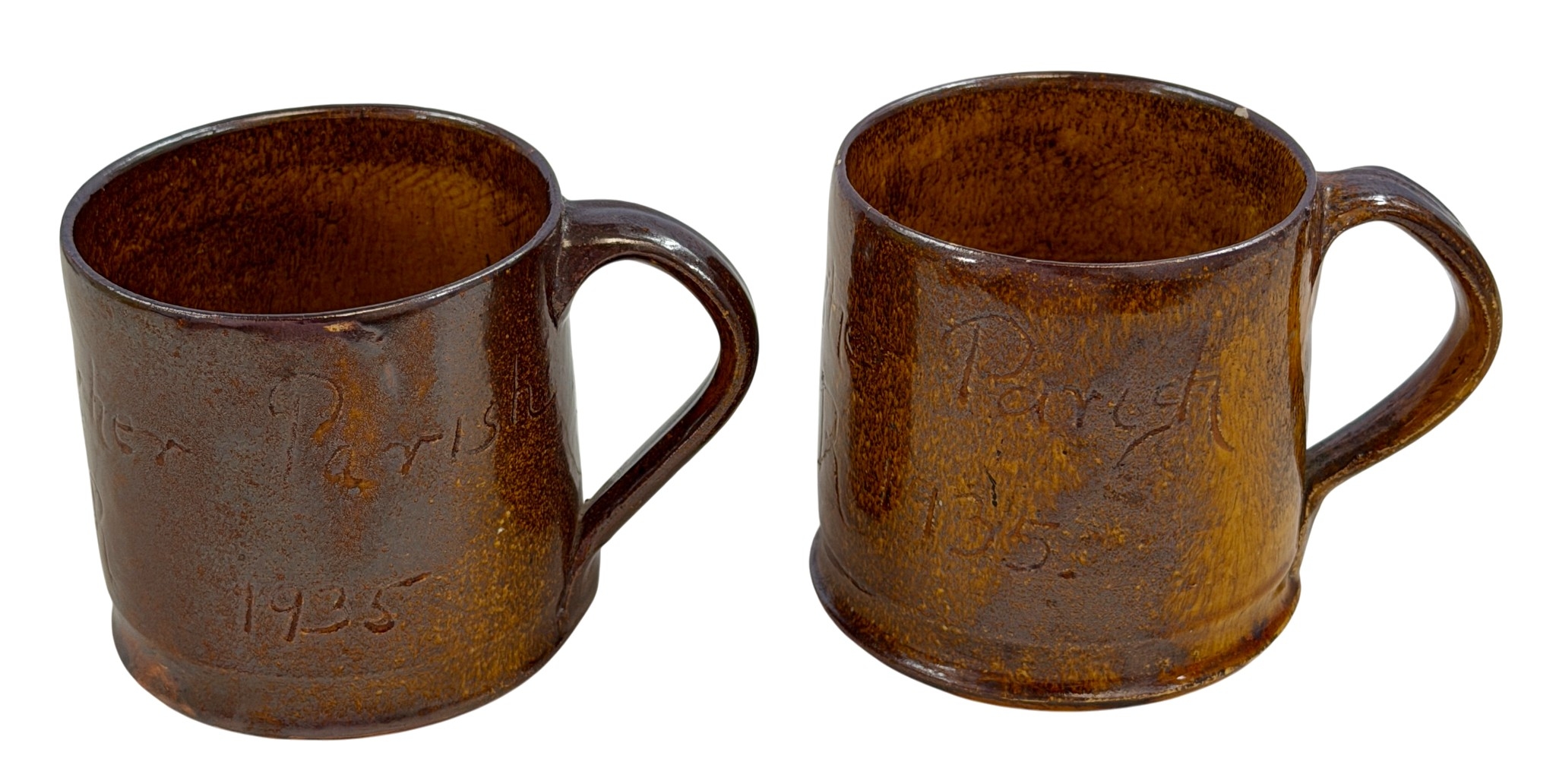 2 x stoneware mugs by Ewenny Pollery, George V Jubilee 1935