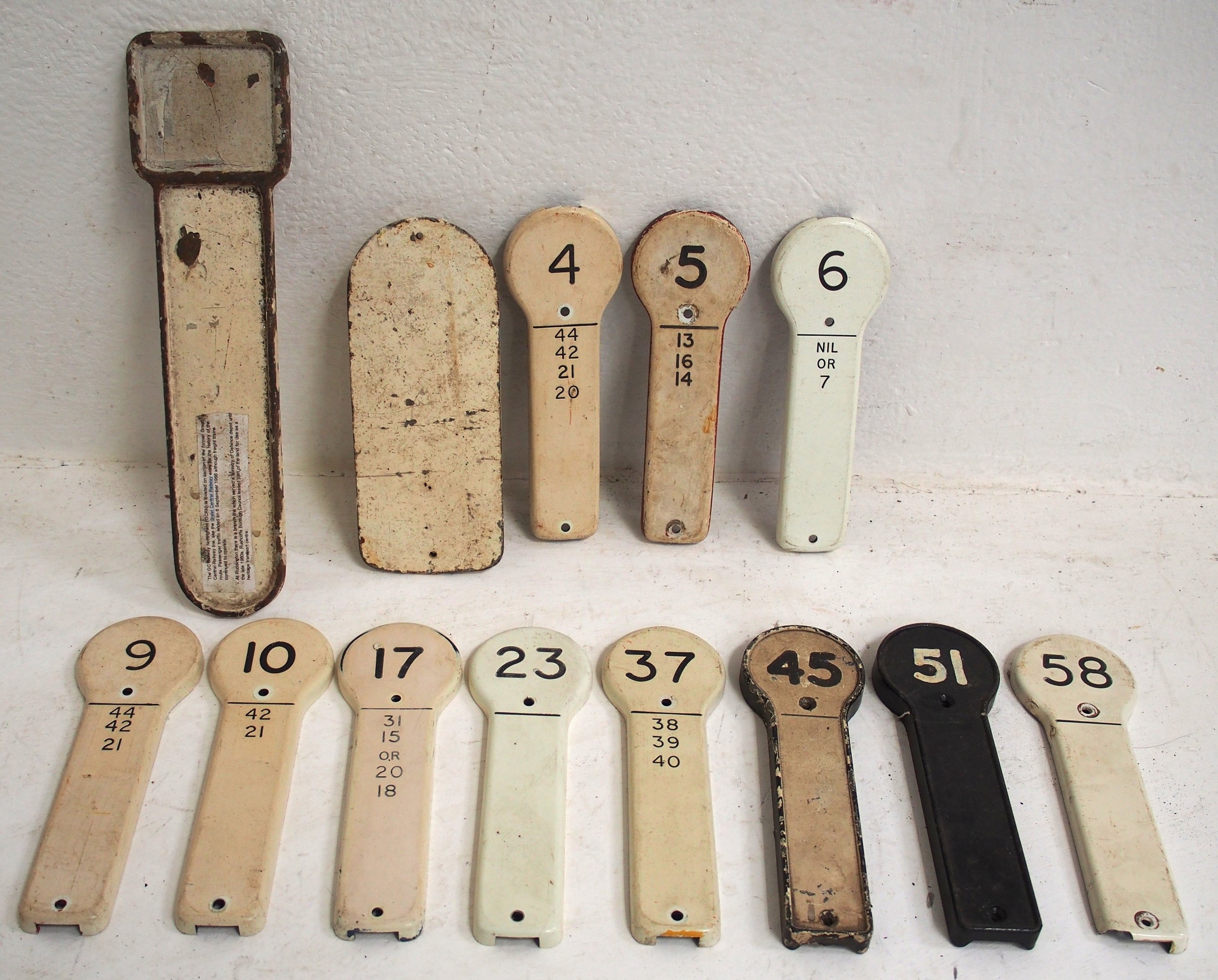 Selection of signal box lever plates, BR(M) plastic, C/I GC London Extension etc as per image. (13) (C3X) (Dispatch by Mailboxes/Collect from Banbury Depot)