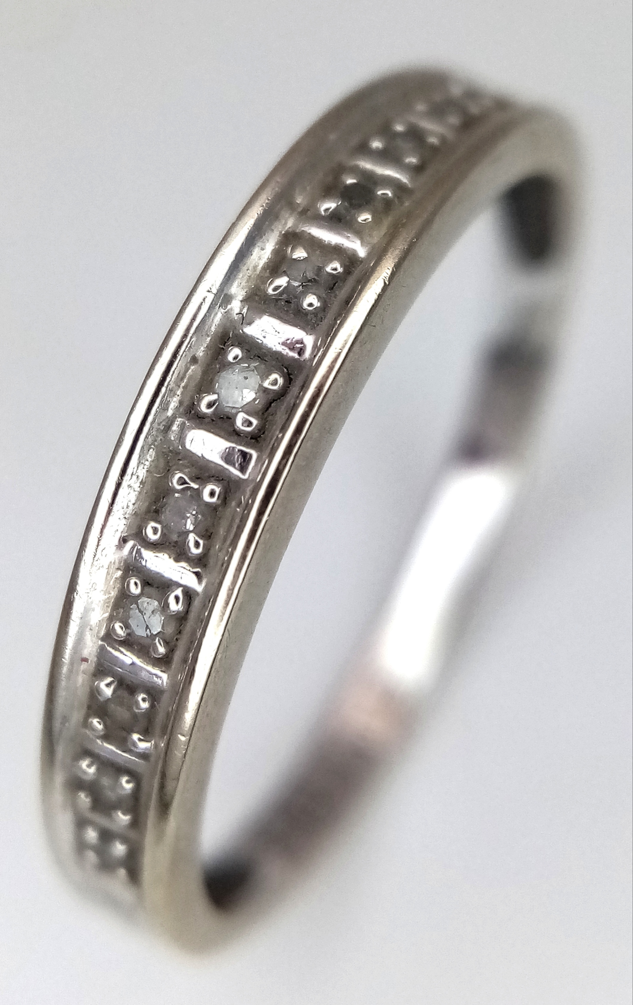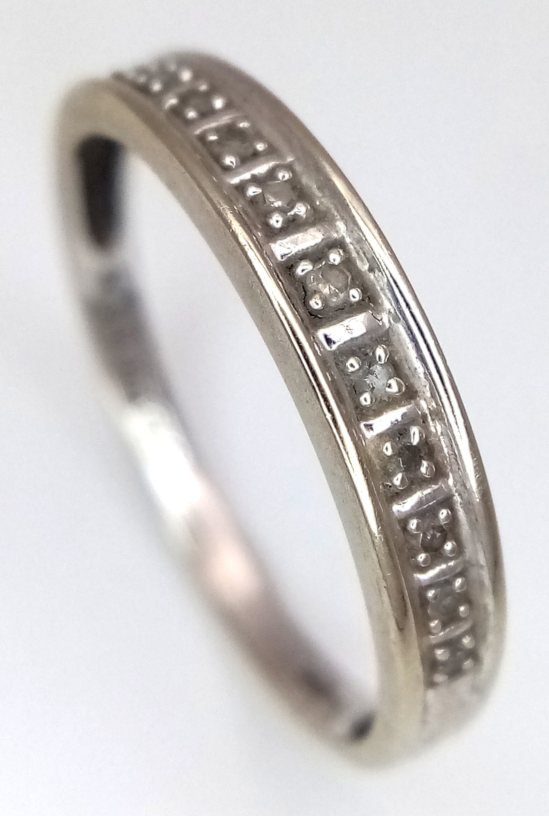 Fully hallmarked 9 CARAT WHITE GOLD and DIAMOND RING . 1.47 grams. Size N - N 1/2. Please see pictures.