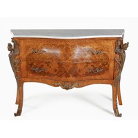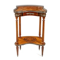 A LOUIS XV STYLE WALNUT, INLAID AND GILT-METAL MOUNTED CONSOLE TABLE