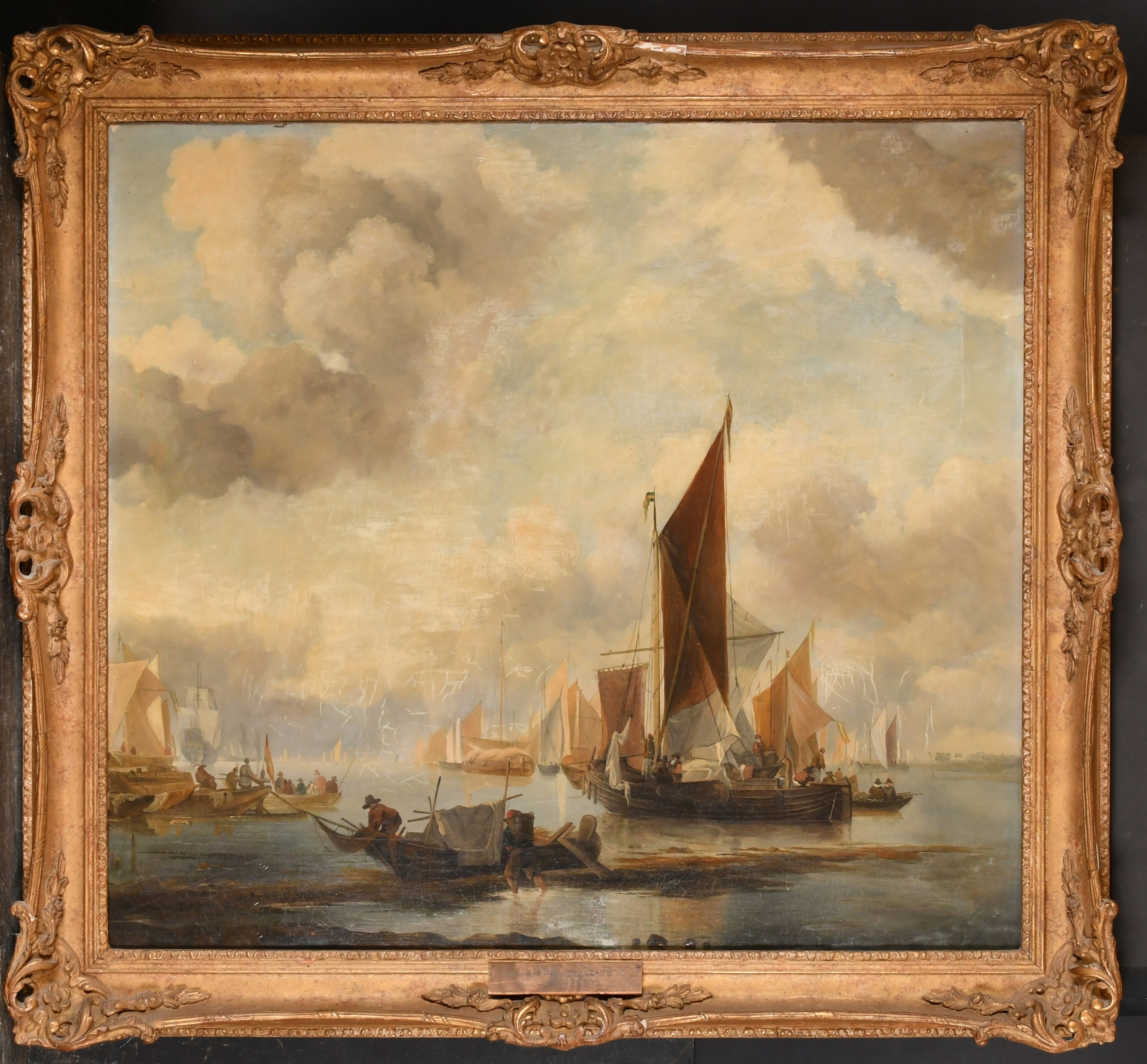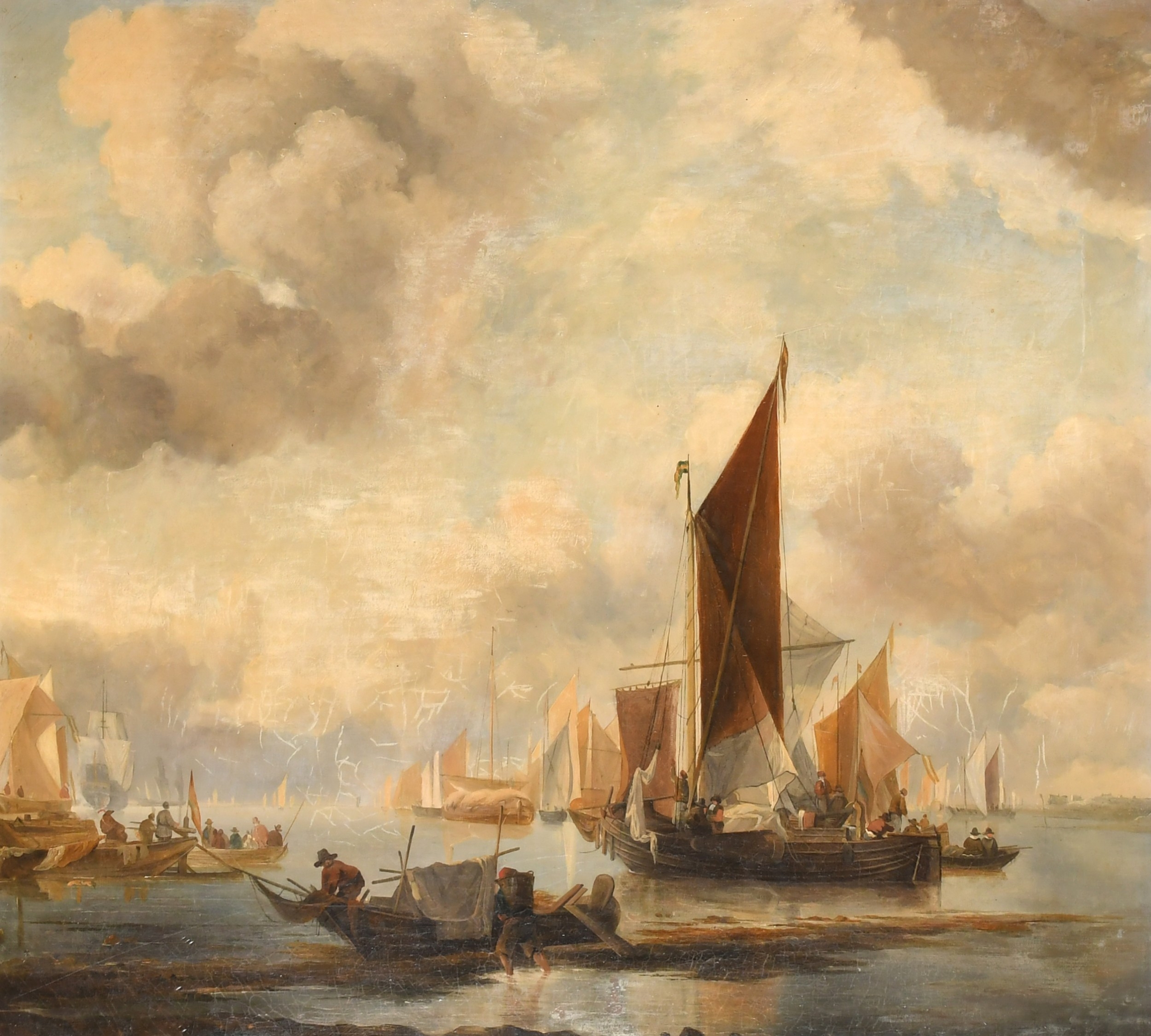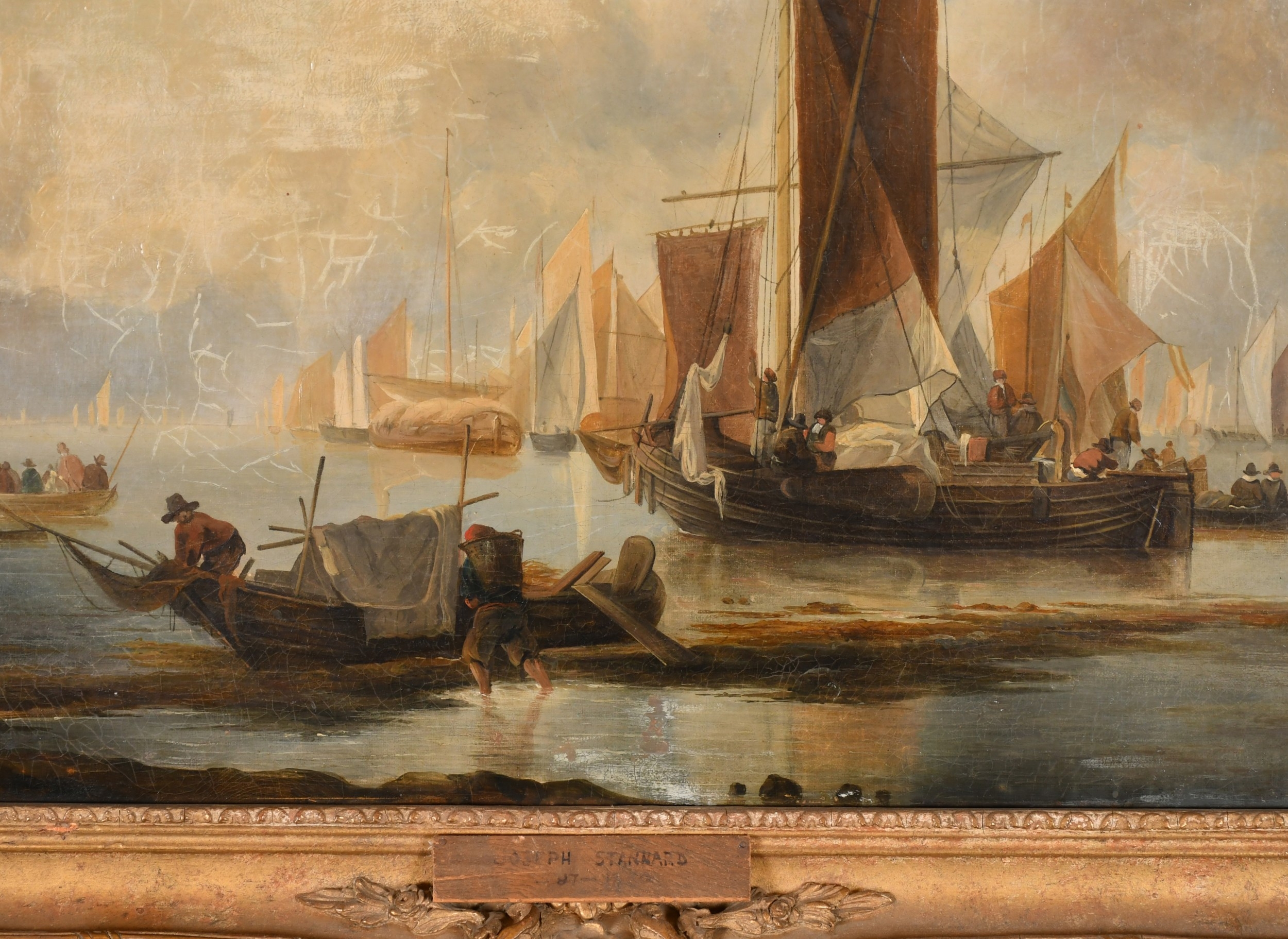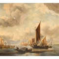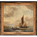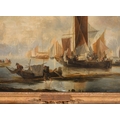 Joseph Stannard (1797-1830) British. "A Busy Fishing Port", Oil on canvas, Inscribed on a label verso, 23.5" x 26" (59.7 x 66cm). Provenance: Frost & Reed