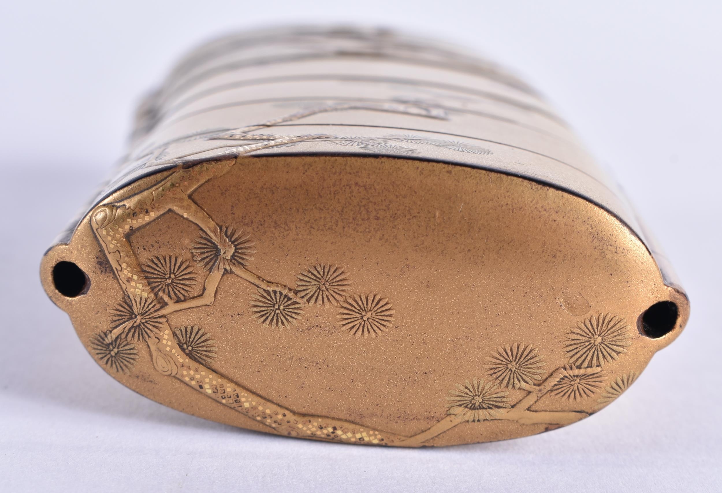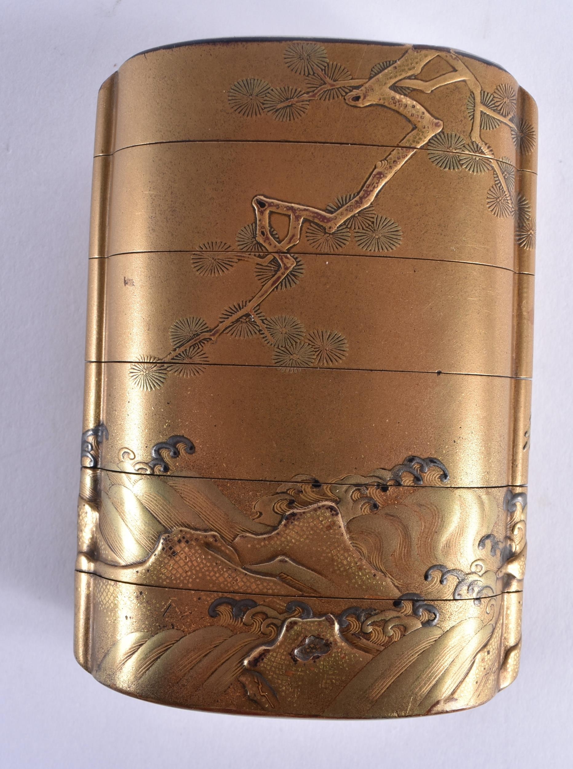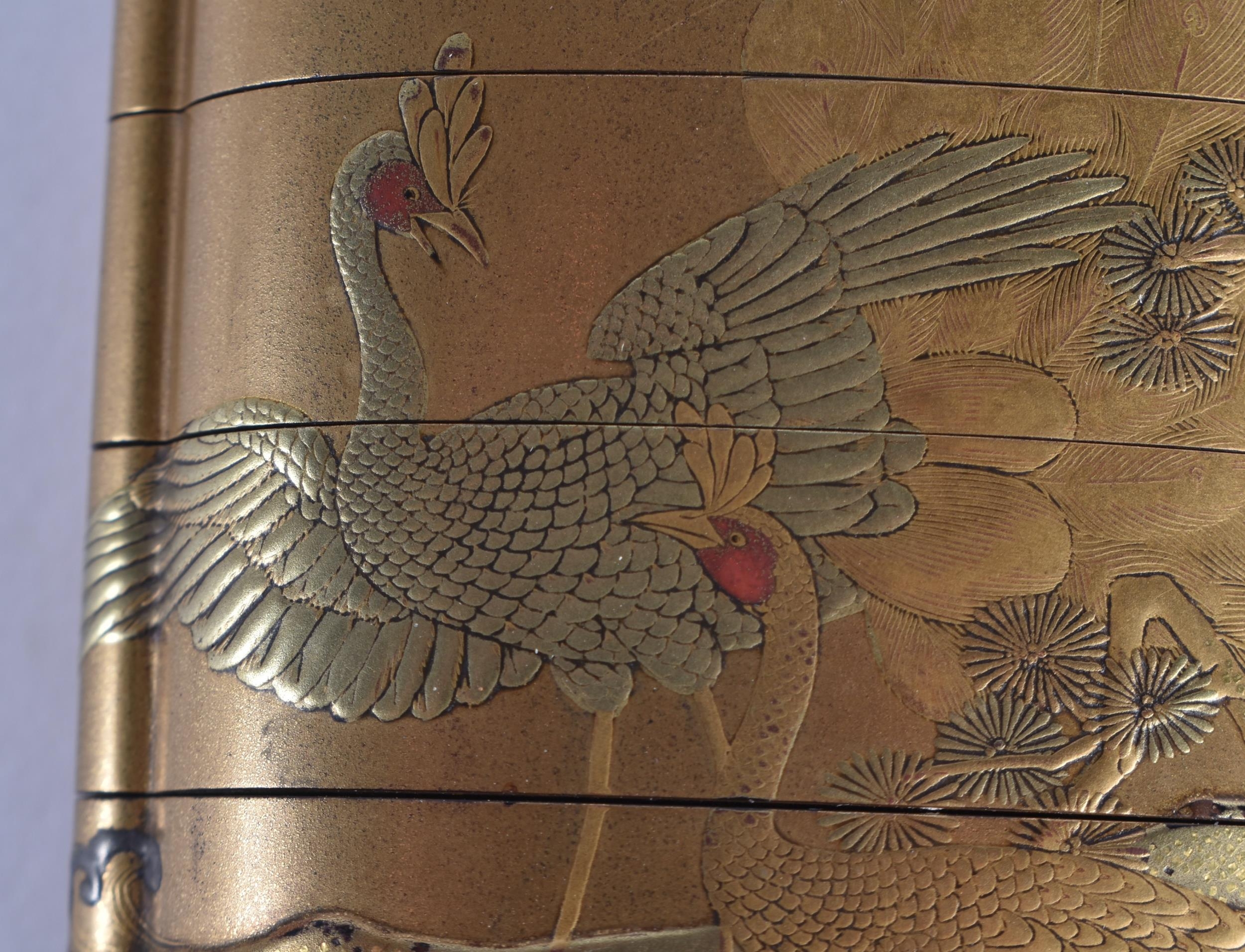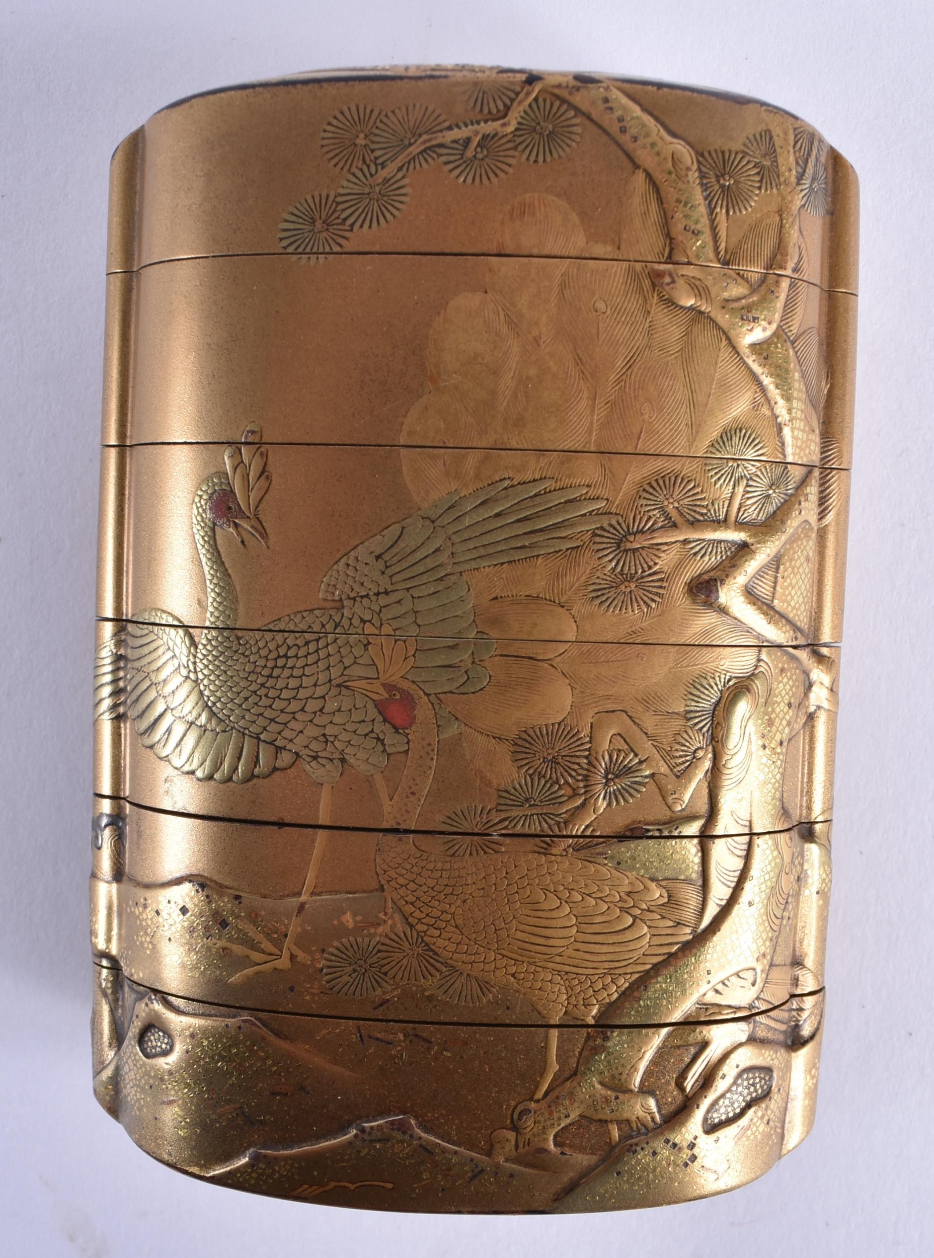 A FINE 19TH CENTURY JAPANESE MEIJI PERIOD GOLD LACQUER FIVE CASE INRO decorated with birds and native flora. 7.5 cm x 5.5 cm.